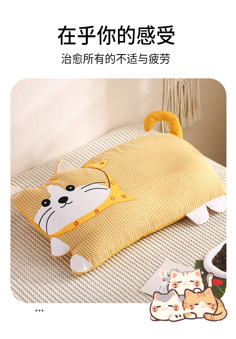 商品名称:蔻眠 泡芙猫-全棉双层纱刺绣荞麦护颈枕头儿童卡通枕芯 泡芙猫-黄