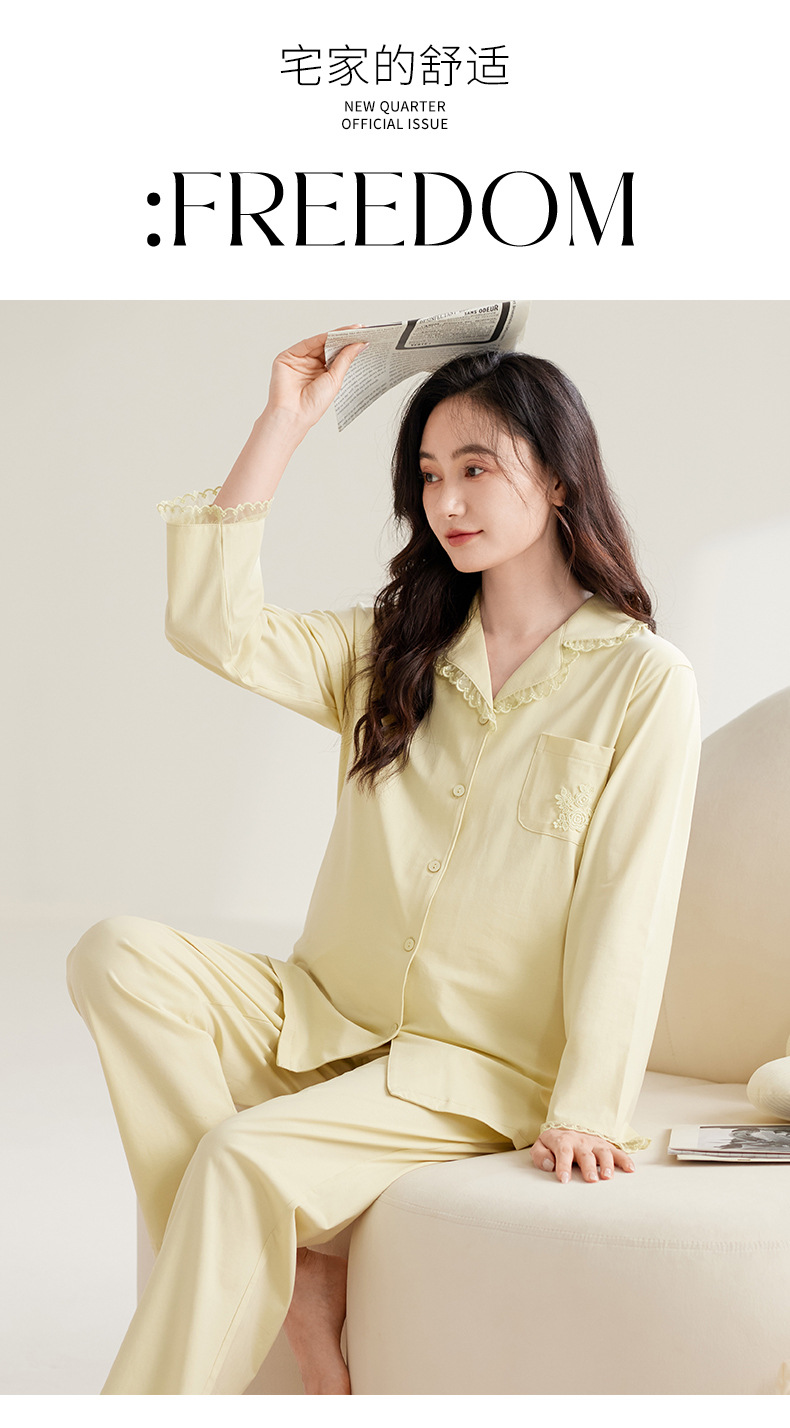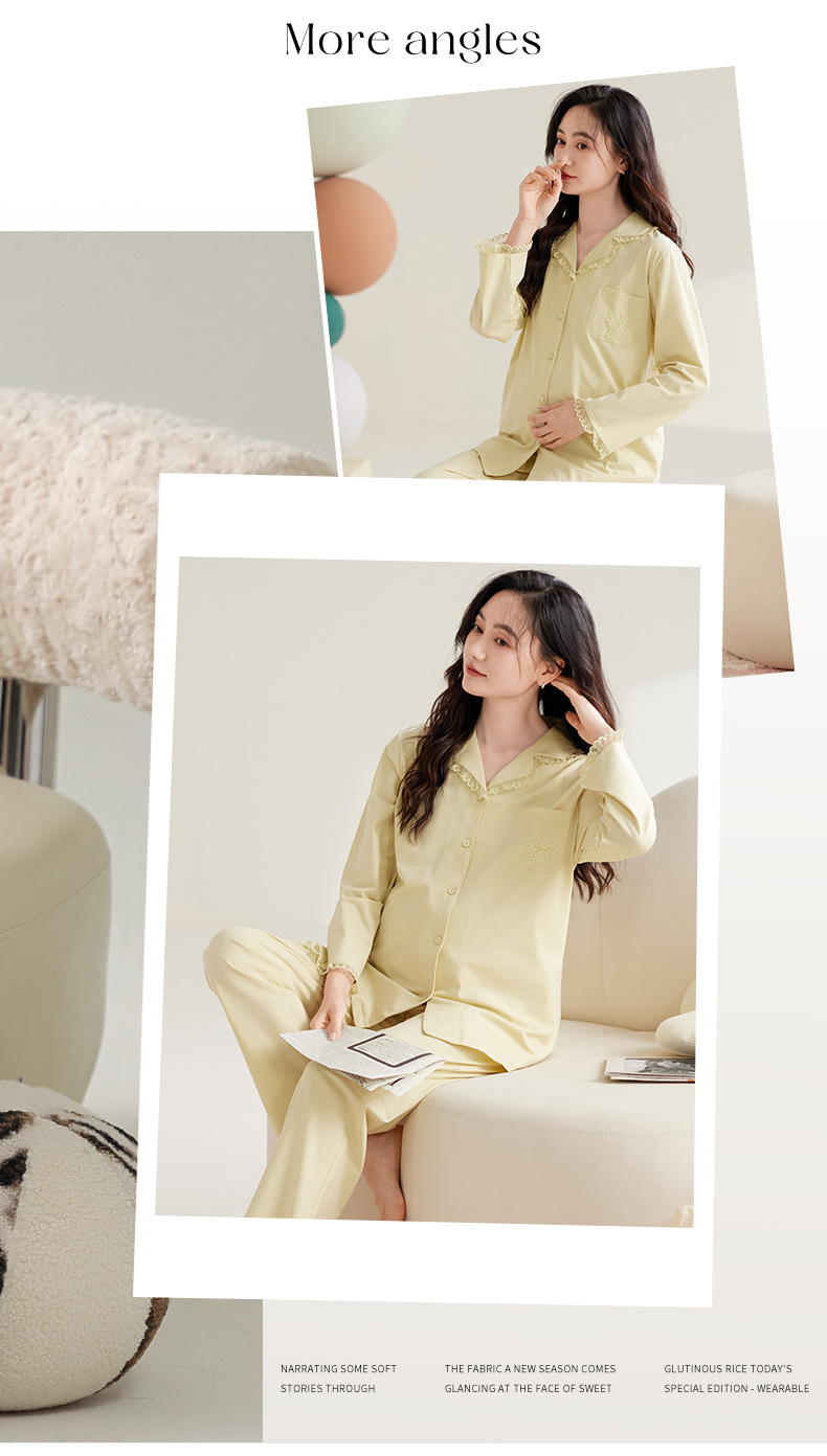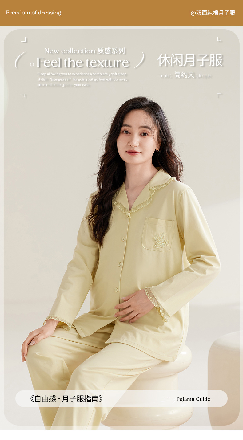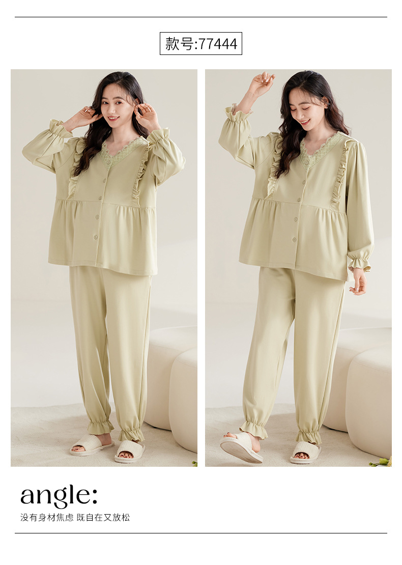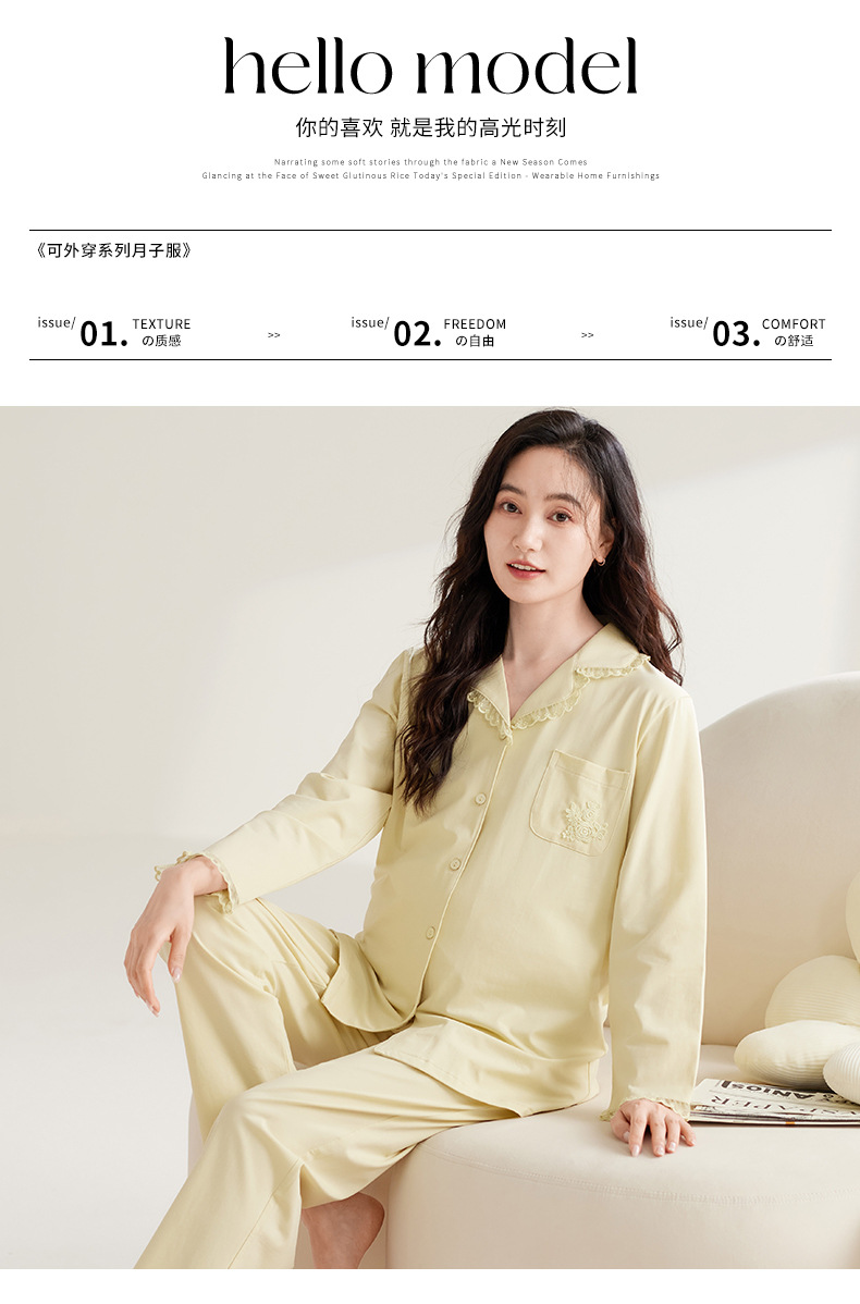 (总)洛兰沙家居馆 新款纯棉甜美哺乳家居服春夏季孕产妇长袖休闲舒适翻领月子服
