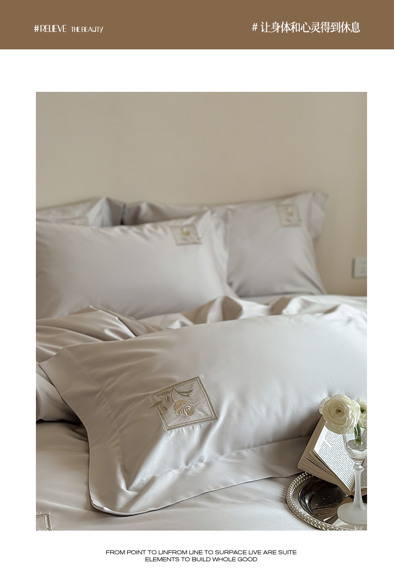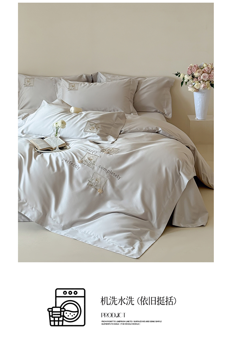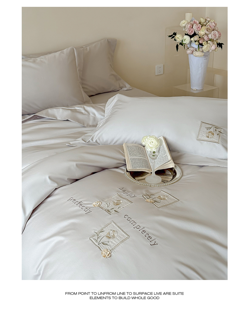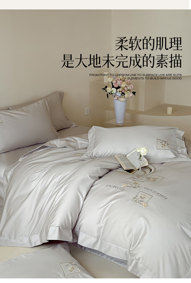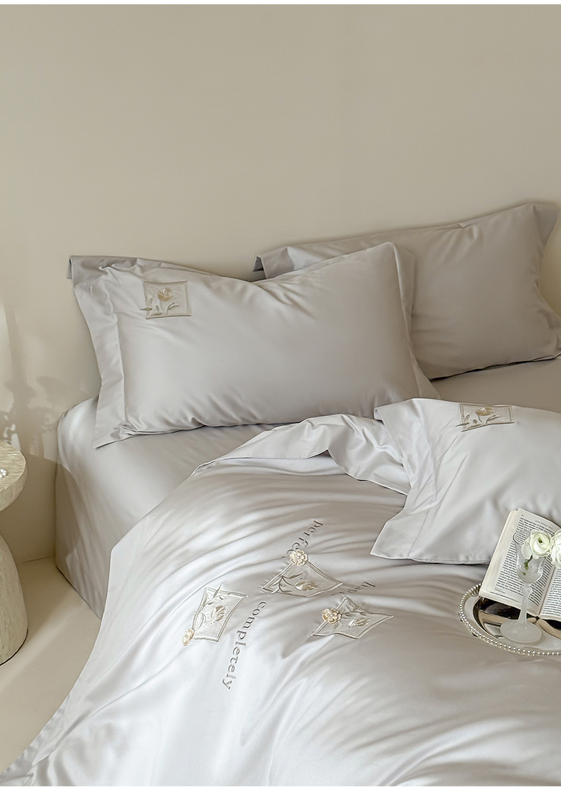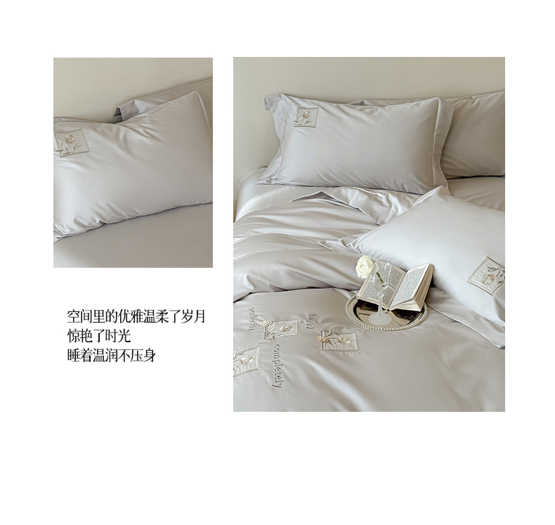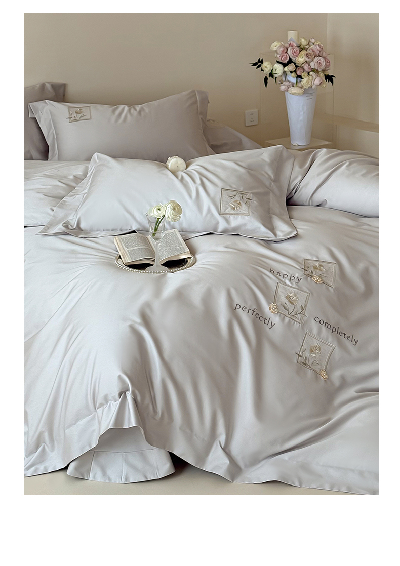 商品名称:泽西 2026新品刺绣50s双股全棉长绒棉宽边四件套-花栖 花栖-浅妃灰【控价358-378】