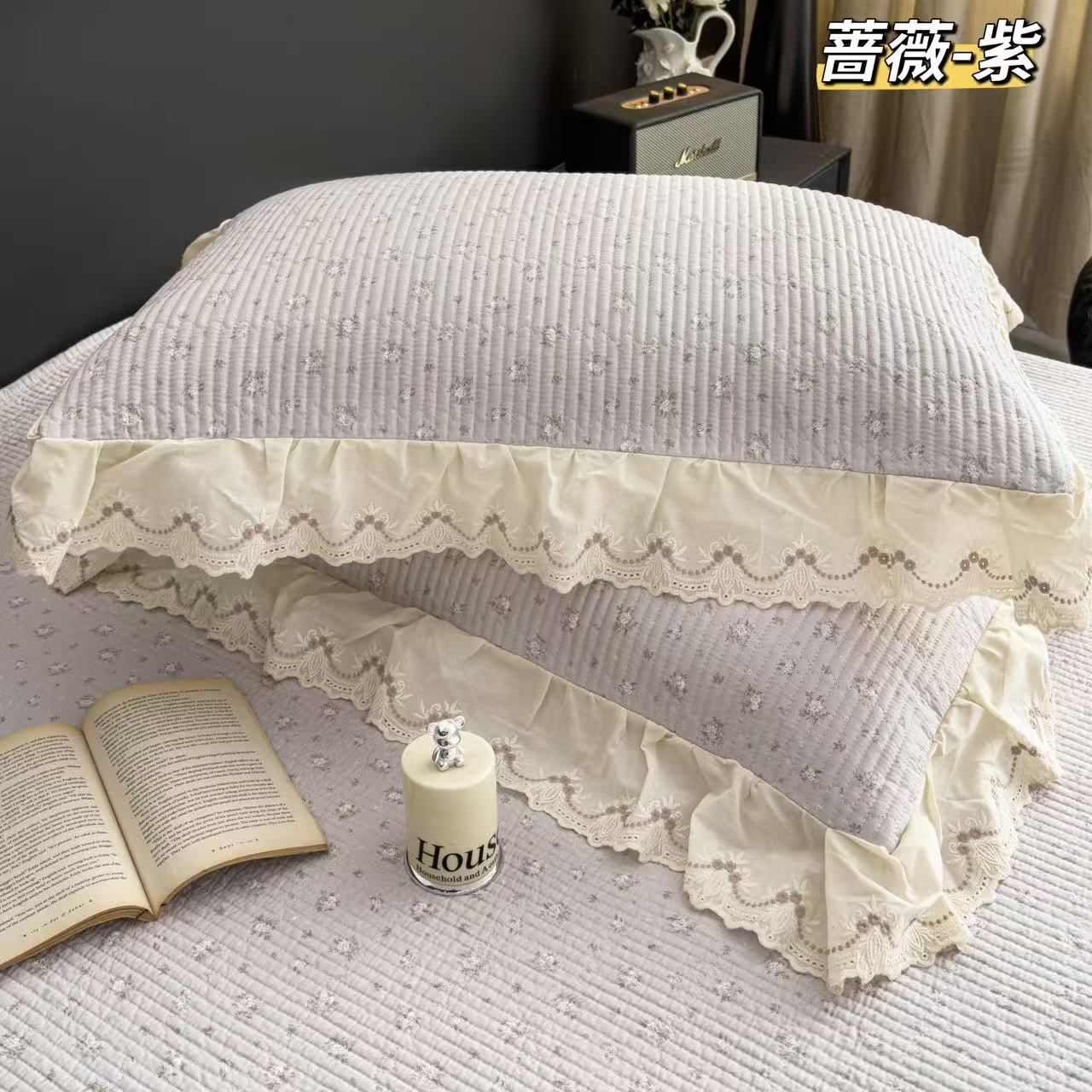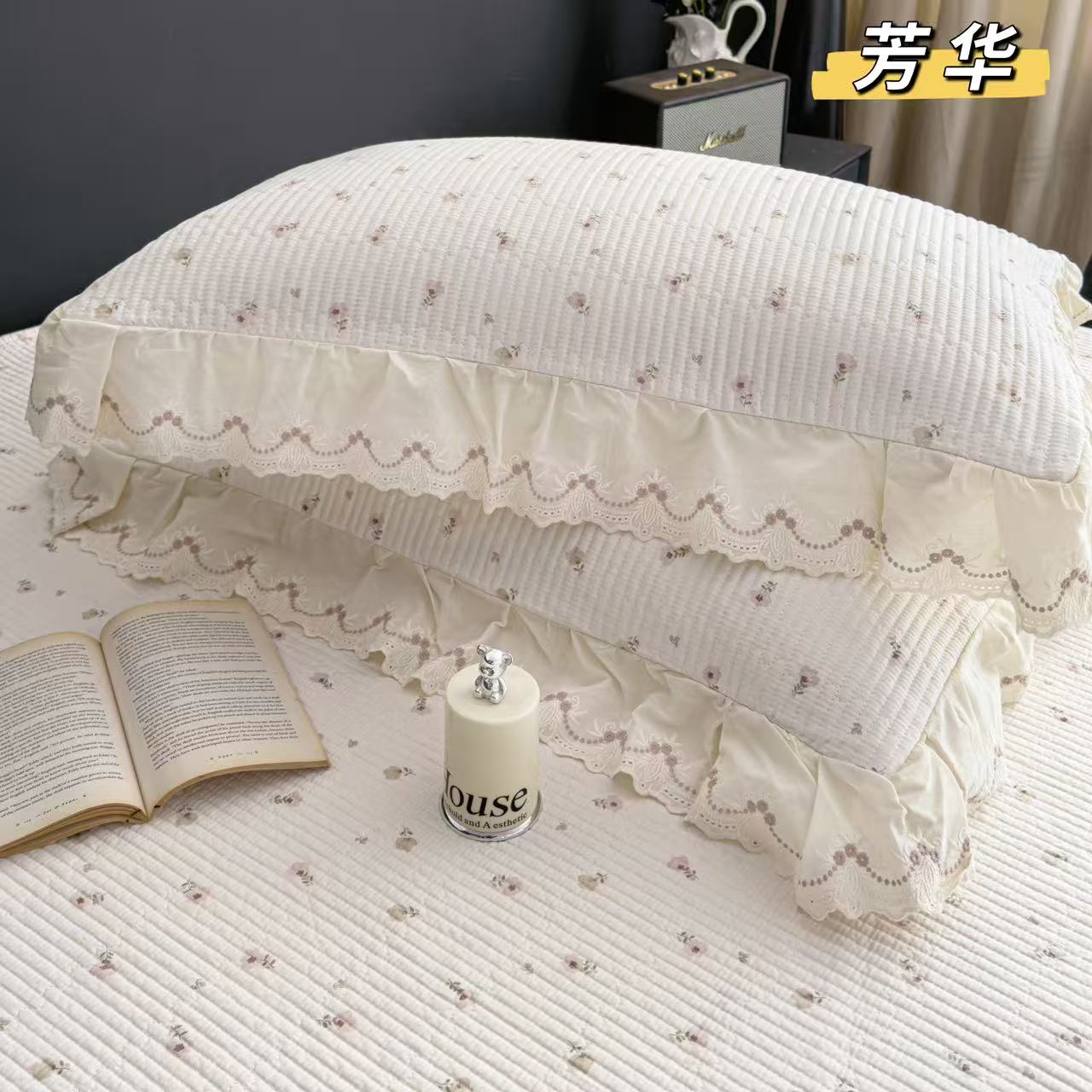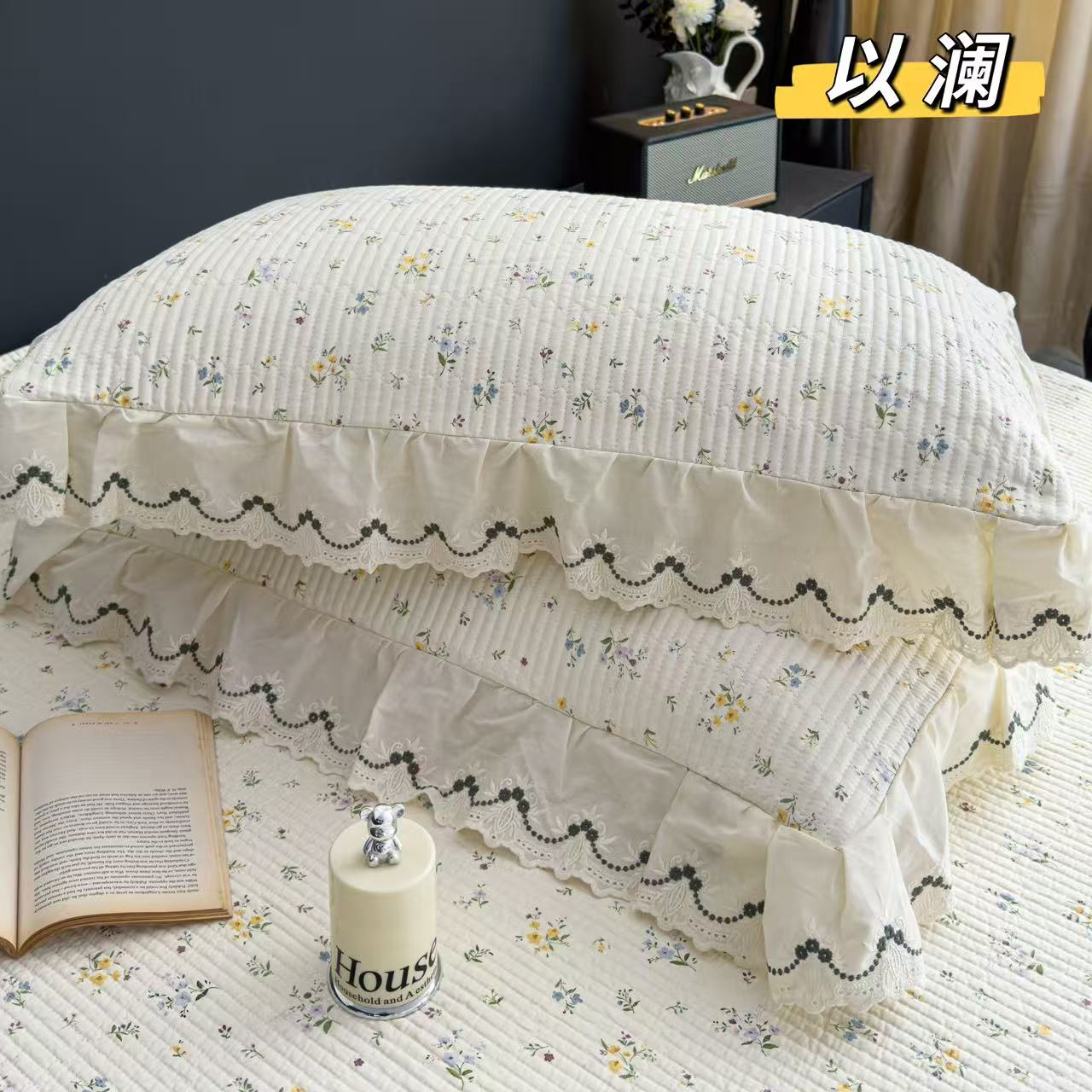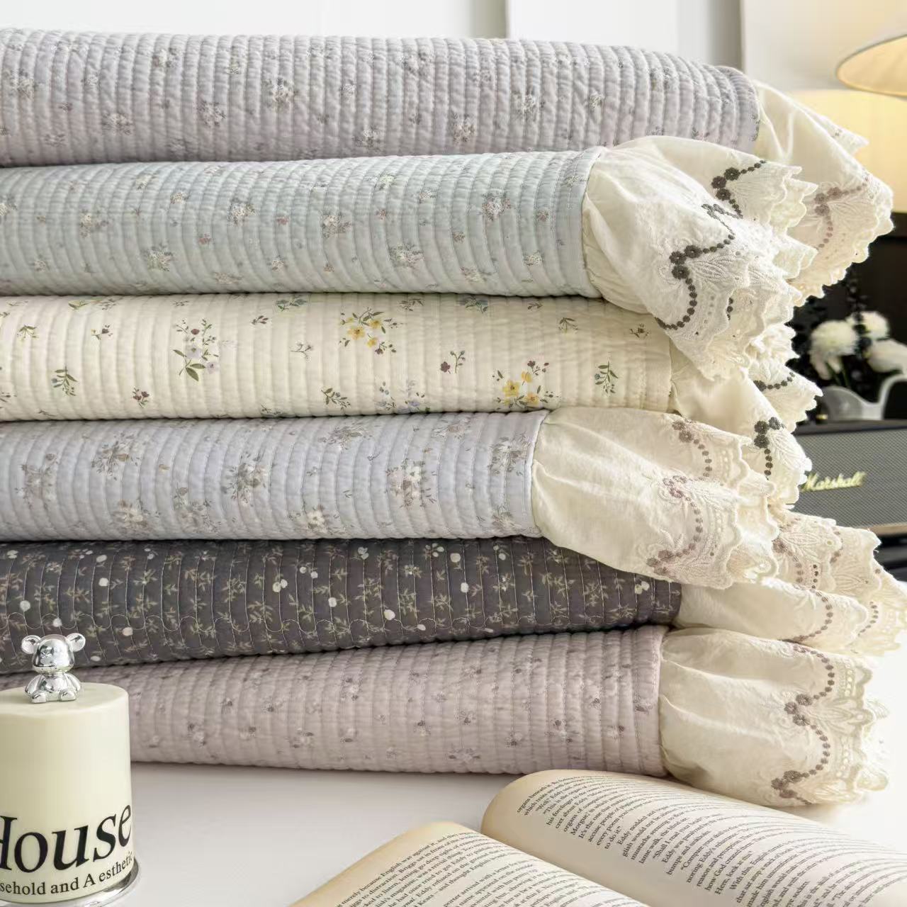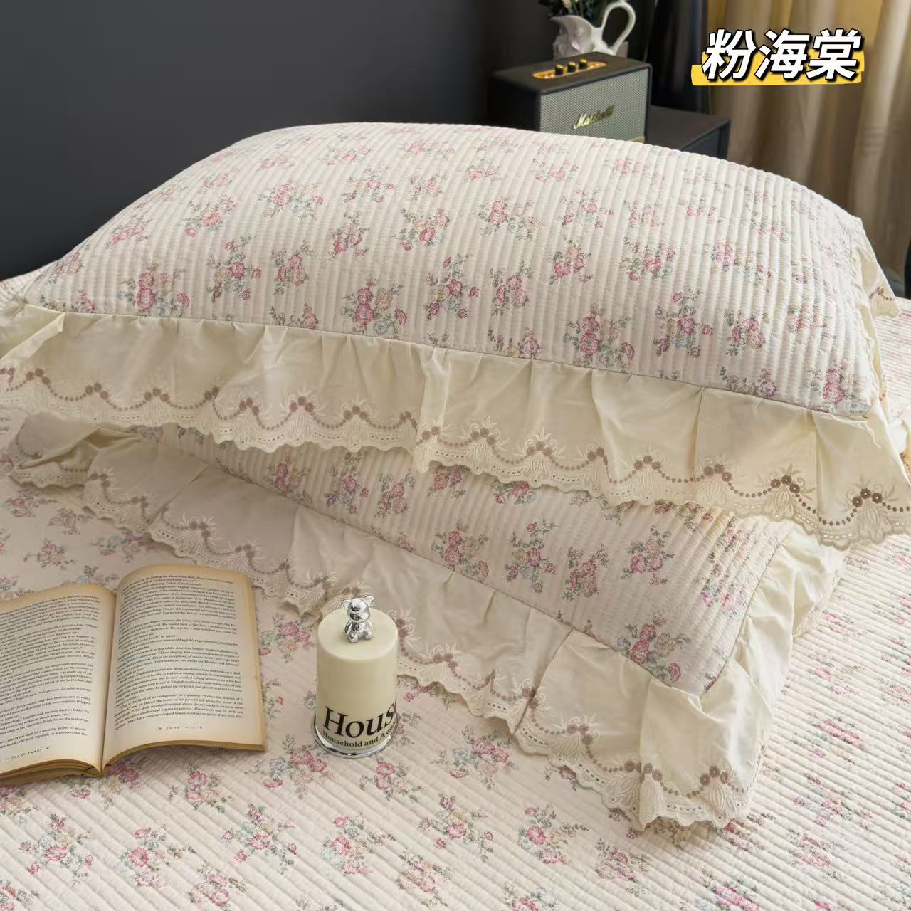 (总)韩系花边全棉床盖三件套230*255cm纯棉加厚防滑床绗缝床盖