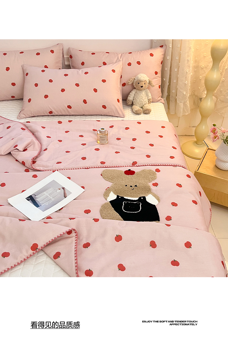 (总)一加一 2026新款全棉活性印花立体花边大豆夏被夏凉被空调被四件套,组合图仅供展示不可下单,绿芜汀,泡泡小象,浅茶春樱,浅纹蓝,浅星纱,蔷薇凝,微花耳耳,小镇漫游记,星花结,杏仁小熊仔
