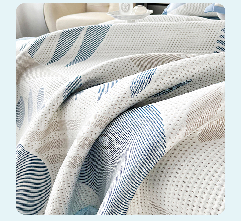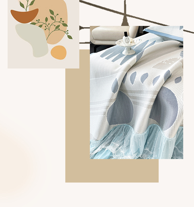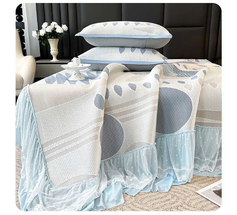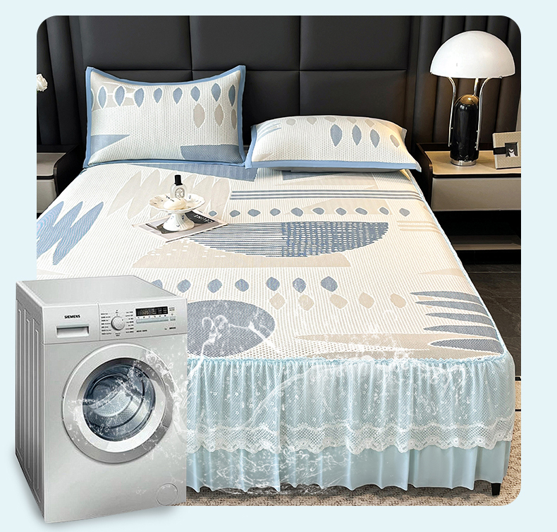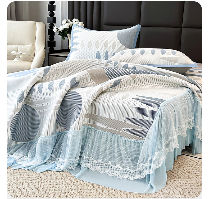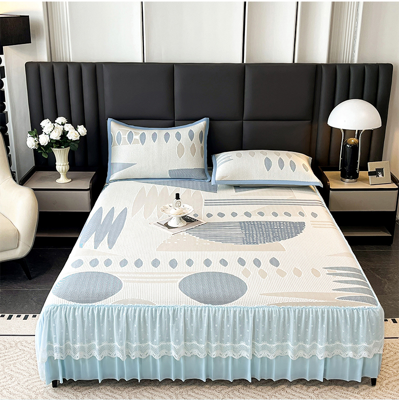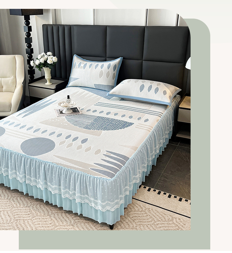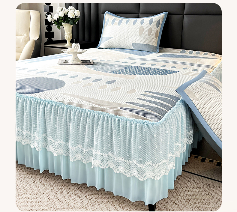 宜派家纺 2026新款几何PE凉感丝床裙款凉席三件套 几何蓝-床裙