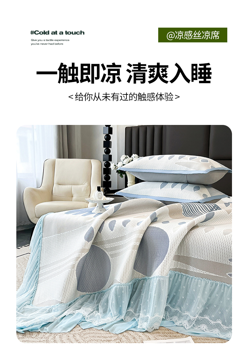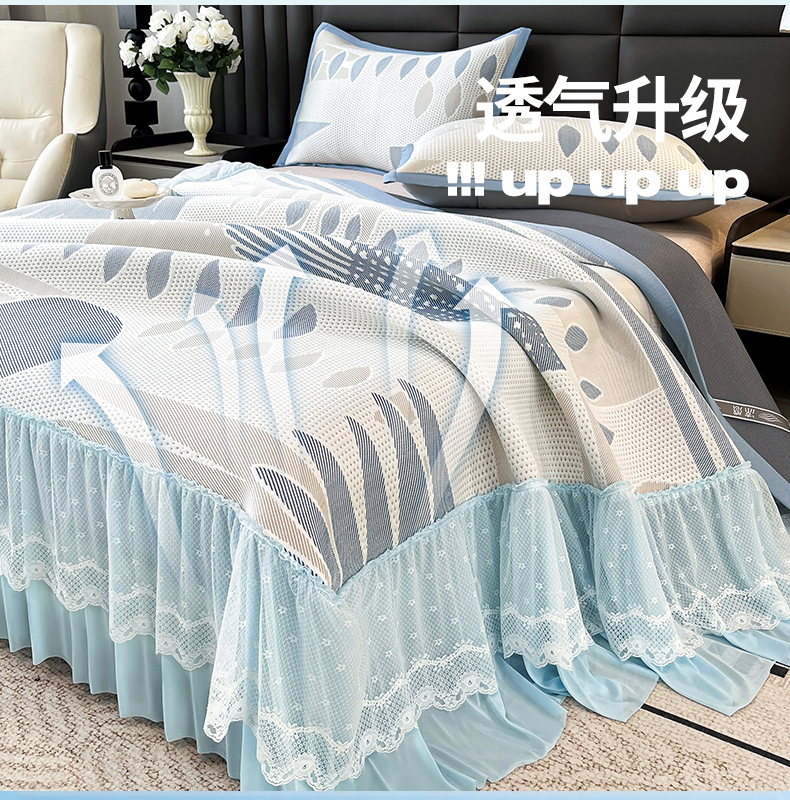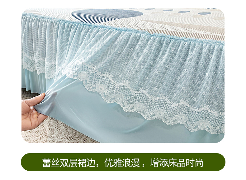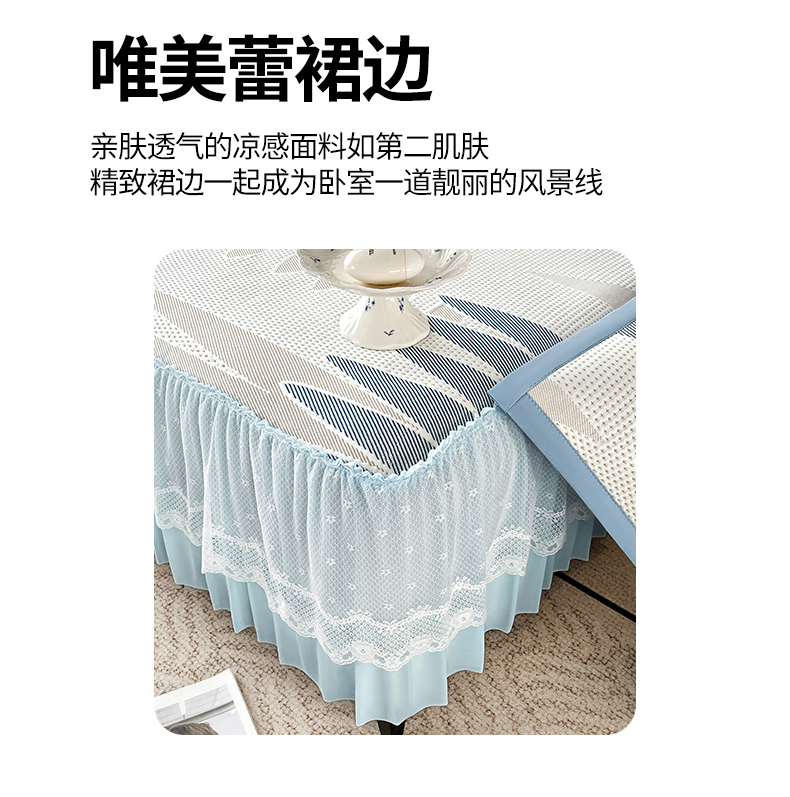 (总)宜派家纺 2026新款PE凉感丝床裙款凉席三件套,织序床裙-粉,织序床裙-灰,织序床裙-蓝,织序床裙-绿
