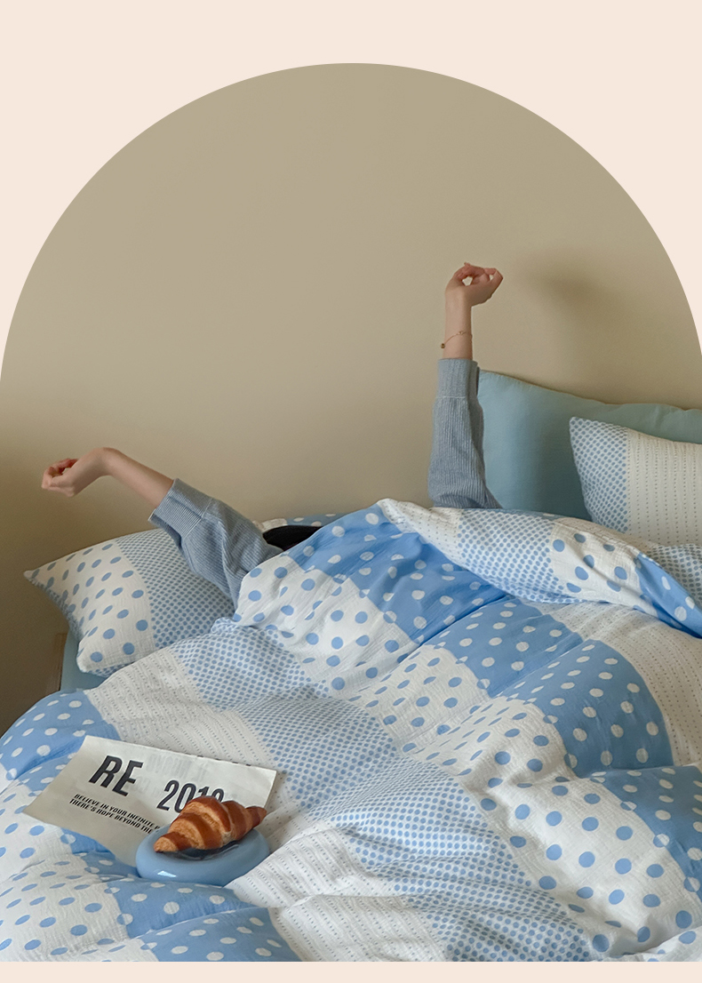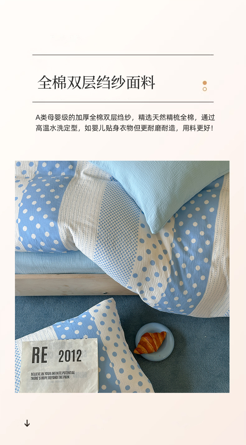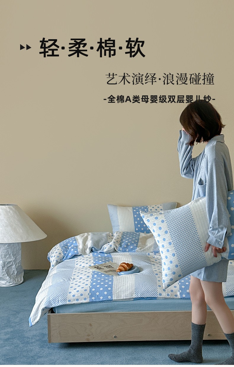 当前位置: 91家纺网 > 商品网购 > 床品套件 > 四件套 > 双层纱四件套 > 山舍家居 2026新款全棉A类双层纱四件套元气波点【会员➖20元 含包装价格】 元气波波蓝
