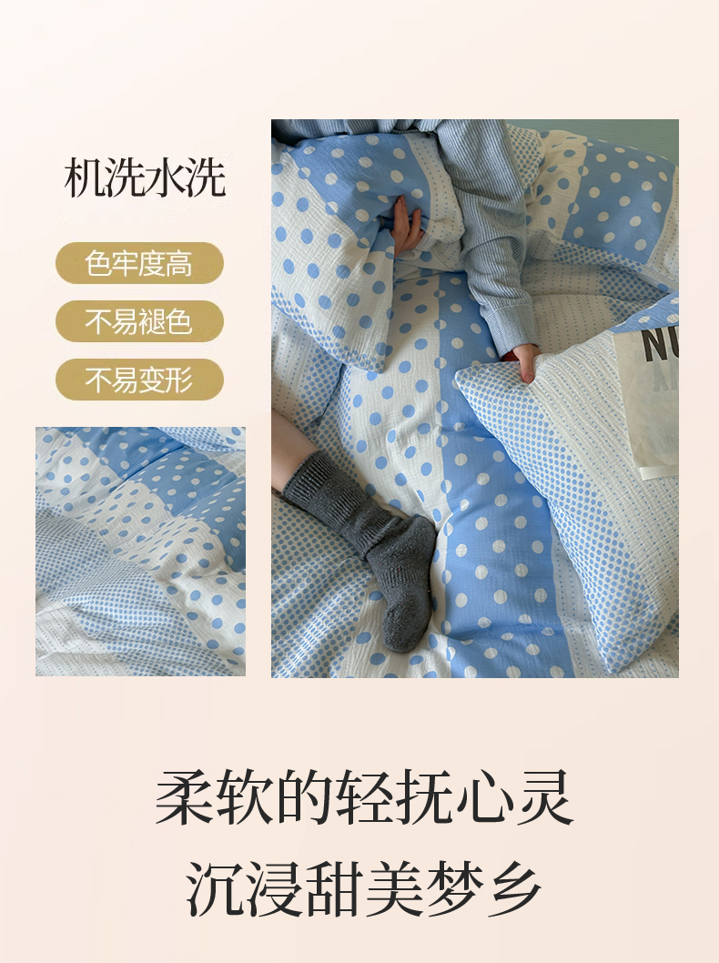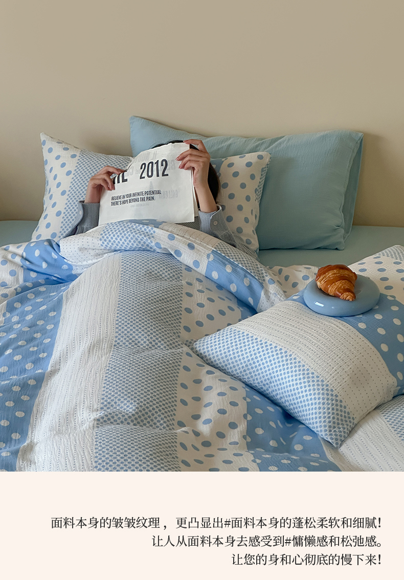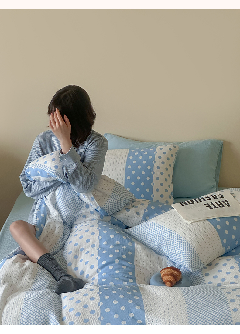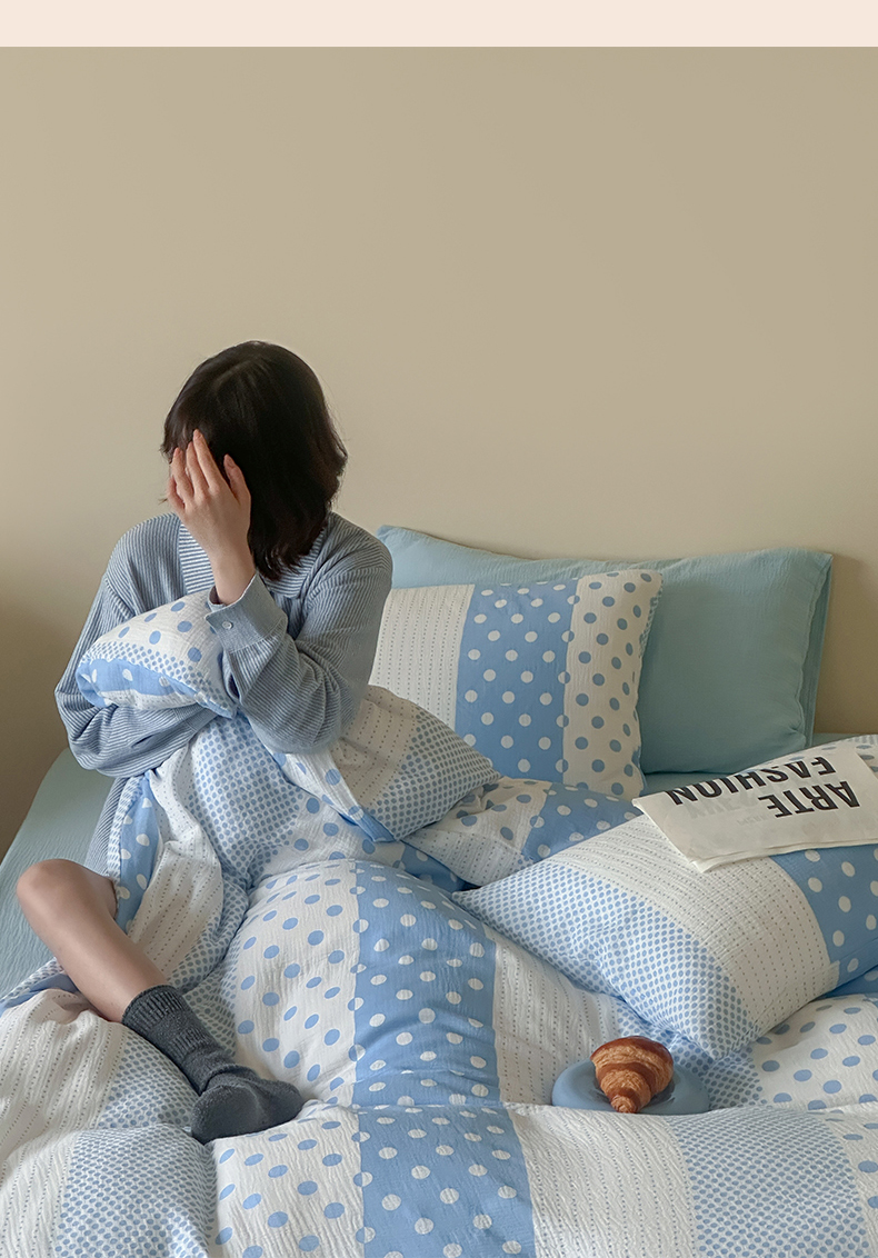 当前位置: 91家纺网 > 商品网购 > 床品套件 > 四件套 > 双层纱四件套 > 山舍家居 2026新款全棉A类双层纱四件套元气波点【会员➖20元 含包装价格】 元气波波蓝
