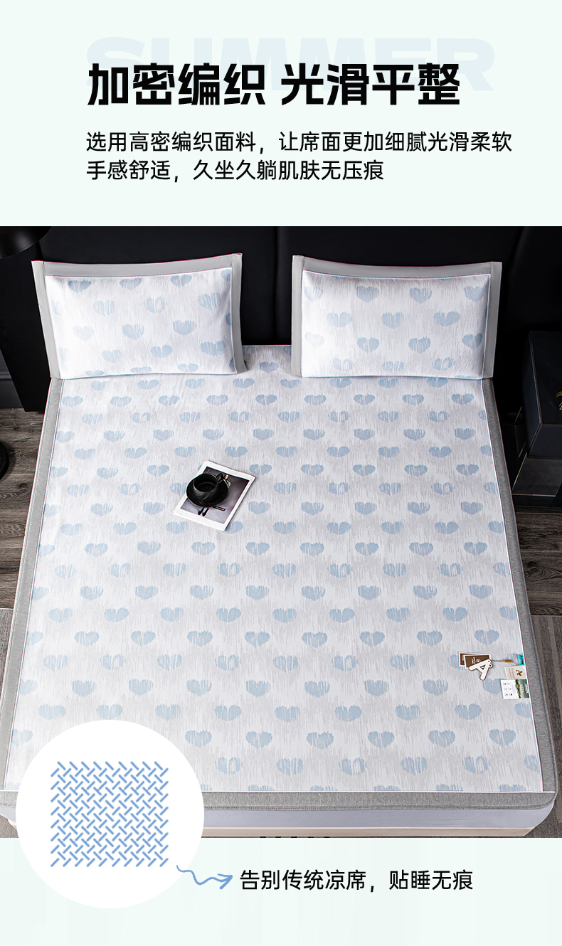 (总)2023新款超精密冰丝席-小斜纹系列-床笠款藤席凉席竹席,粉色,蓝色,绿色,银灰