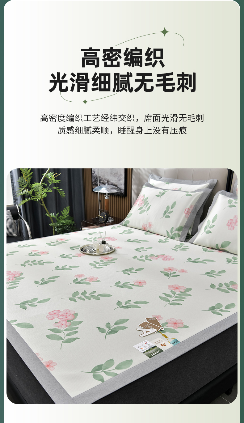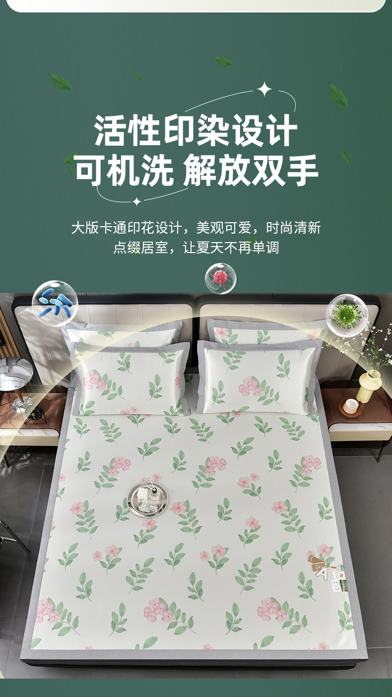 (总)小牛席业 2026新款加厚款碳光凉感印花冰丝席凉席席子,贝贝熊,彩色煤球,花间集,花纹小熊,可爱小象,烂漫山茶花,琉璃叶语-粉色,琉璃叶语-灰色,琉璃叶语-蓝色,琉璃叶语-绿色,轻奢赫本,清凉夏日,清新叶语-灰,清新叶语-绿,清馨玫瑰,仙仙草,小号南瓜,熊猫胖哒,椰树大象