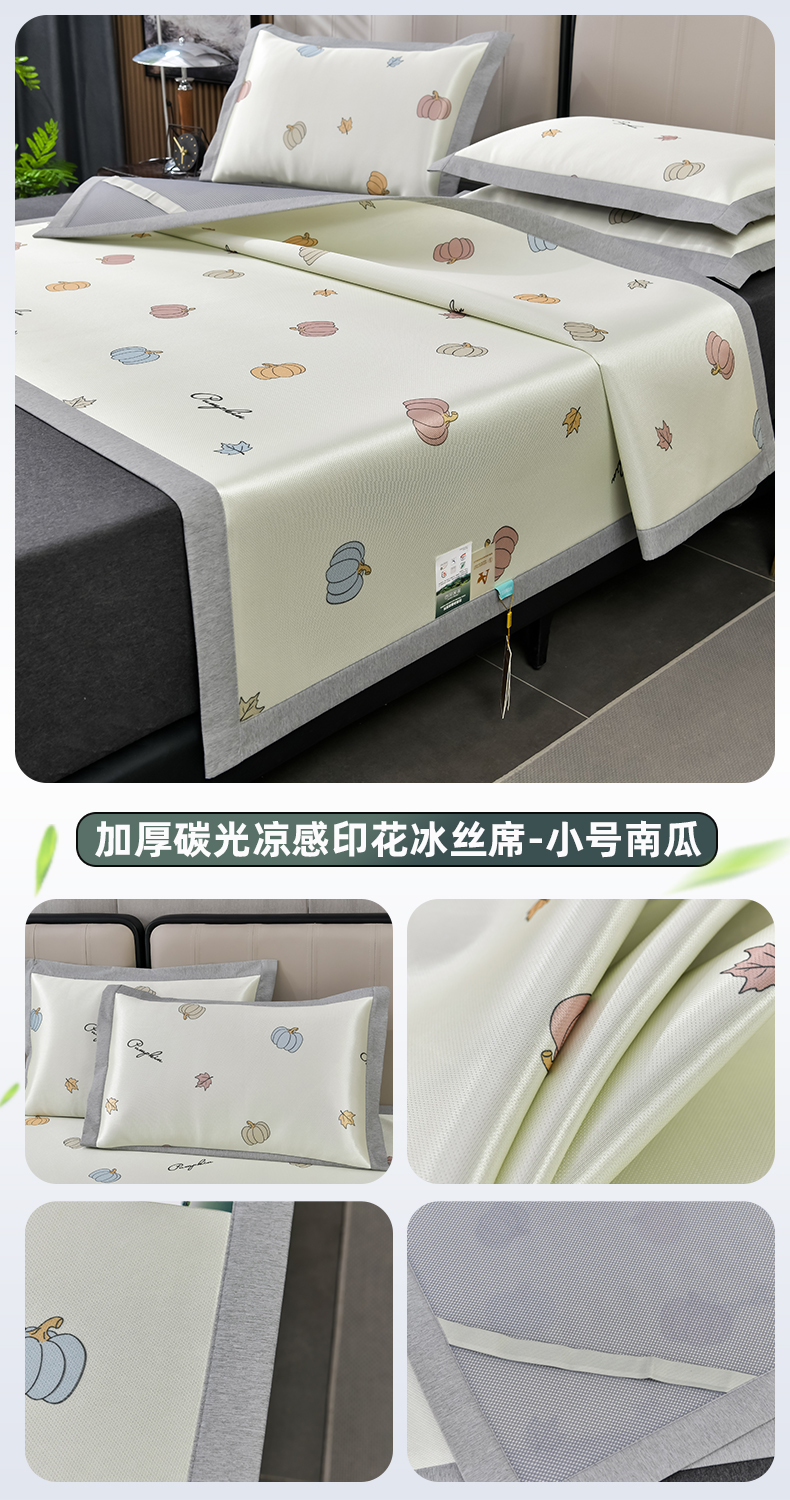 商品名称:小牛席业 2026新款加厚款碳光凉感印花冰丝席凉席席子 小号南瓜
