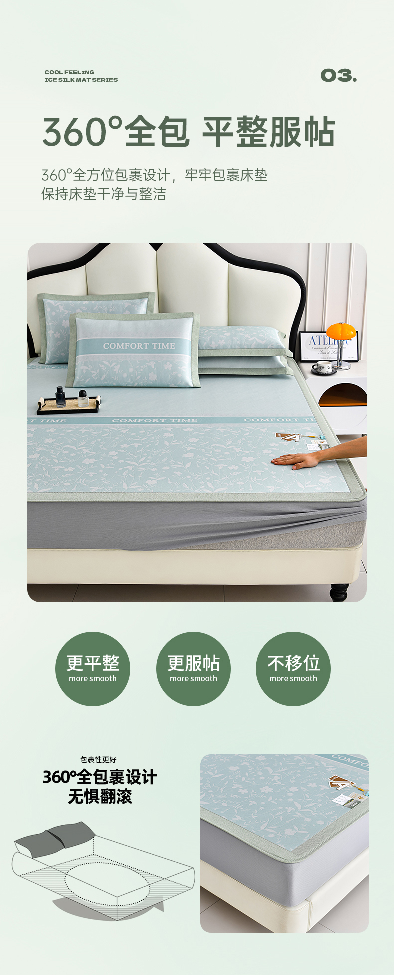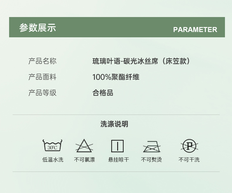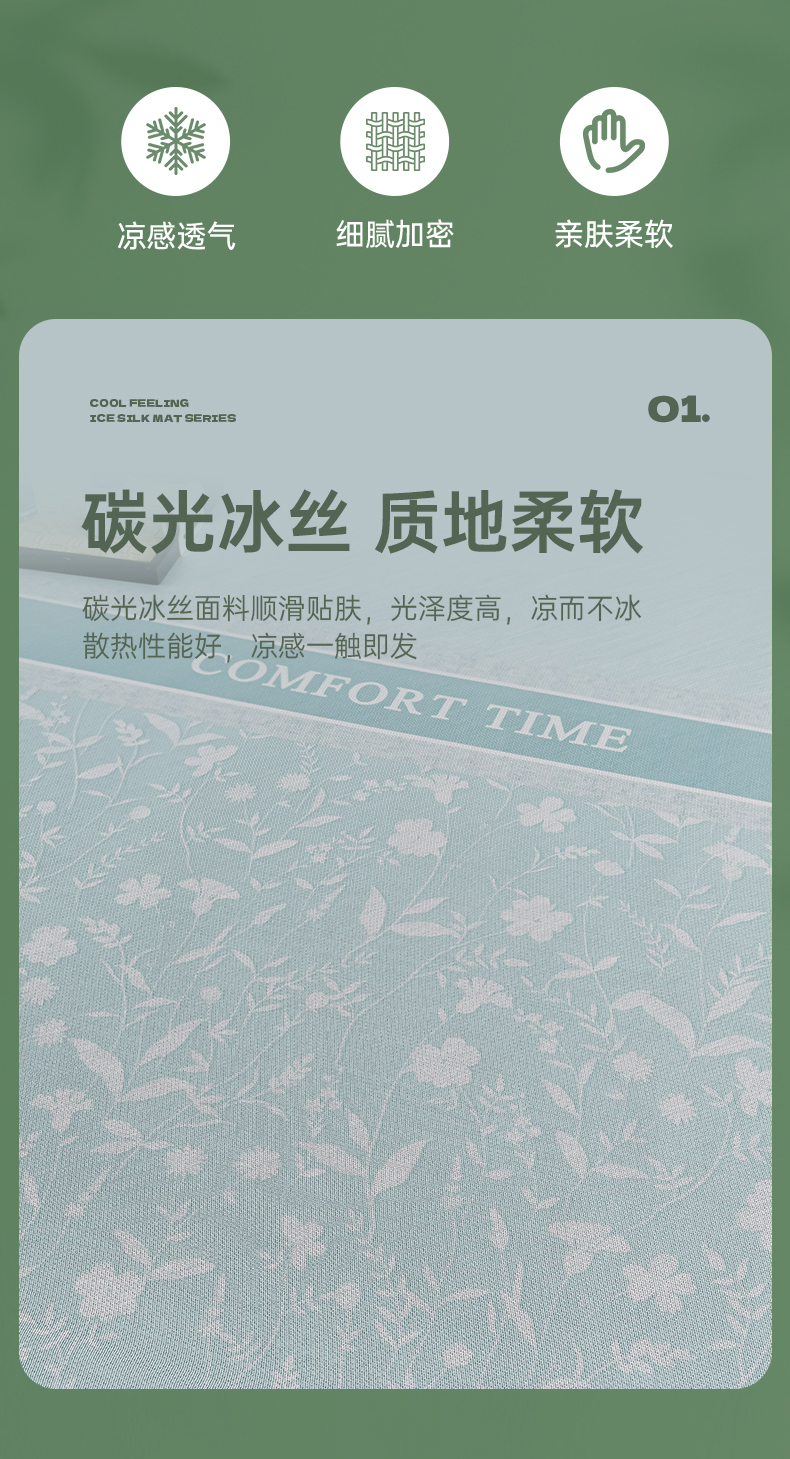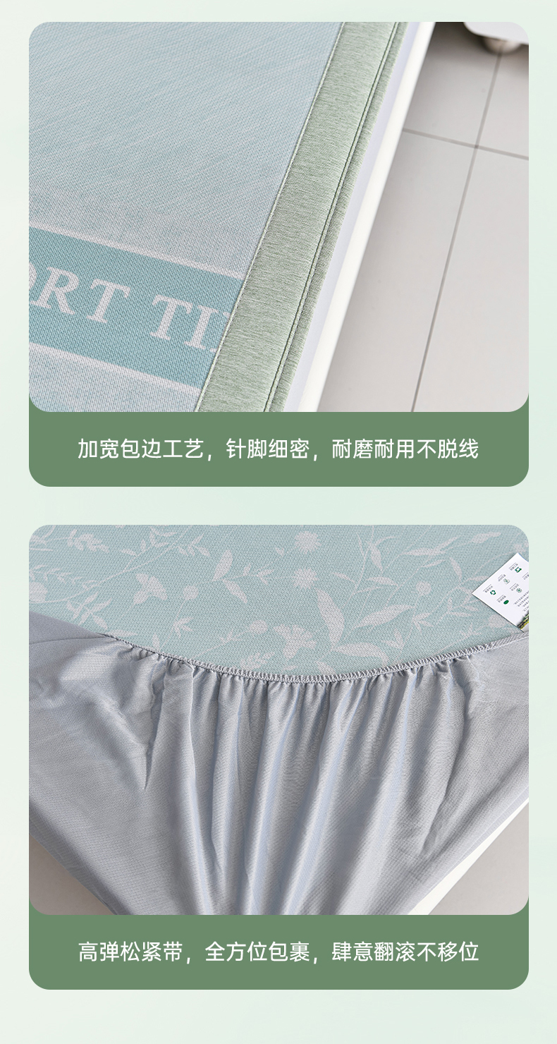 商品名称:小牛席业 2026新款加厚款碳光凉感印花冰丝席凉席席子(床笠款) 琉璃叶语-绿色