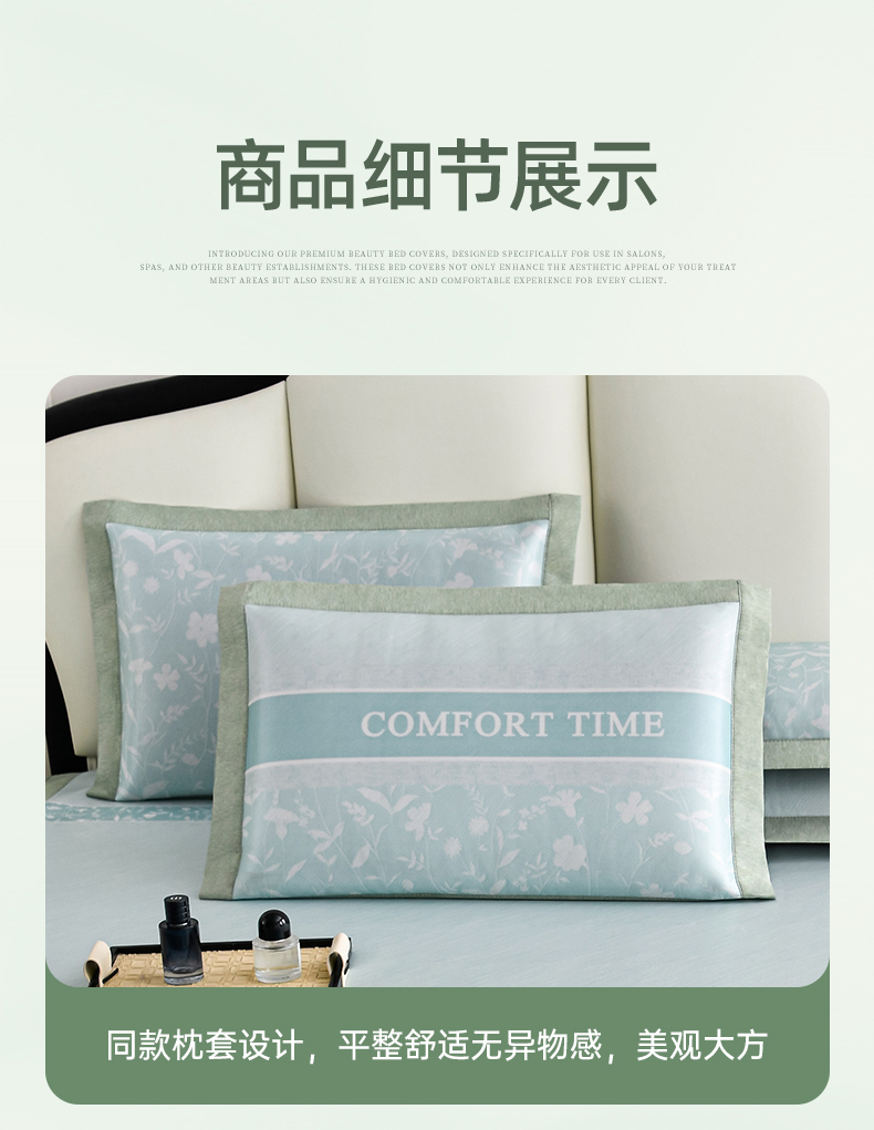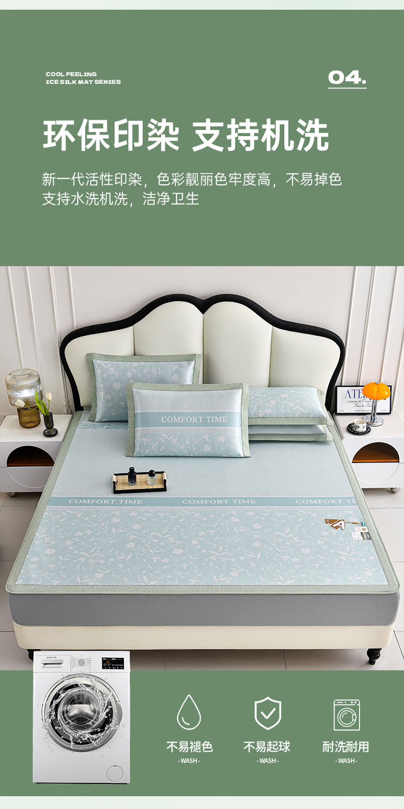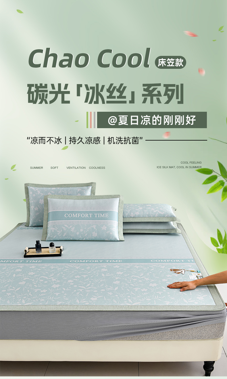 商品名称:小牛席业 2026新款加厚款碳光凉感印花冰丝席凉席席子(床笠款) 琉璃叶语-绿色
