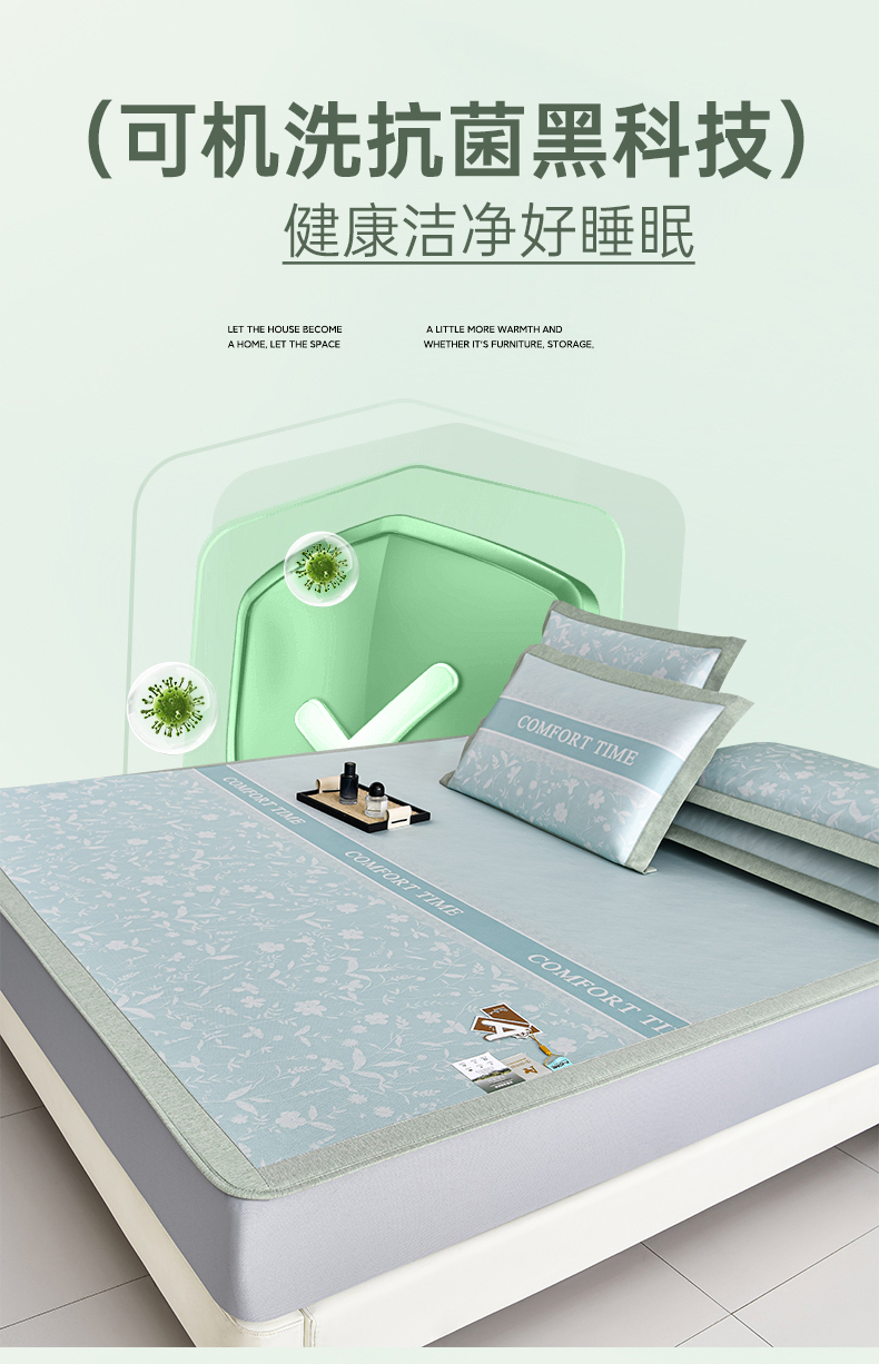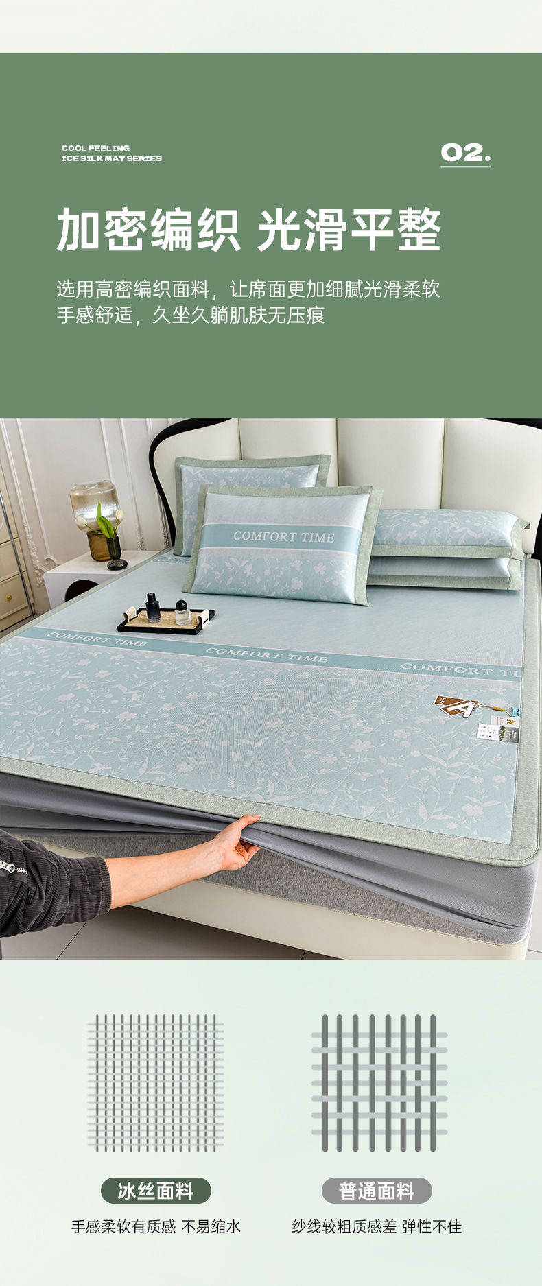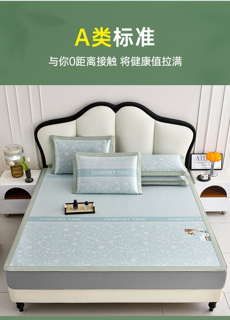 (总)2023新款超精密冰丝席-小斜纹系列-床笠款藤席凉席竹席,粉色,蓝色,绿色,银灰