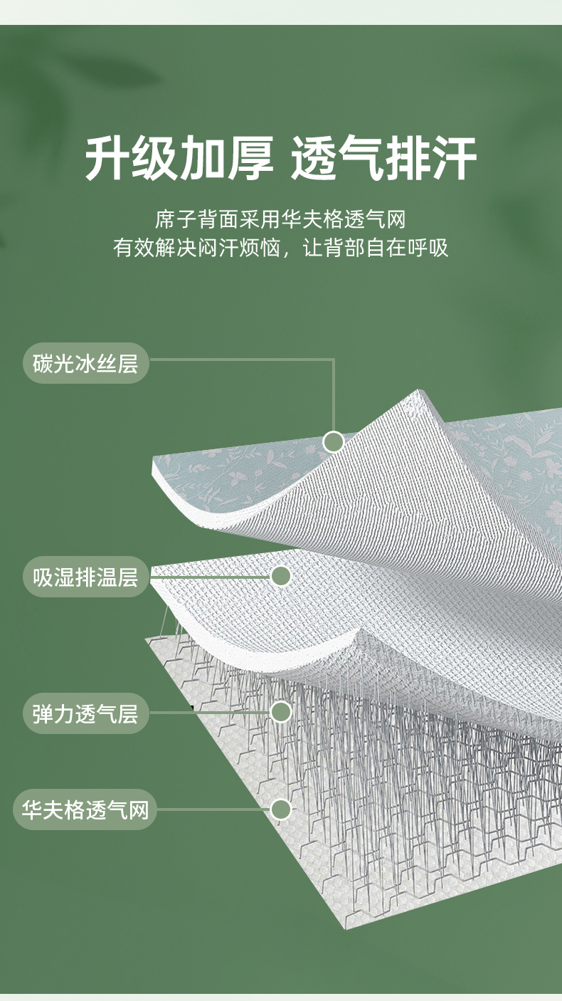 2023新款夏日冰点-冰藤双面席凉席藤席竹席冰丝席乳胶席,咖色,蓝色,绿色,香槟