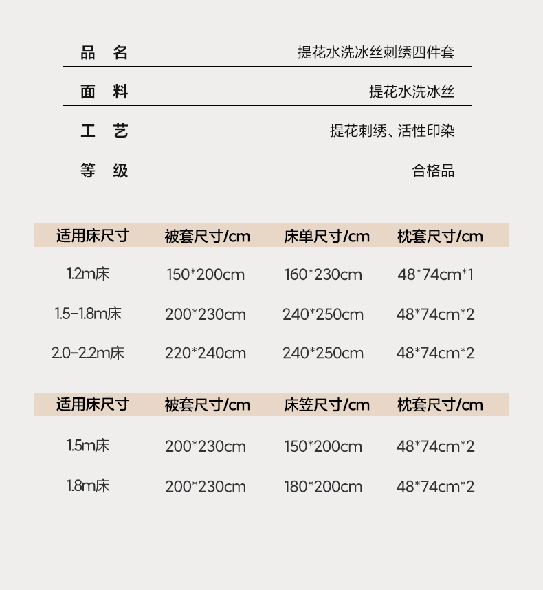 【床笠款】1.8四件套-被套200x230 | ¥105.00 |