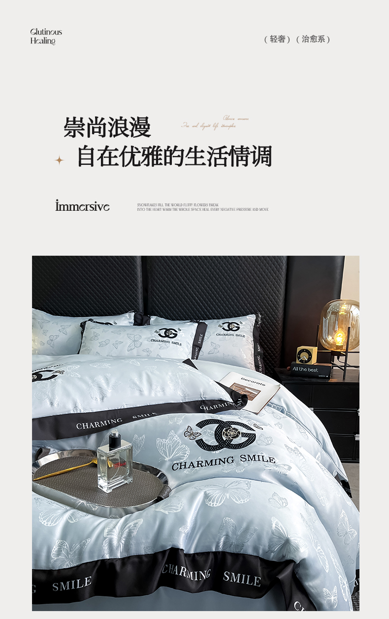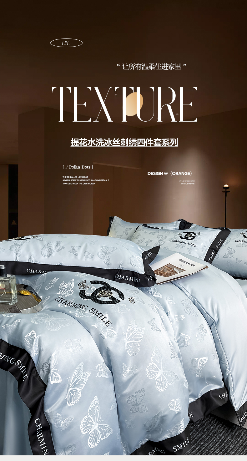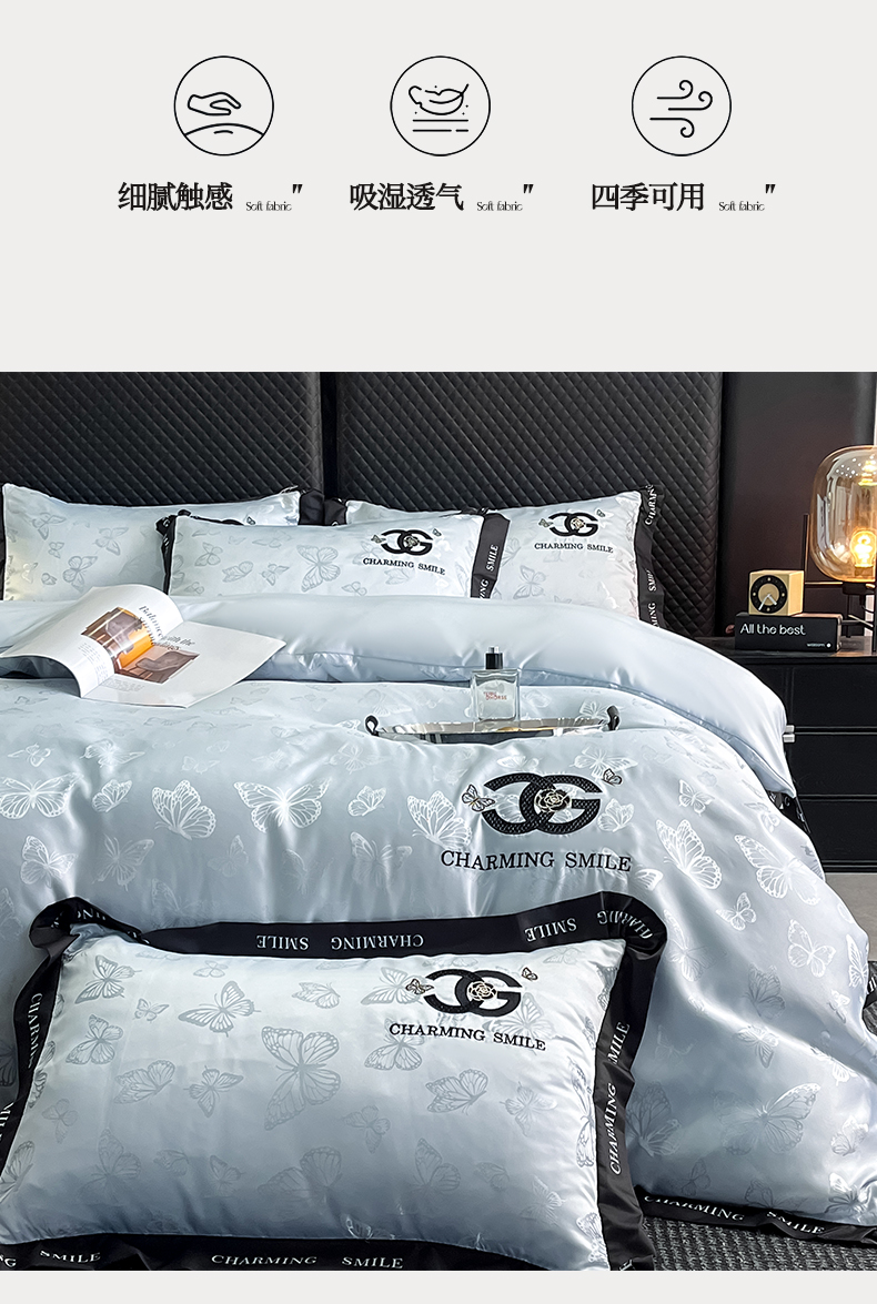 当前位置: 91家纺网 > 商品网购 > 床品套件 > 四件套 > 其它四件套 > 澳梵家居 2026新款冰丝提花水洗真丝四件套-蝶梦系列 蝶梦-银灰