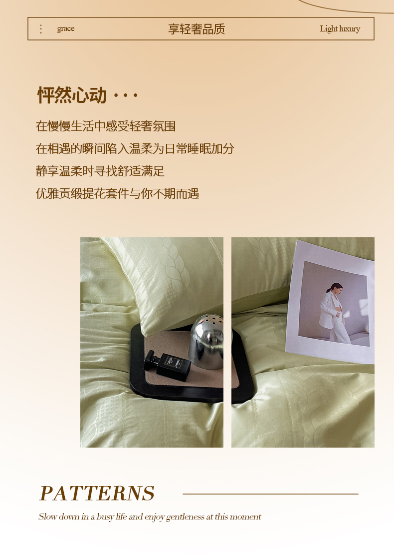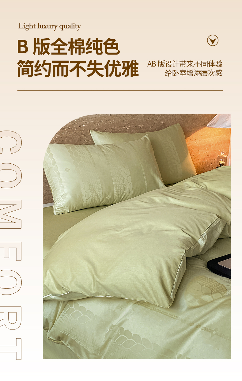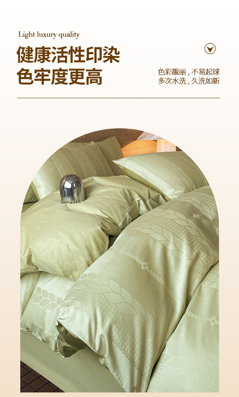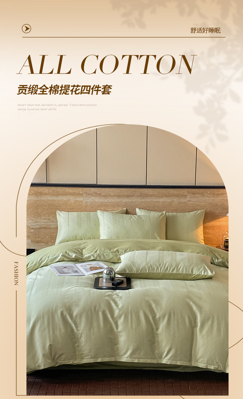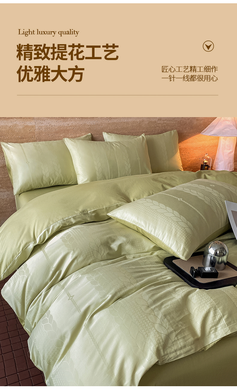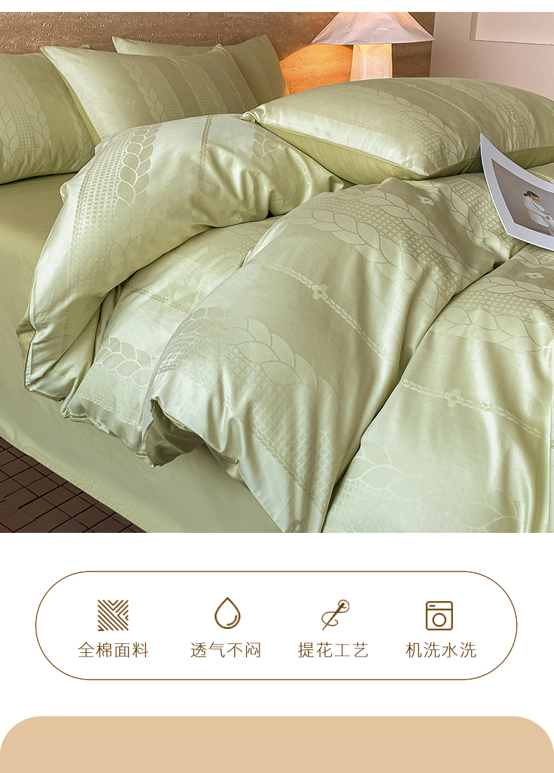 当前位置: 91家纺网 > 商品网购 > 床品套件 > 四件套 > 全棉普通四件套 > 琪格格纺织 2026新款纯棉全棉60s贡缎轻奢大提花四件套 纯棉贡缎 麦穗绿