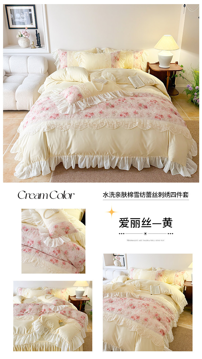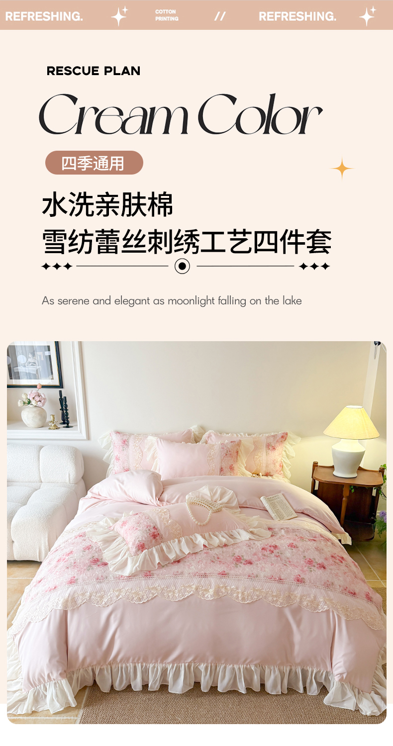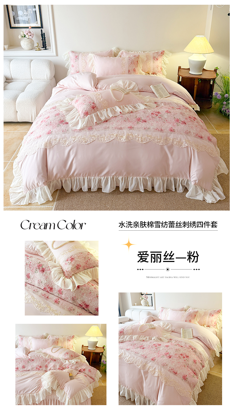 当前位置: 91家纺网 > 商品网购 > 床品套件 > 四件套 > 水洗棉四件套 > 富盛家纺 2026新款水洗亲肤棉蕾丝刺绣四件套-爱丽丝 爱丽丝—绿