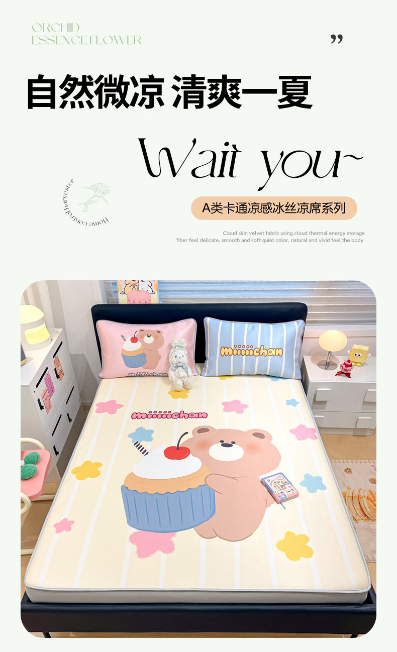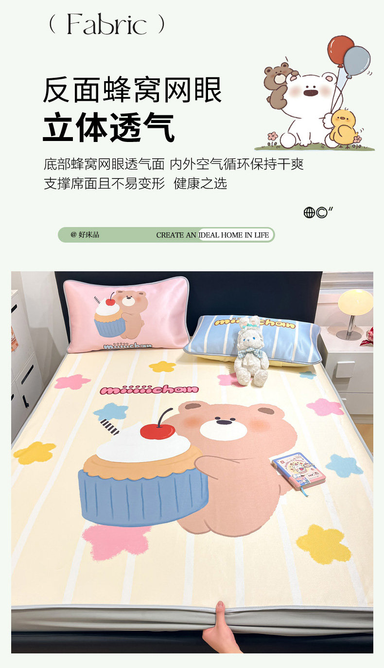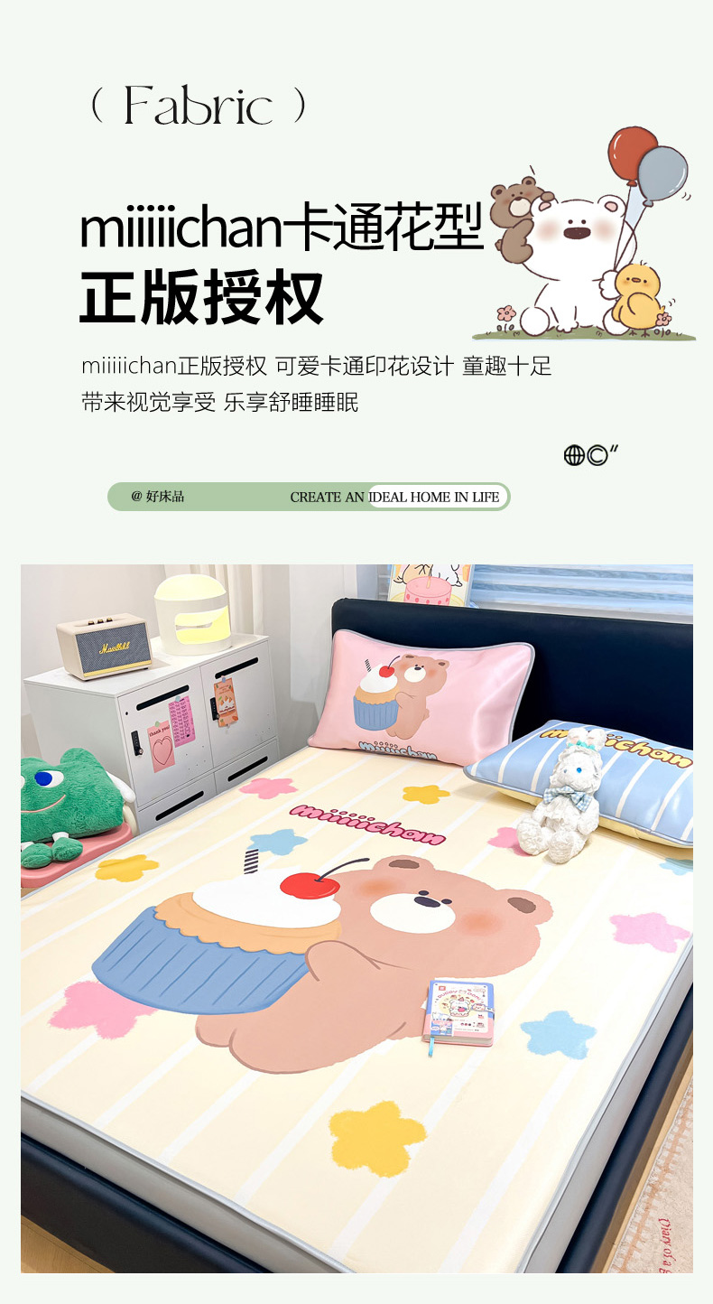 当前位置: 91家纺网 > 商品网购 > 床上用品 > 凉席 > 凉席套件 > 暮思家居 2026新款正版授权miiiiichan大版数码印花可机洗1200D冰丝席子凉席 蛋糕小熊