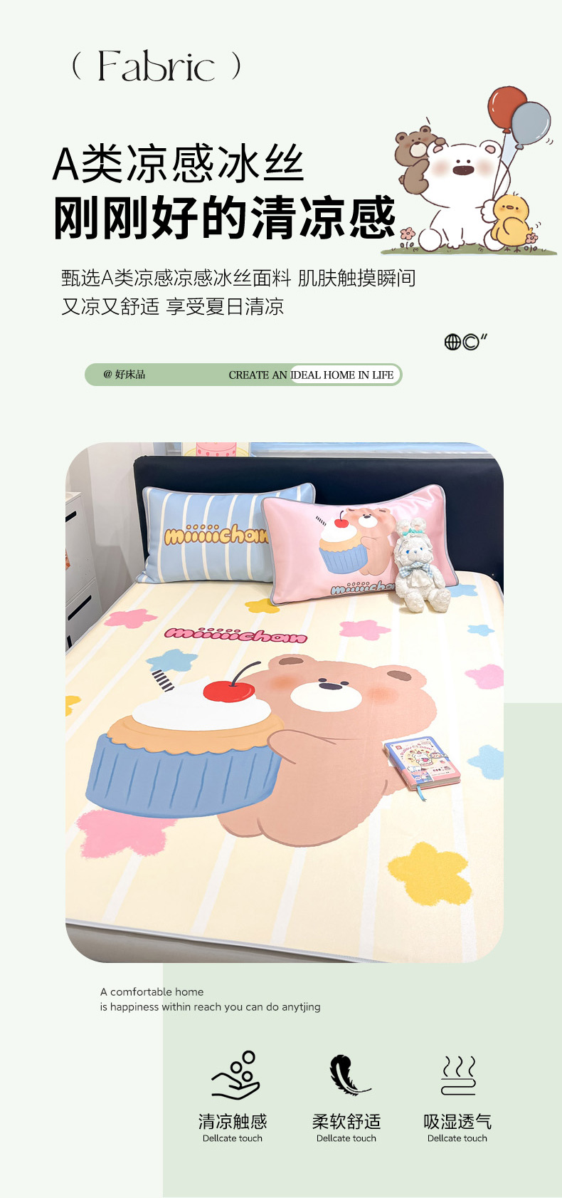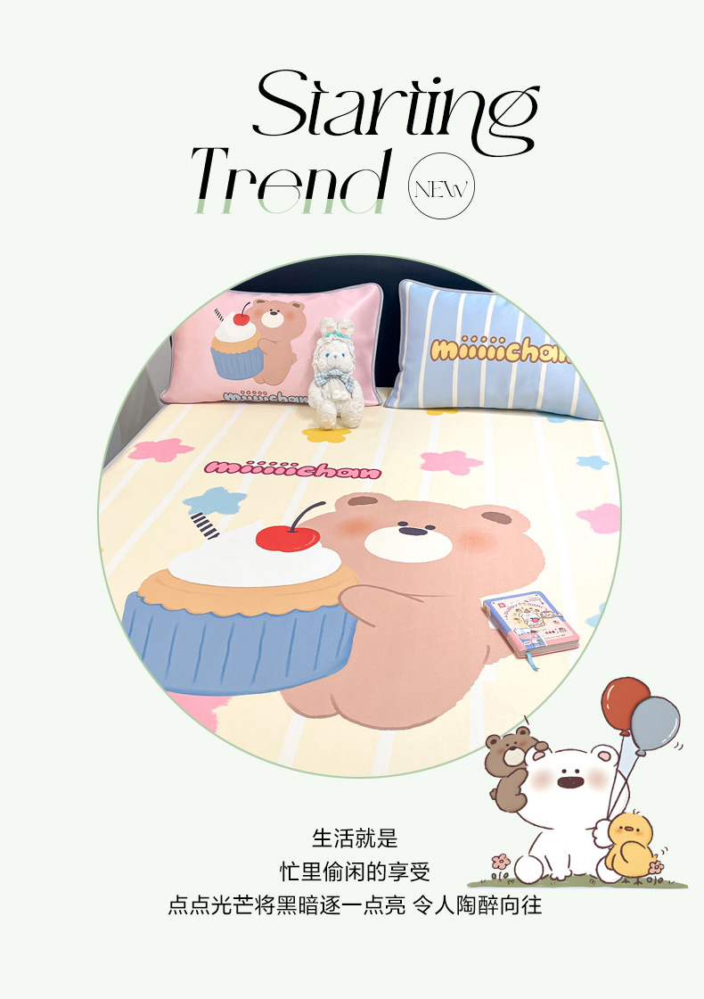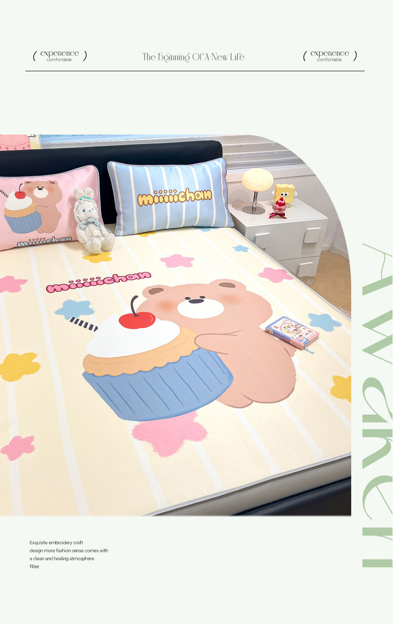 当前位置: 91家纺网 > 商品网购 > 床上用品 > 凉席 > 凉席套件 > 暮思家居 2026新款正版授权miiiiichan大版数码印花可机洗1200D冰丝席子凉席 蛋糕小熊