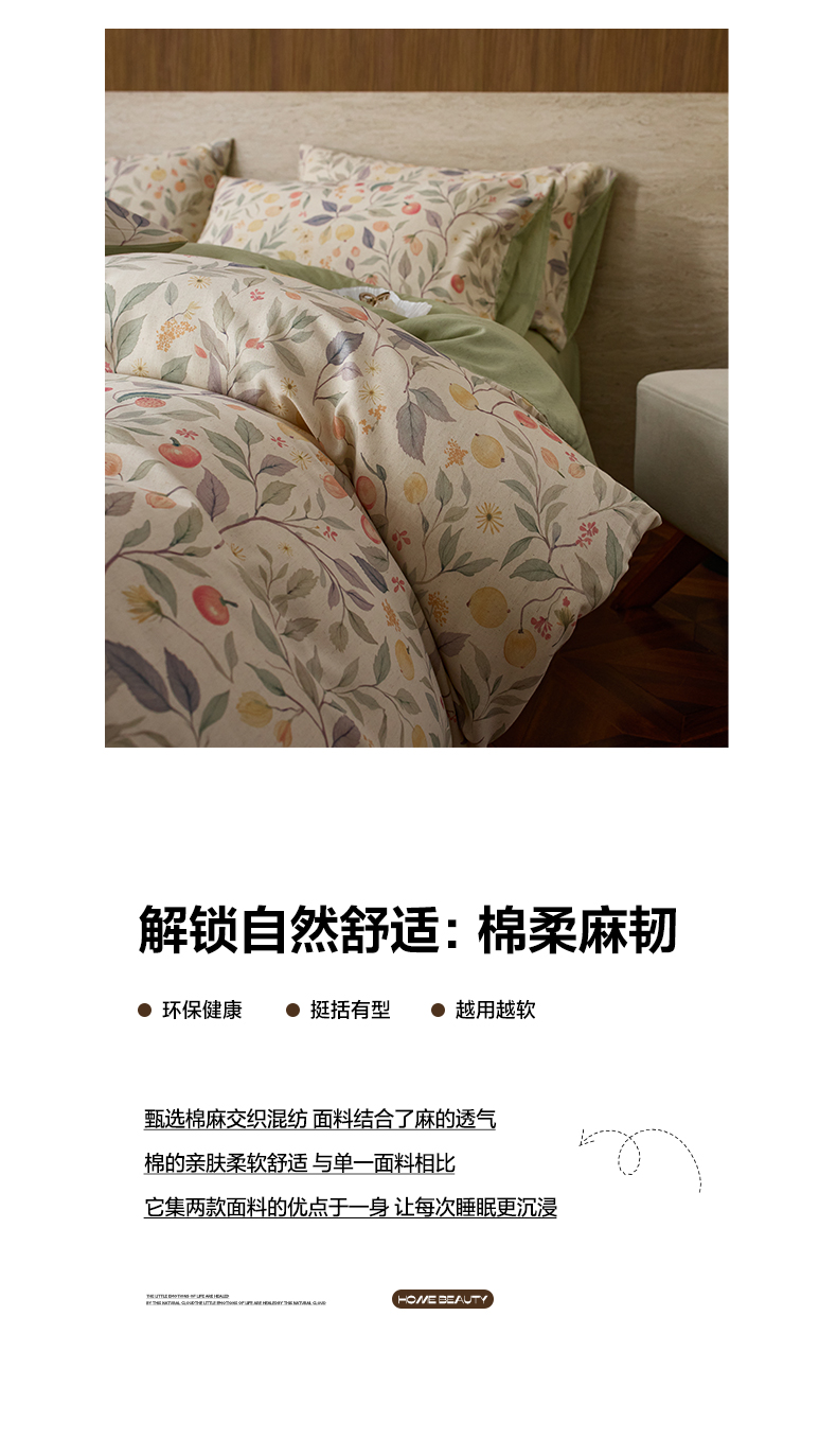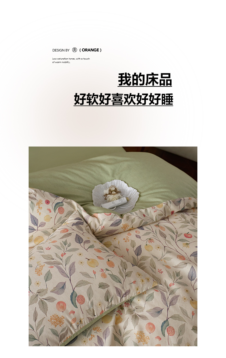 商品名称:如一 2026新款A类复古全棉棉麻印花四件套 果韵