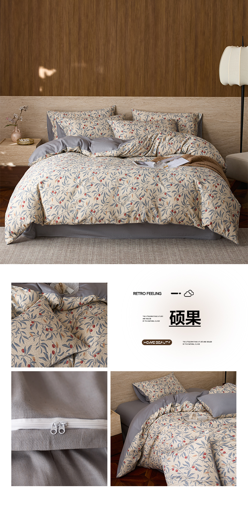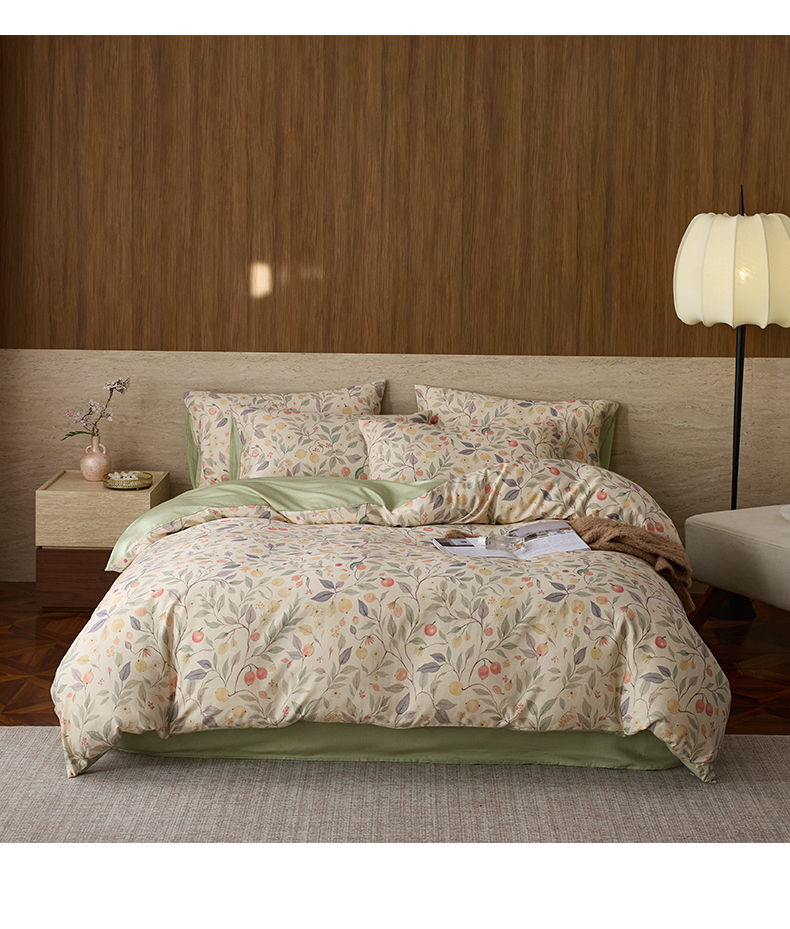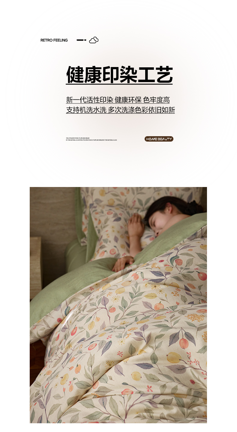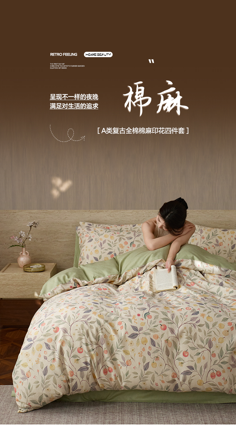如一 2026新款A类复古全棉棉麻印花四件套 果韵