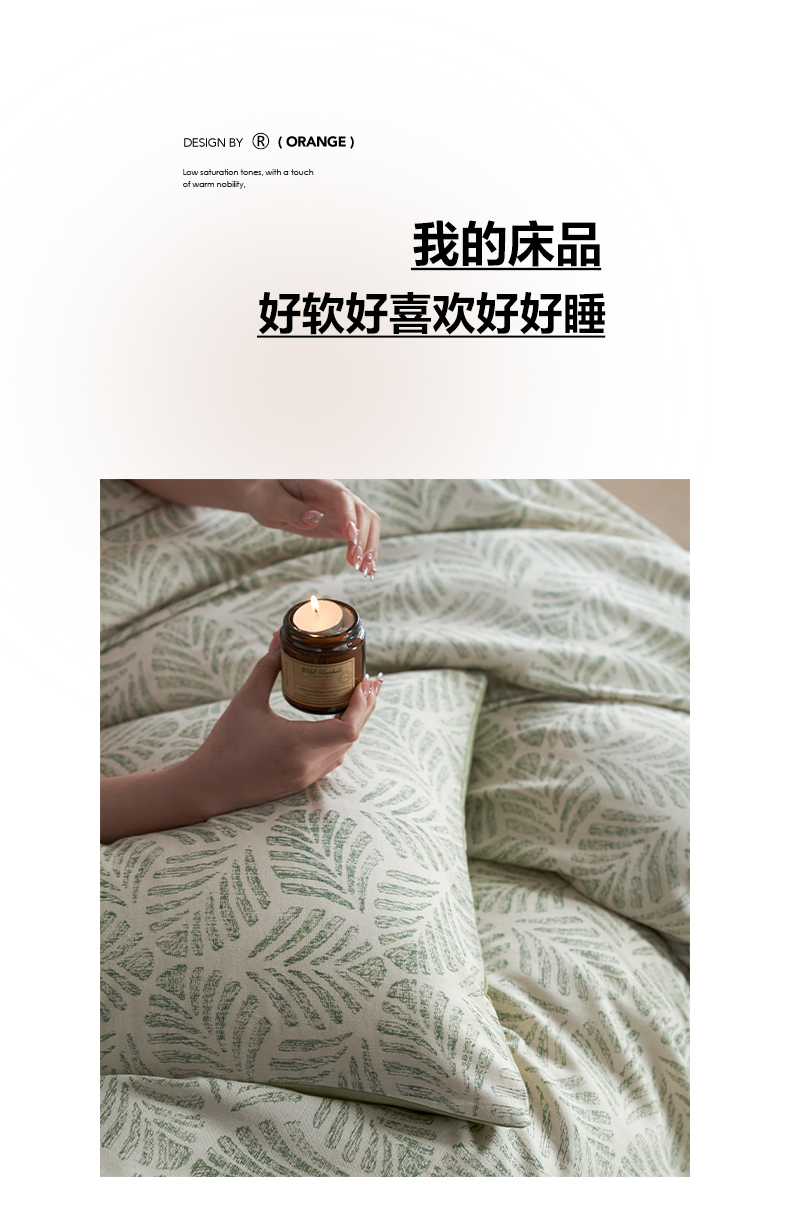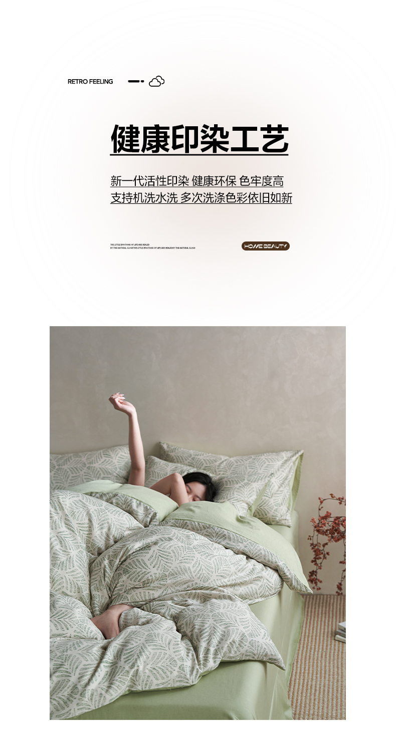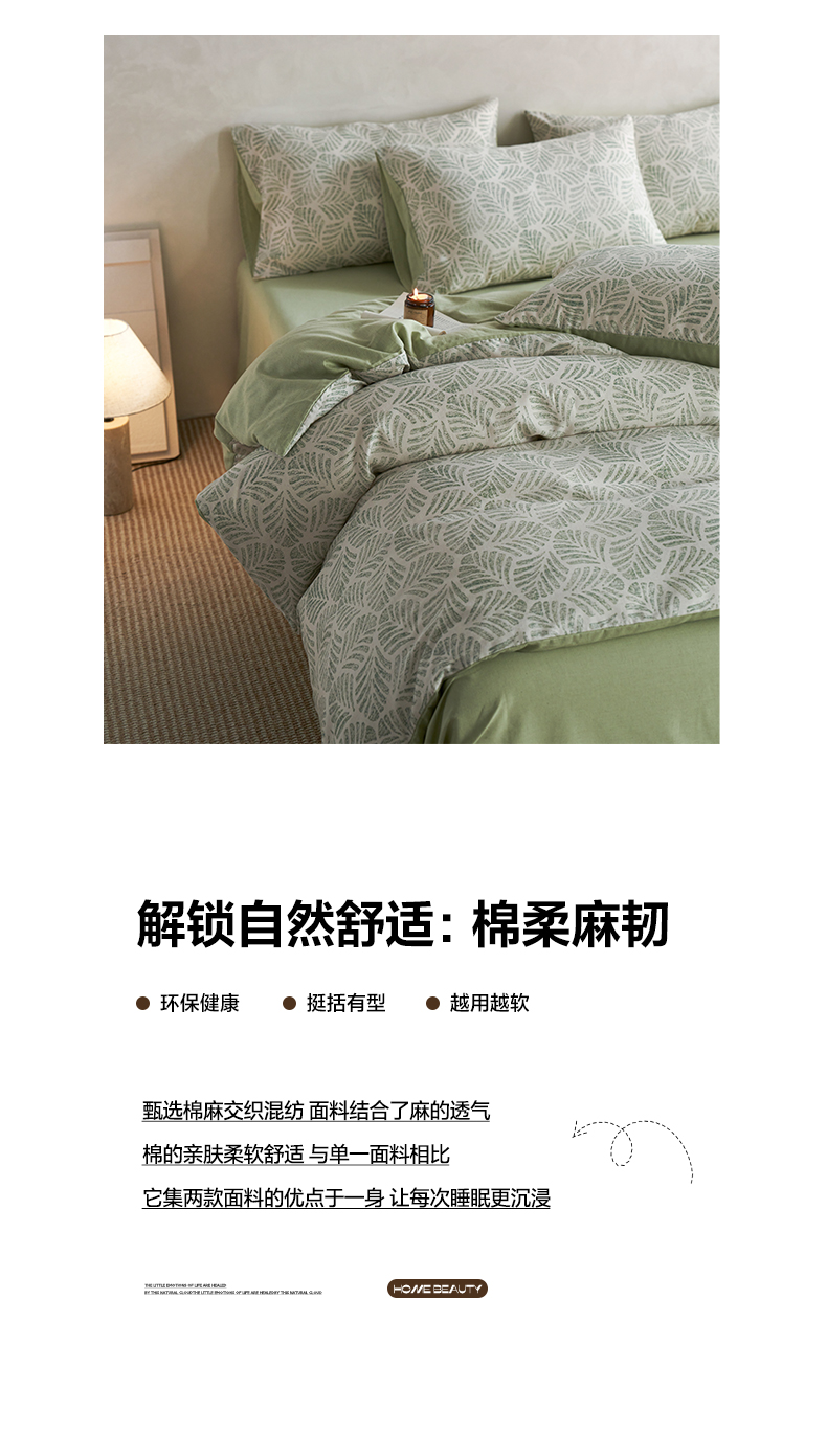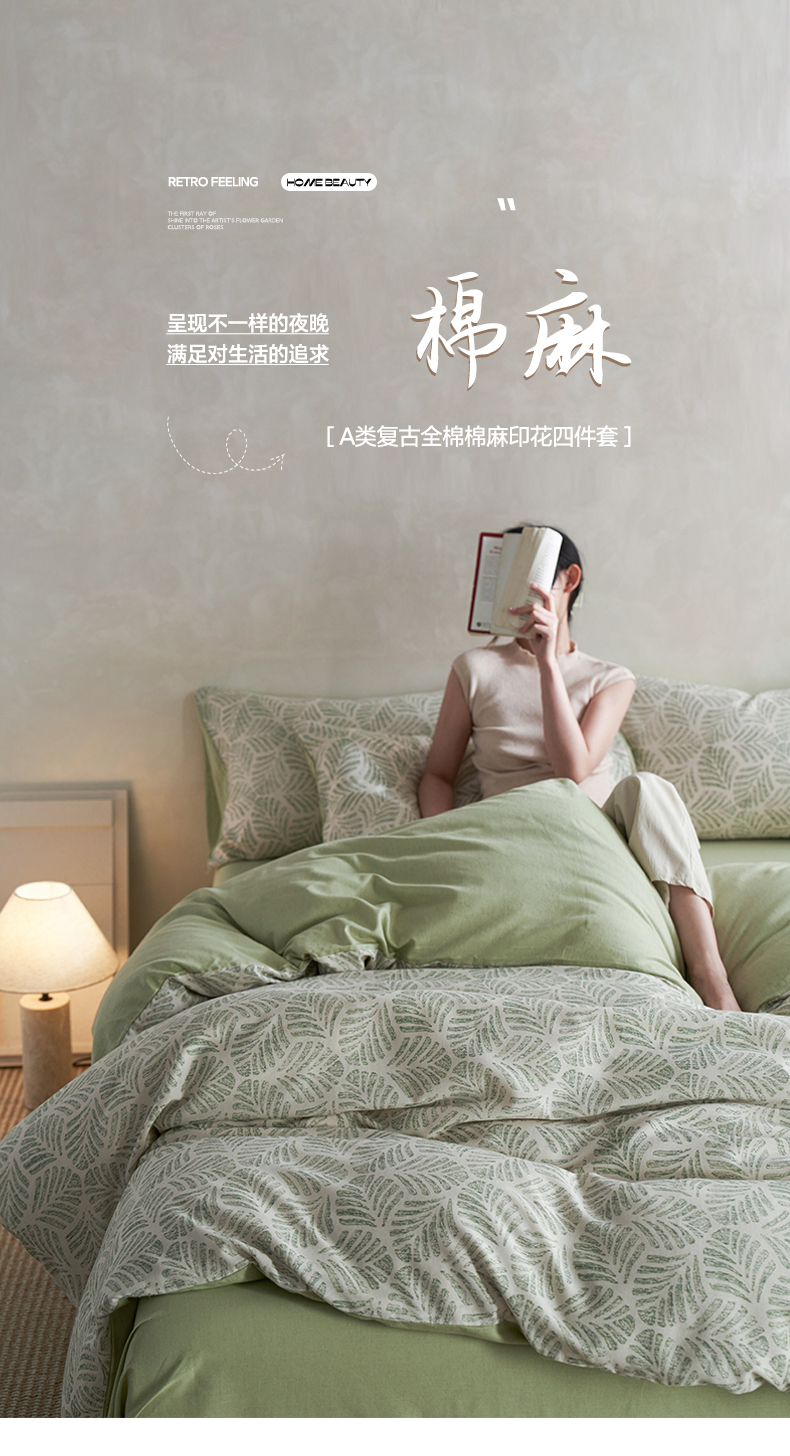 商品名称:如一 2026新款A类复古全棉棉麻印花四件套 叶绿