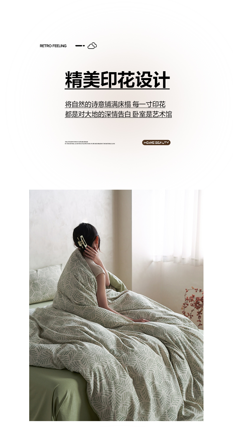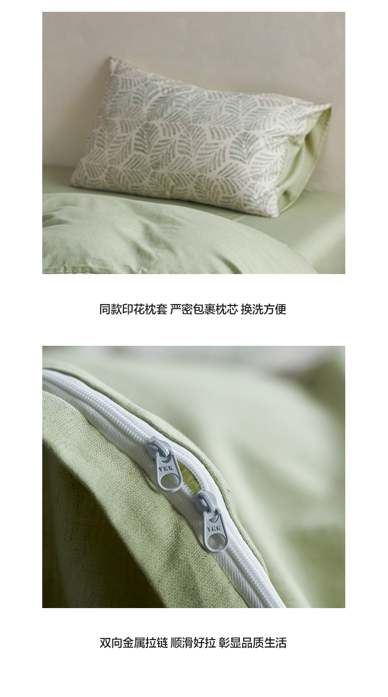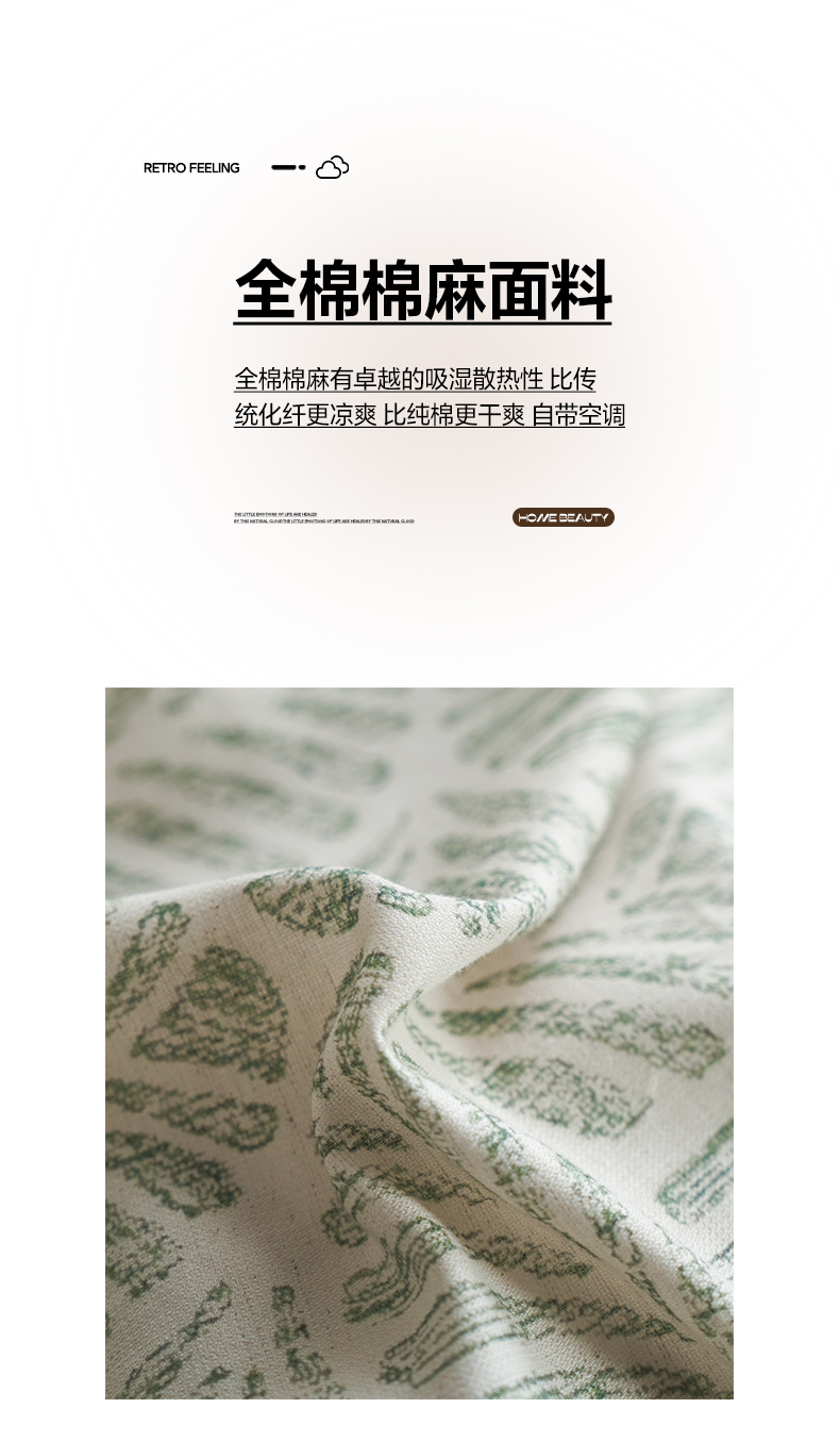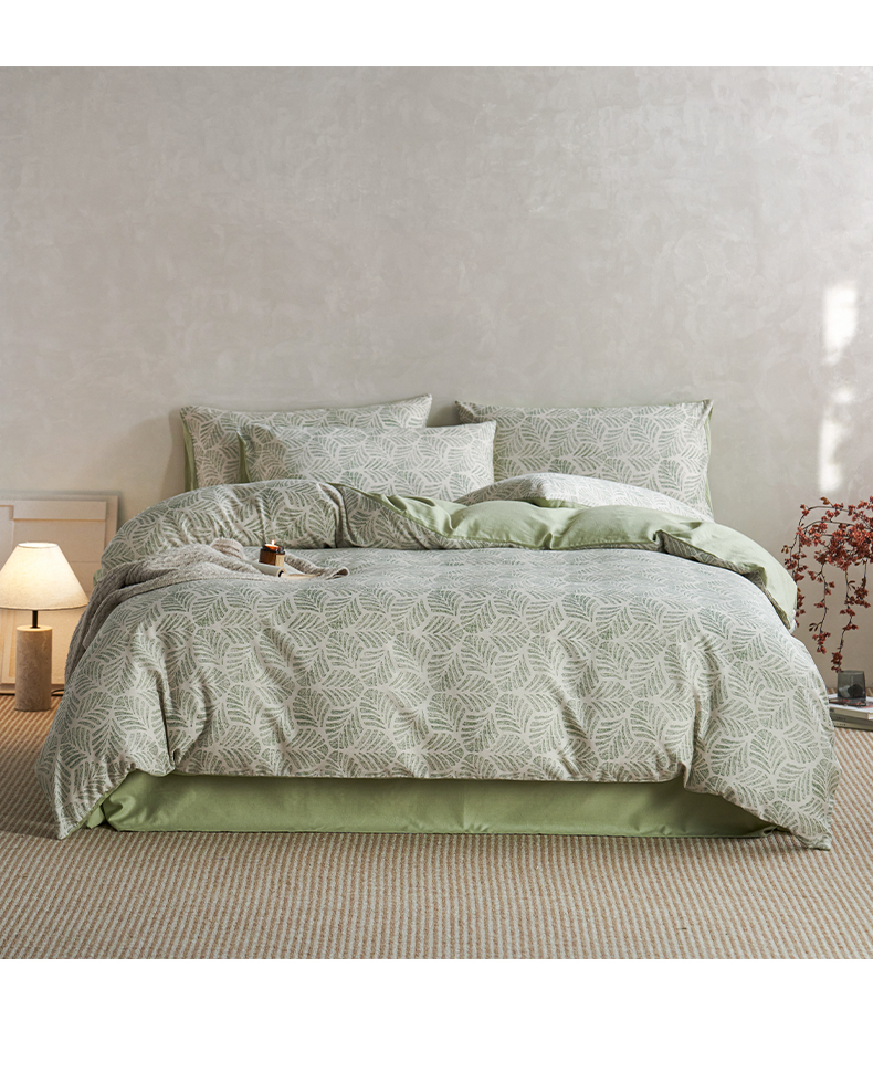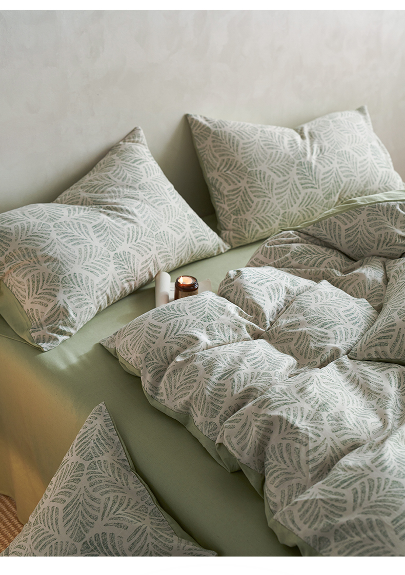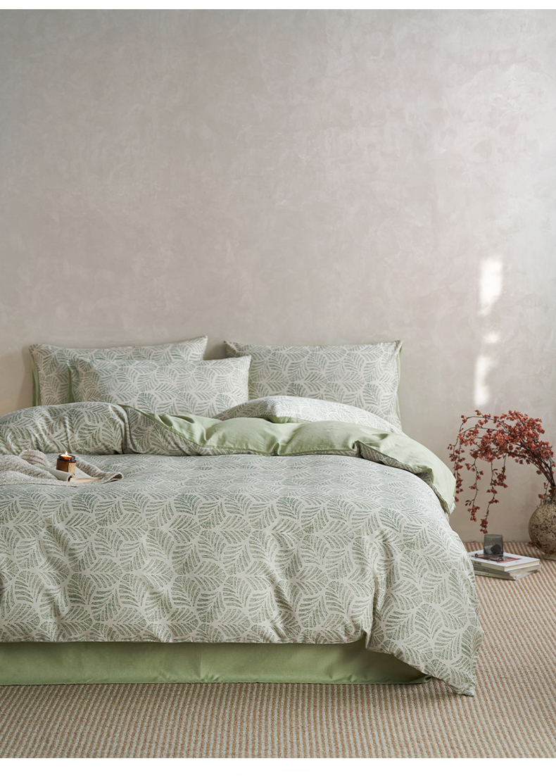 如一 2026新款A类复古全棉棉麻印花四件套 叶绿