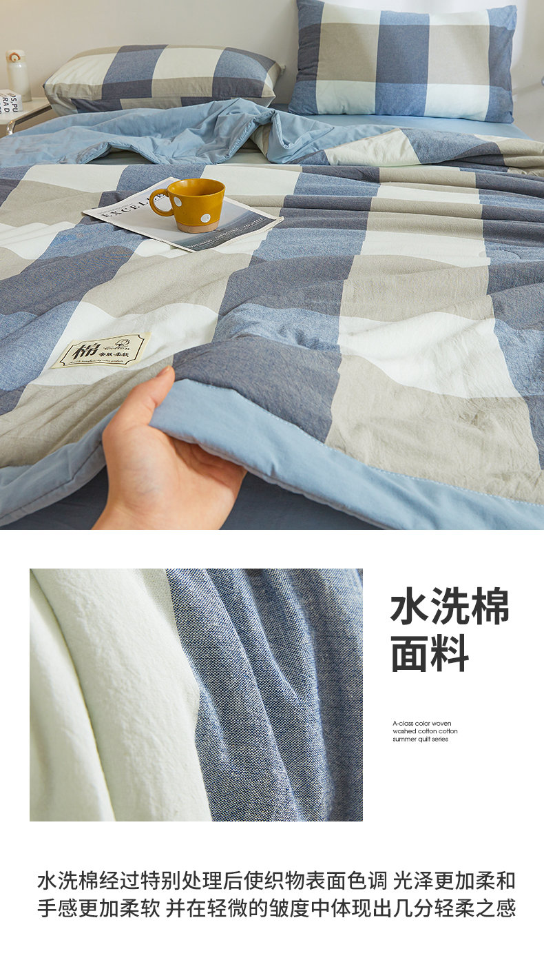 (总)晓时候 2026新款全棉色织水洗棉棉花夏被夏凉被空调被,巴宝莉格,粉大格,粉小格,海蓝大格,黄小格,灰细条,灰中格,简兮蓝,蓝灰大格,蓝条纹,蓝小格,洛卡灰,绿咖大格,莫尼蓝,星空桔,云舒粉