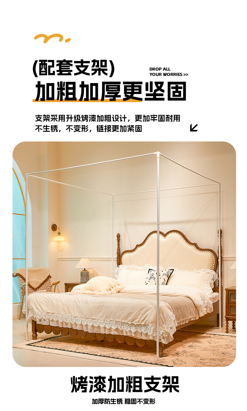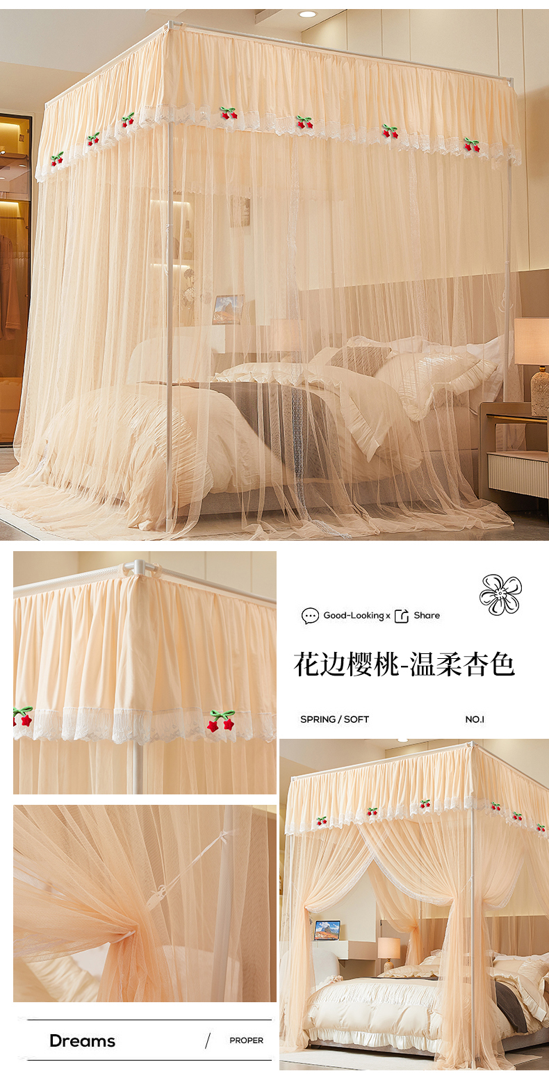 当前位置: 91家纺网 > 商品网购 > 床上用品 > 蚊帐 > 宫廷蚊帐 > 雪姿家纺 2026新款刺绣花边落地宫廷外穿杆蚊帐-落地星星 刺绣花边星星-温柔杏色