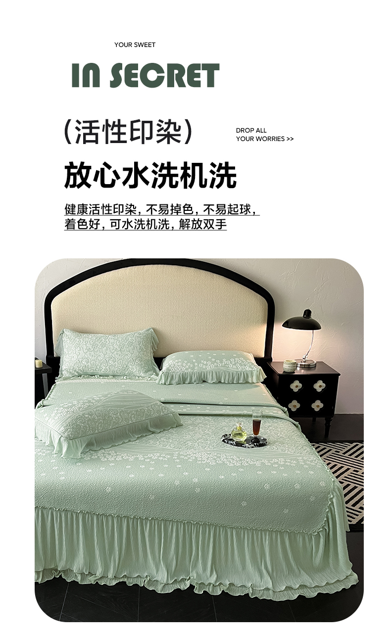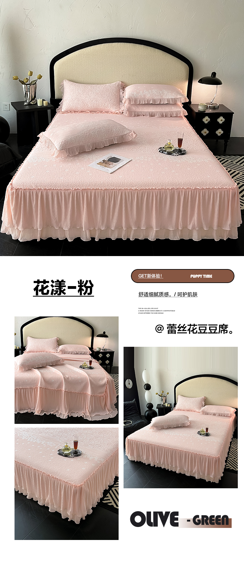(总)莱米家纺 2026新款蕾丝花系列冰豆豆床裙,花漾-粉,花漾-灰,花漾-卡其,花漾-蓝,花漾-绿,花漾-米黄,花漾-紫