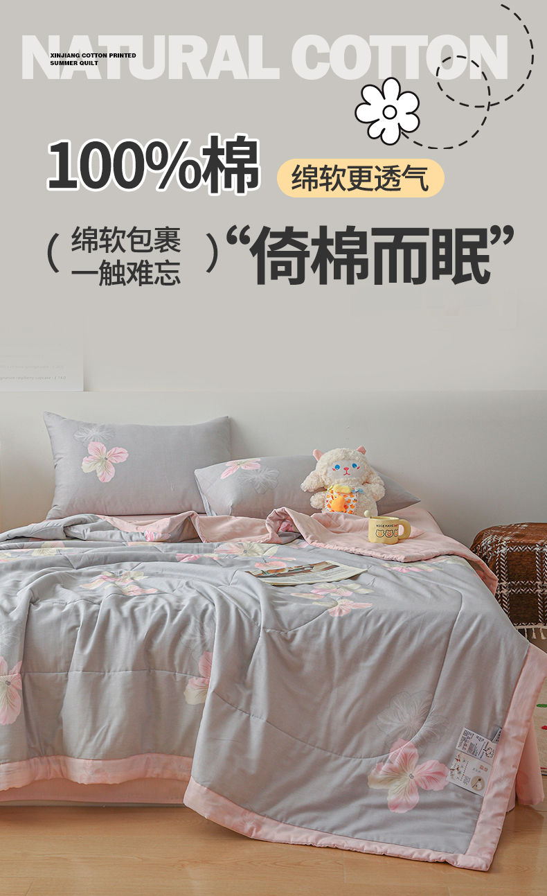 商品名称:尊妙被业 2026春夏新款全棉印花夏被空调被夏凉被 温暖思绪