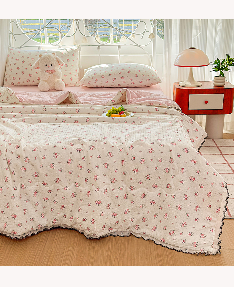 商品名称:眠势力 2026新款泡芙纱夏被四件套全棉花边空调被夏凉被薄被子 蝶语