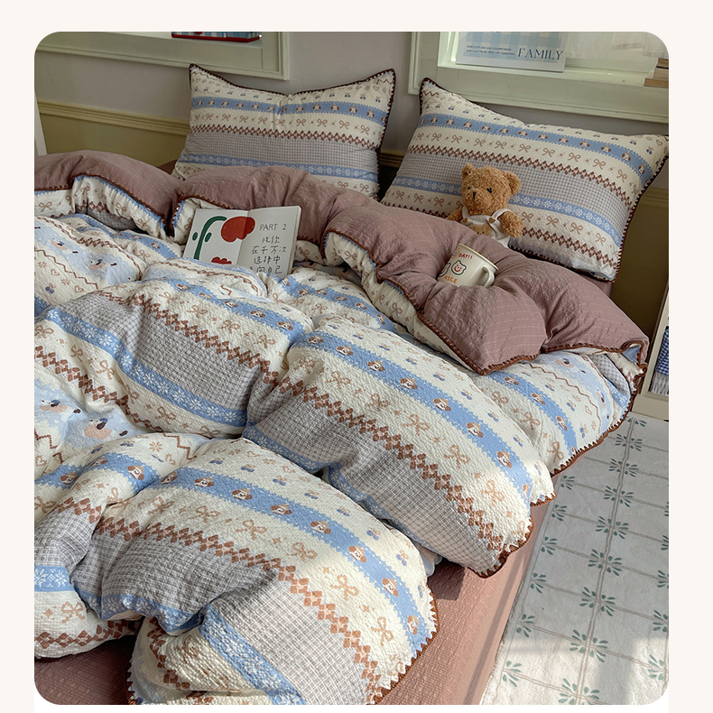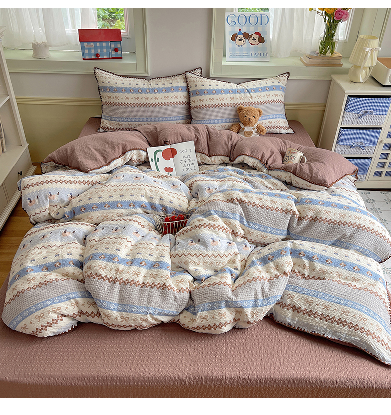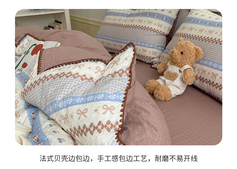 (总)凯洛奇 2025新款复古风格子皱皱纱水洗棉毛巾绣四件套,布丁猫-黄格,布丁猫-彩格,布丁猫-灰格,布丁猫-绿格,布丁猫-红格