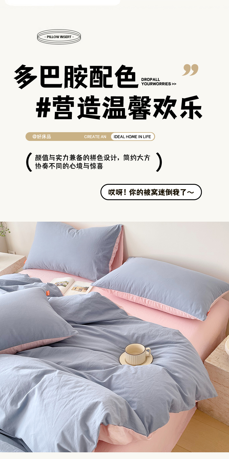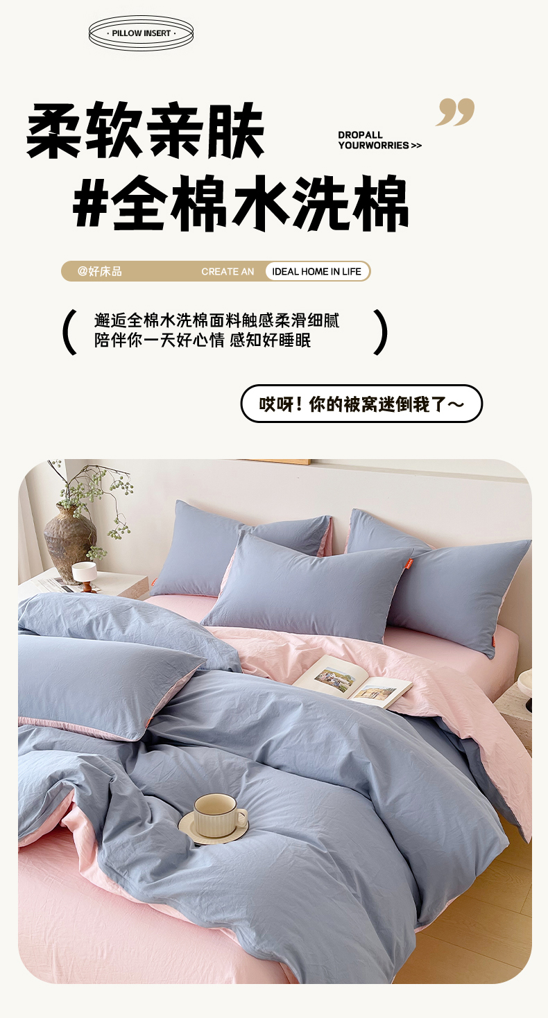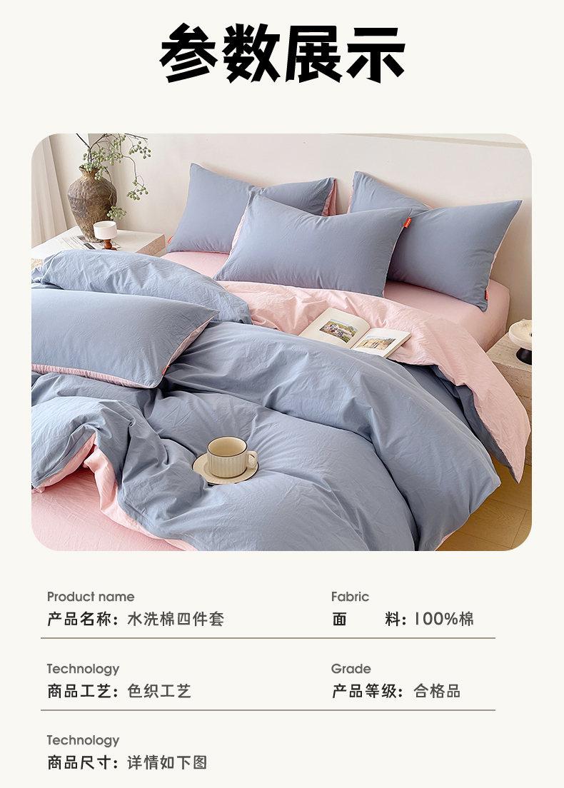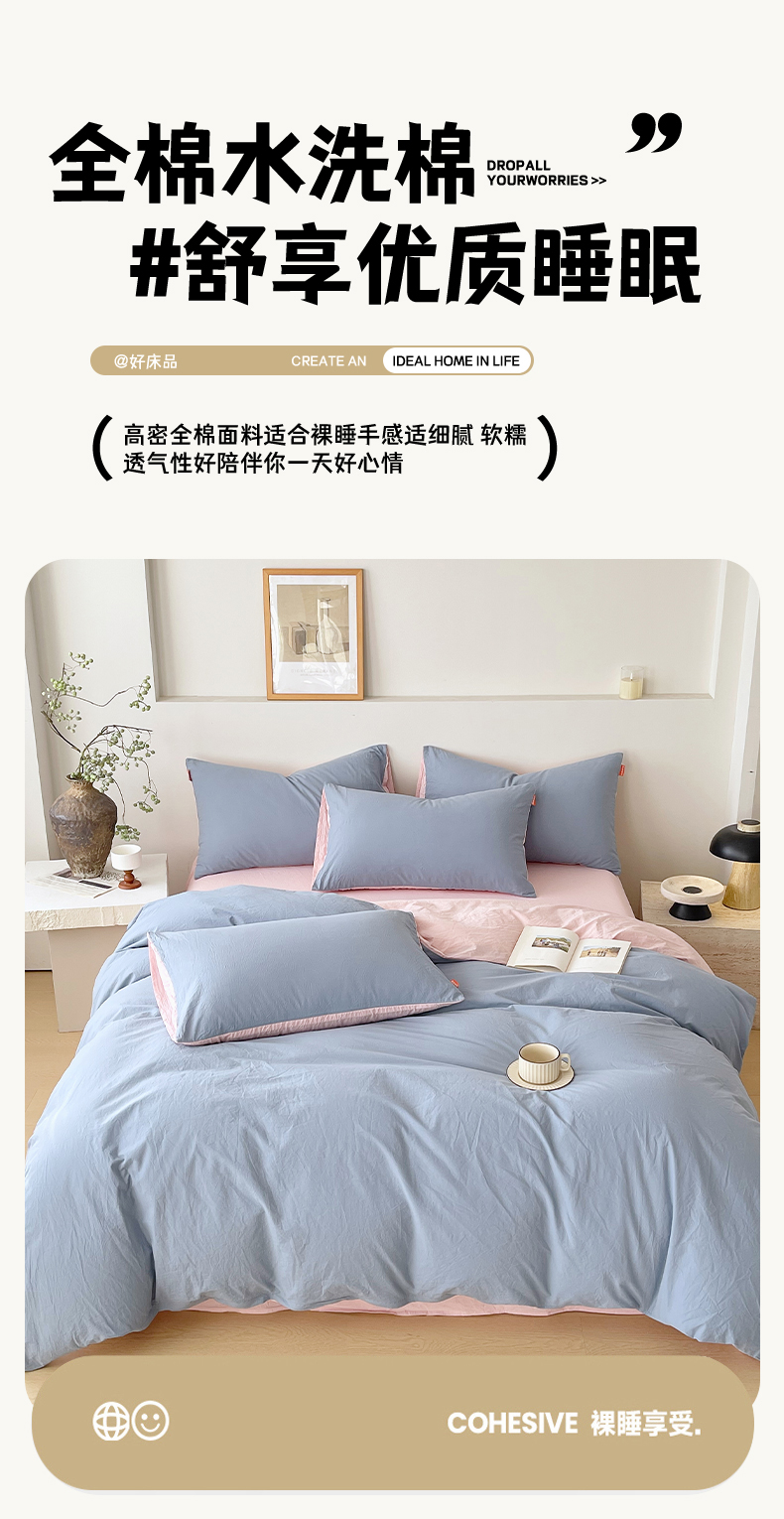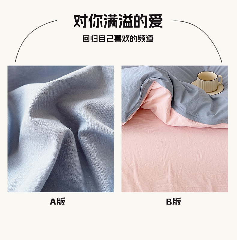 当前位置: 91家纺网 > 商品网购 > 床品套件 > 四件套 > 全棉普通四件套 > 春皖家纺 2026春夏新款双拼全棉纯棉水洗棉四件套 浅蓝-樱花粉