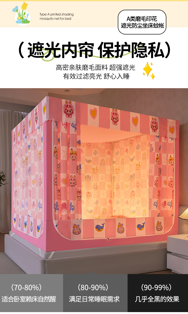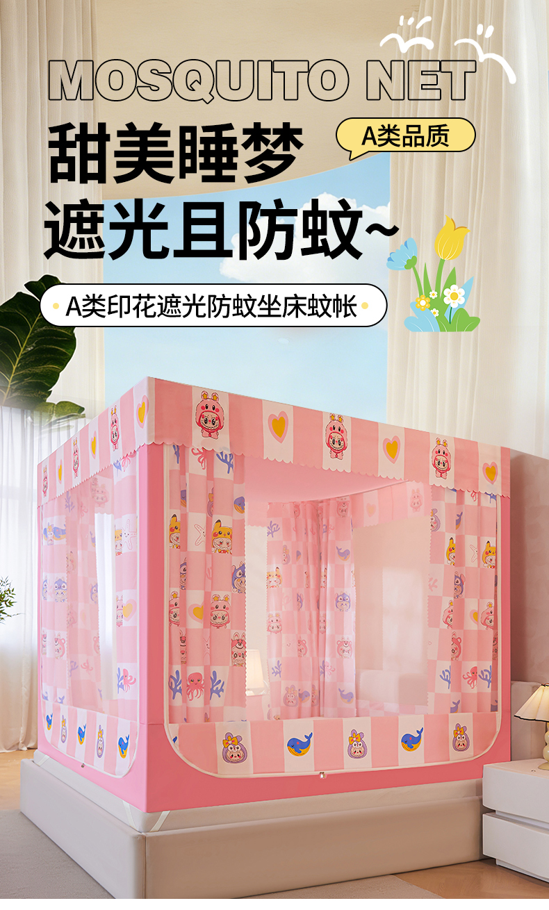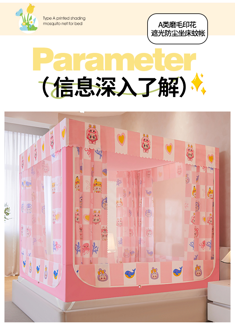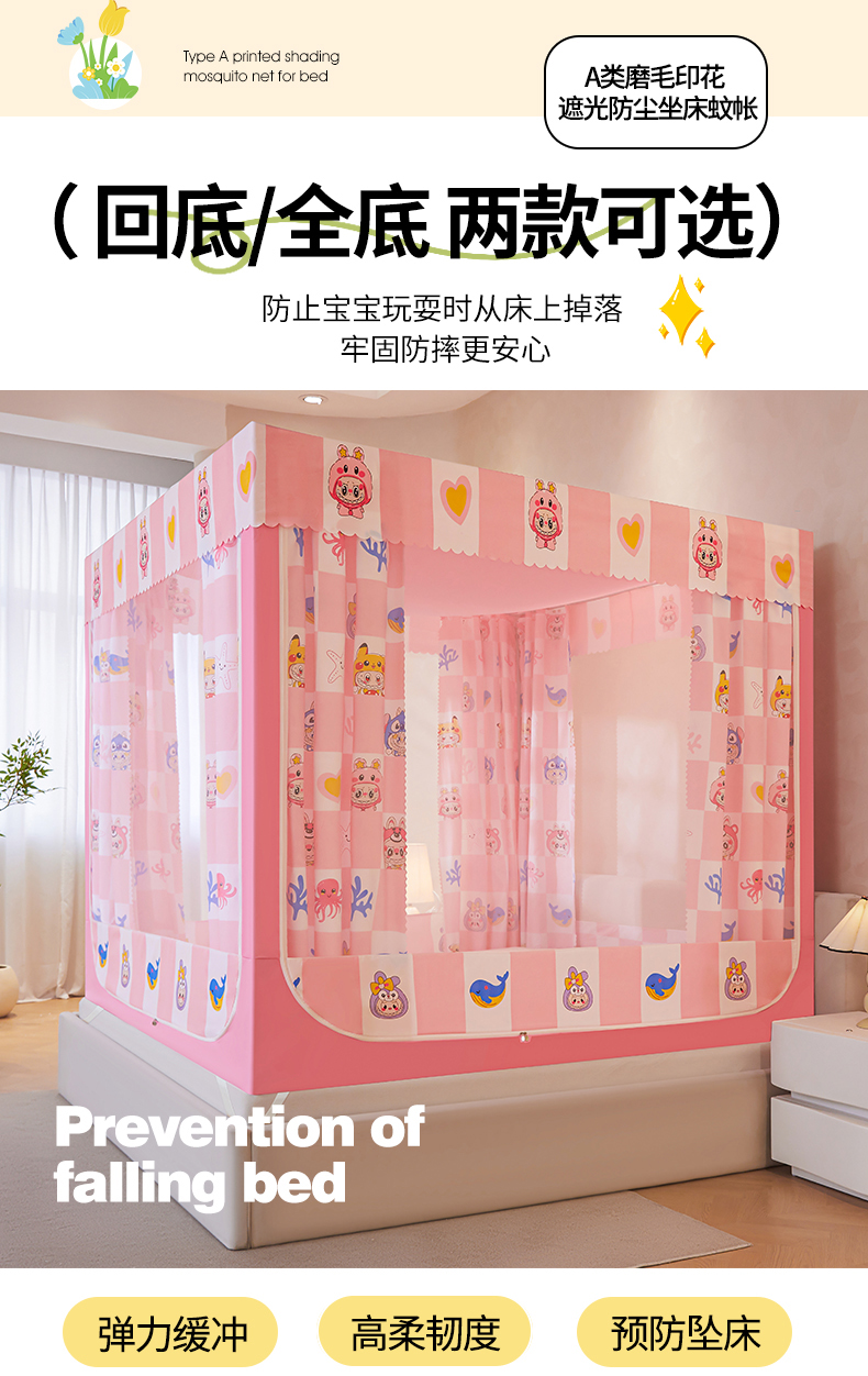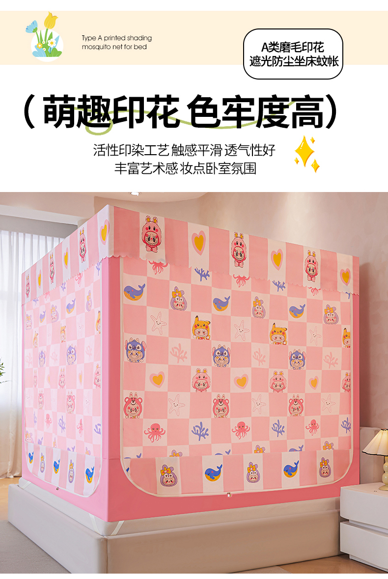 当前位置: 91家纺网 > 商品网购 > 床上用品 > 蚊帐 > 坐床式蚊帐 > 迪凡保罗蚊帐 2026新款2606专版卡通回底全底AB版遮光帘坐床蚊帐 趣玩格子-带床帘
