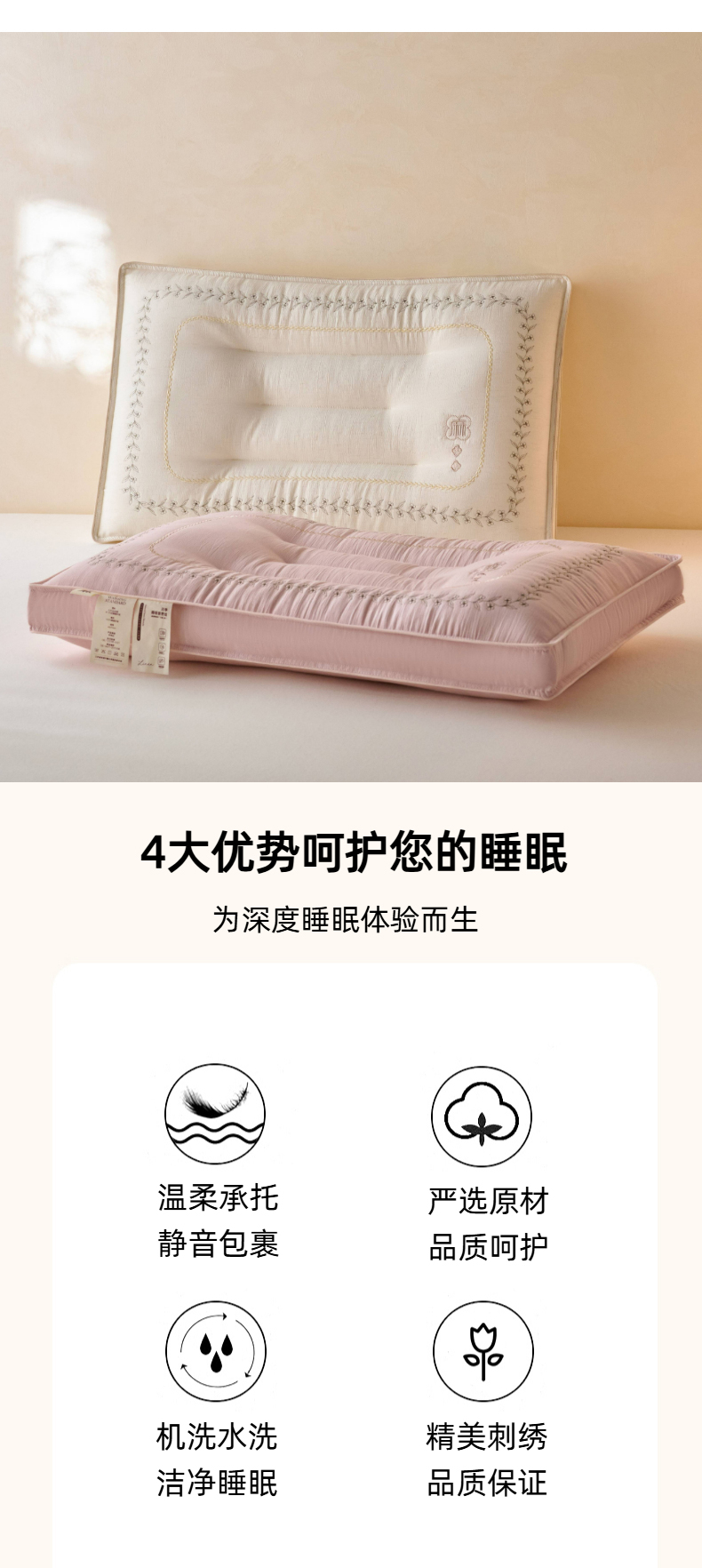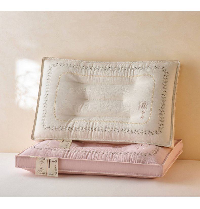 (总)帝诺妮枕芯坊 2024新款绣花羽丝枕,绣花羽丝枕白色,绣花羽丝枕粉色