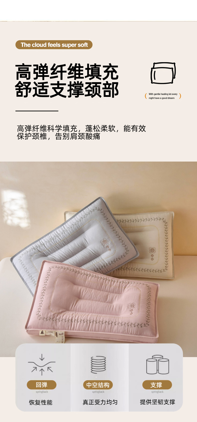 (总)帝诺妮枕芯坊 2026新款亲肤羽丝棉枕芯-一路生花,豆沙色,米黄色,蓝色