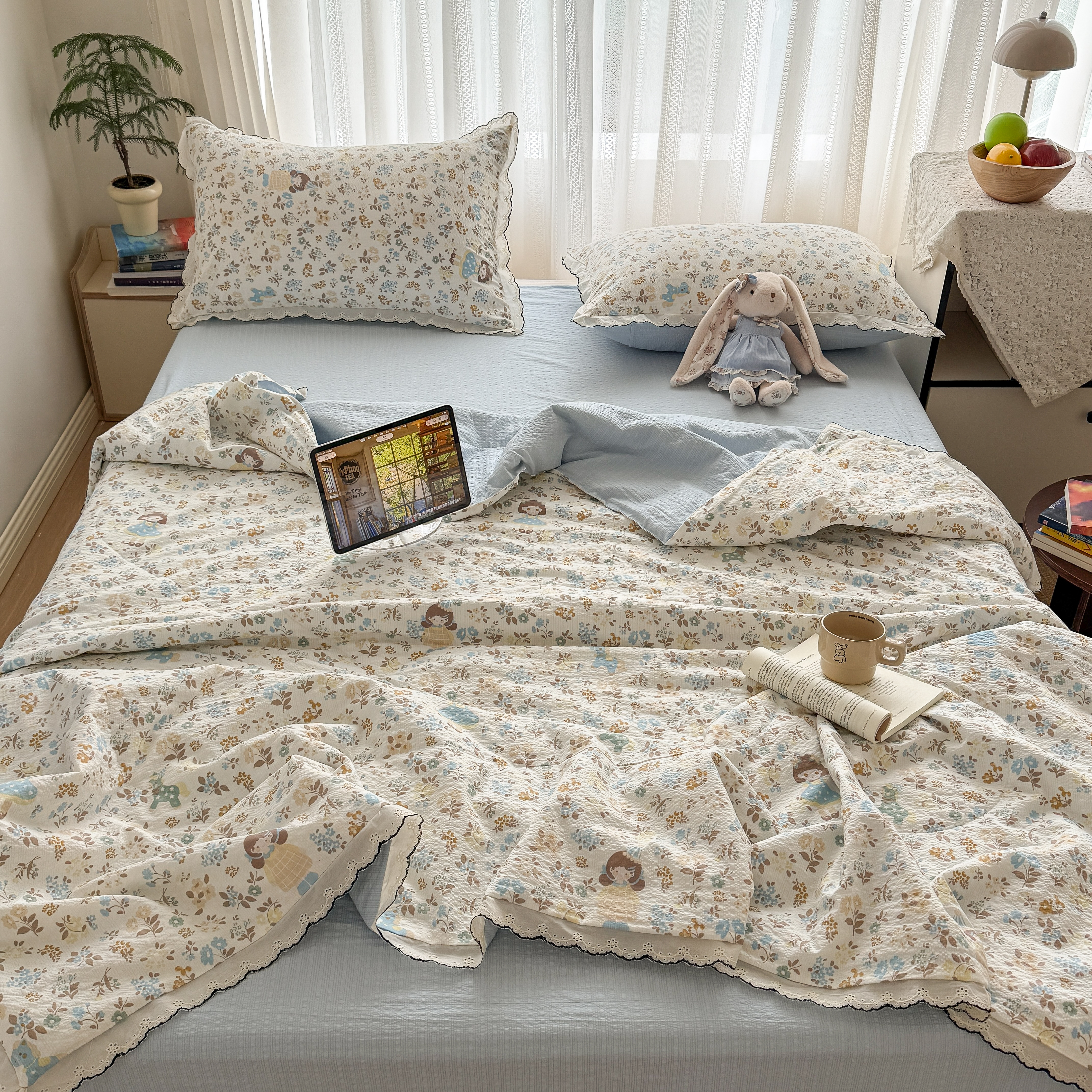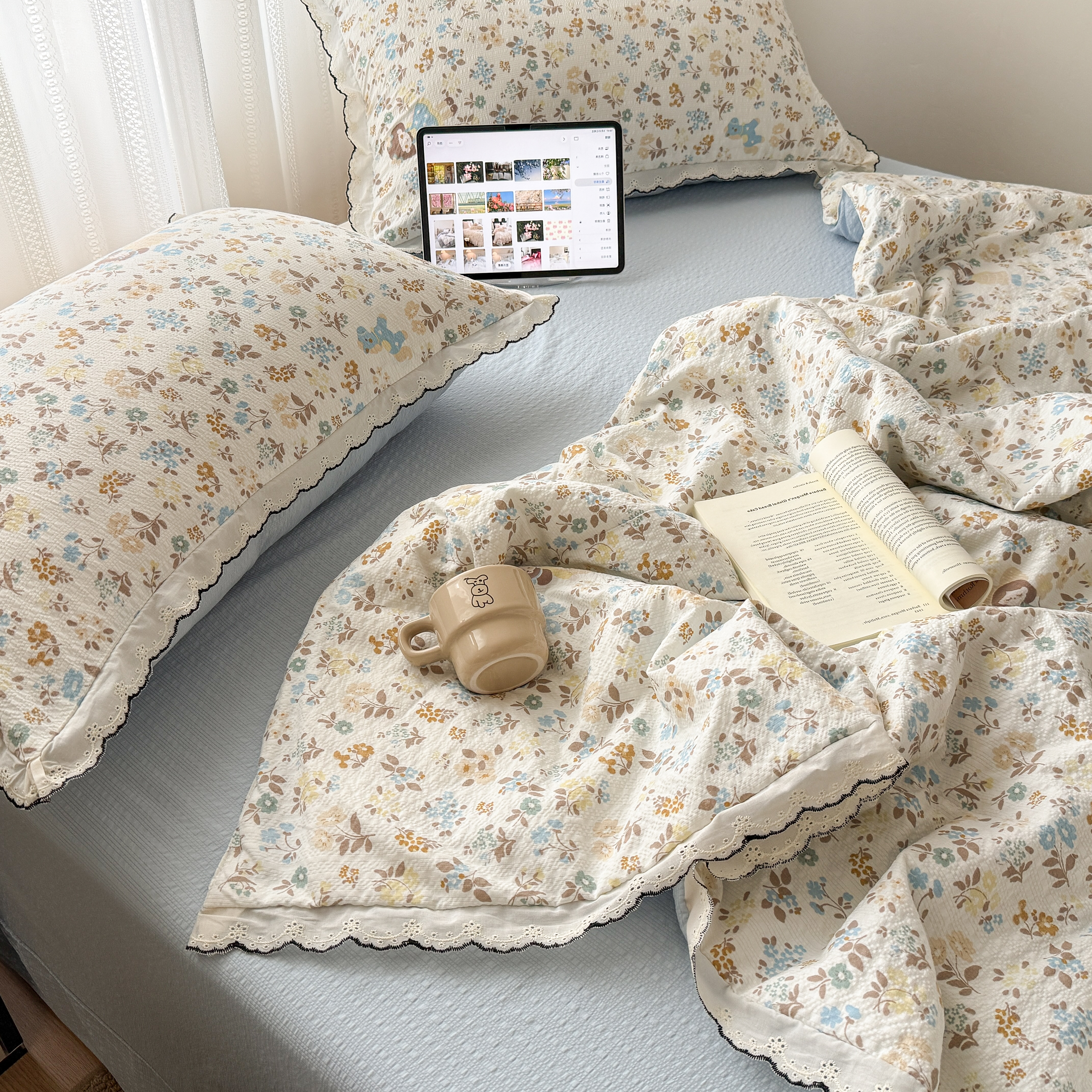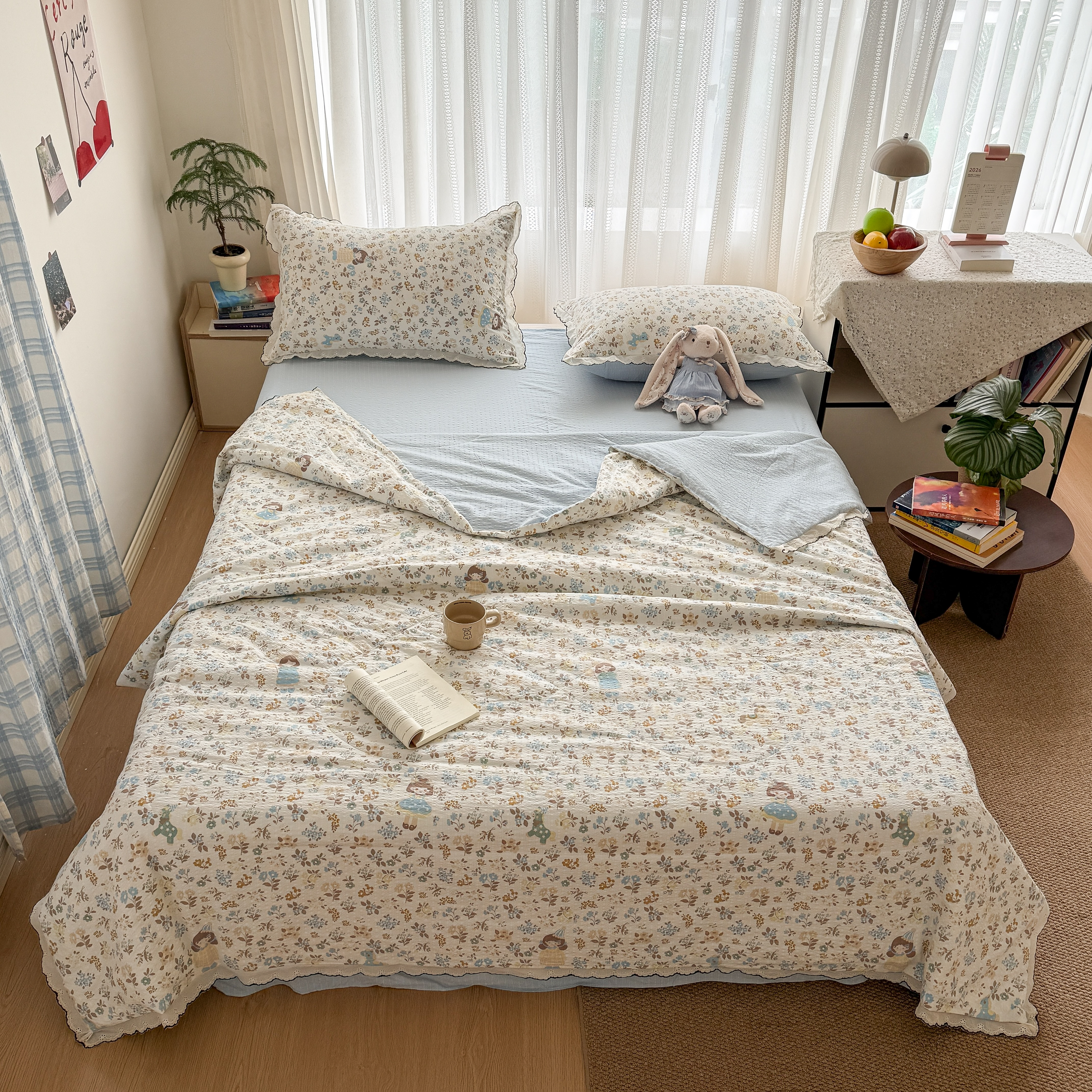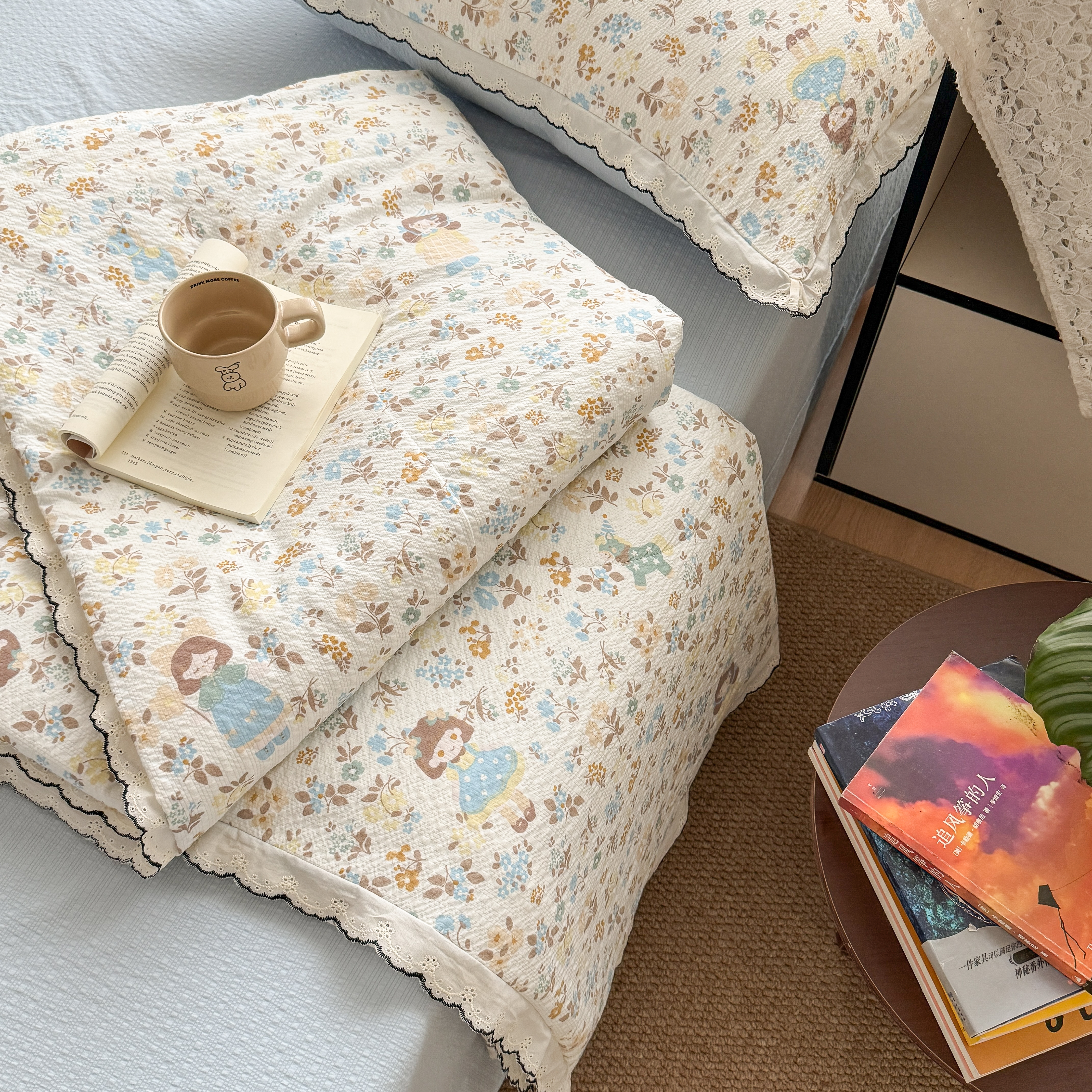 欧尚 2026新款蕾丝花边夏被款四件套 花镜人偶黄