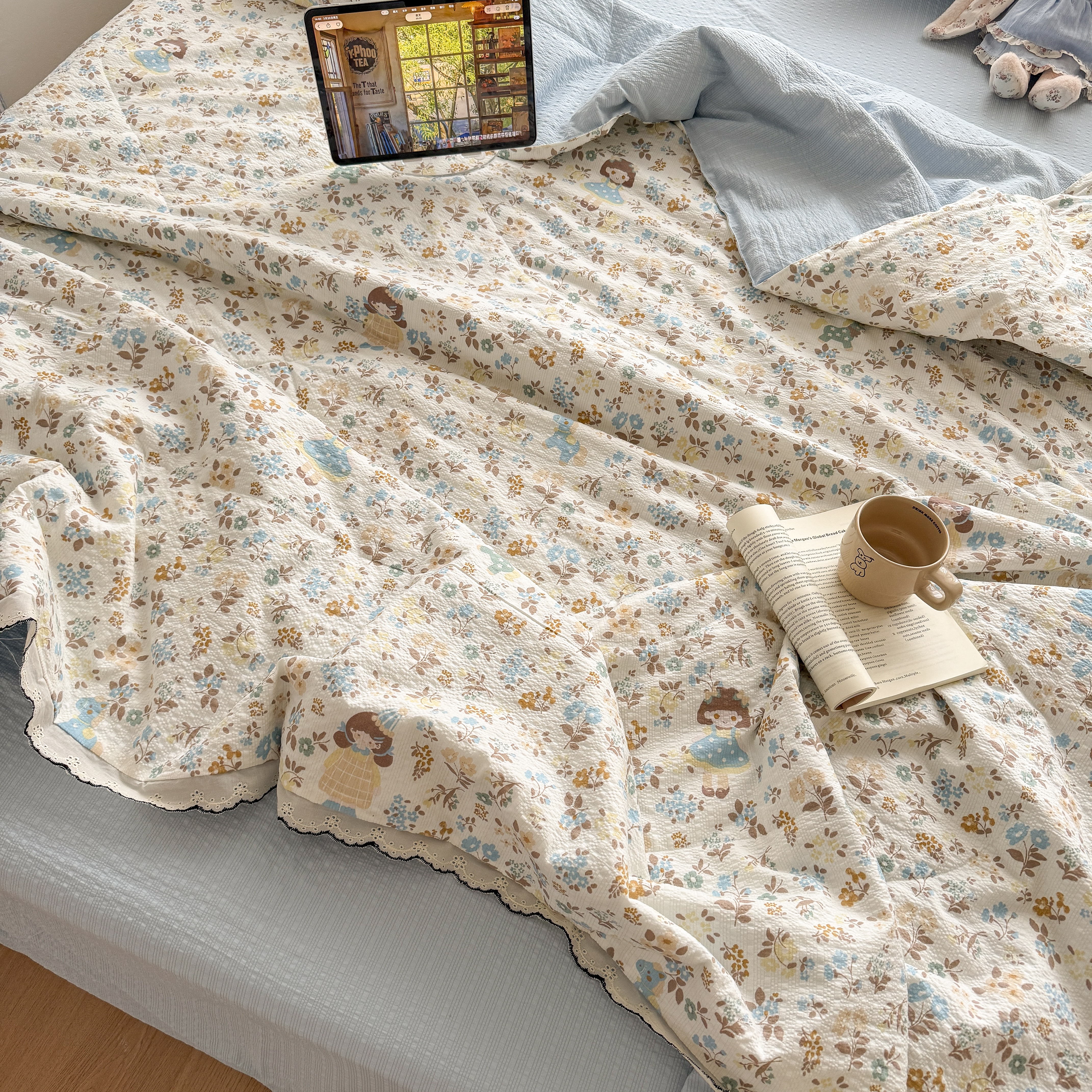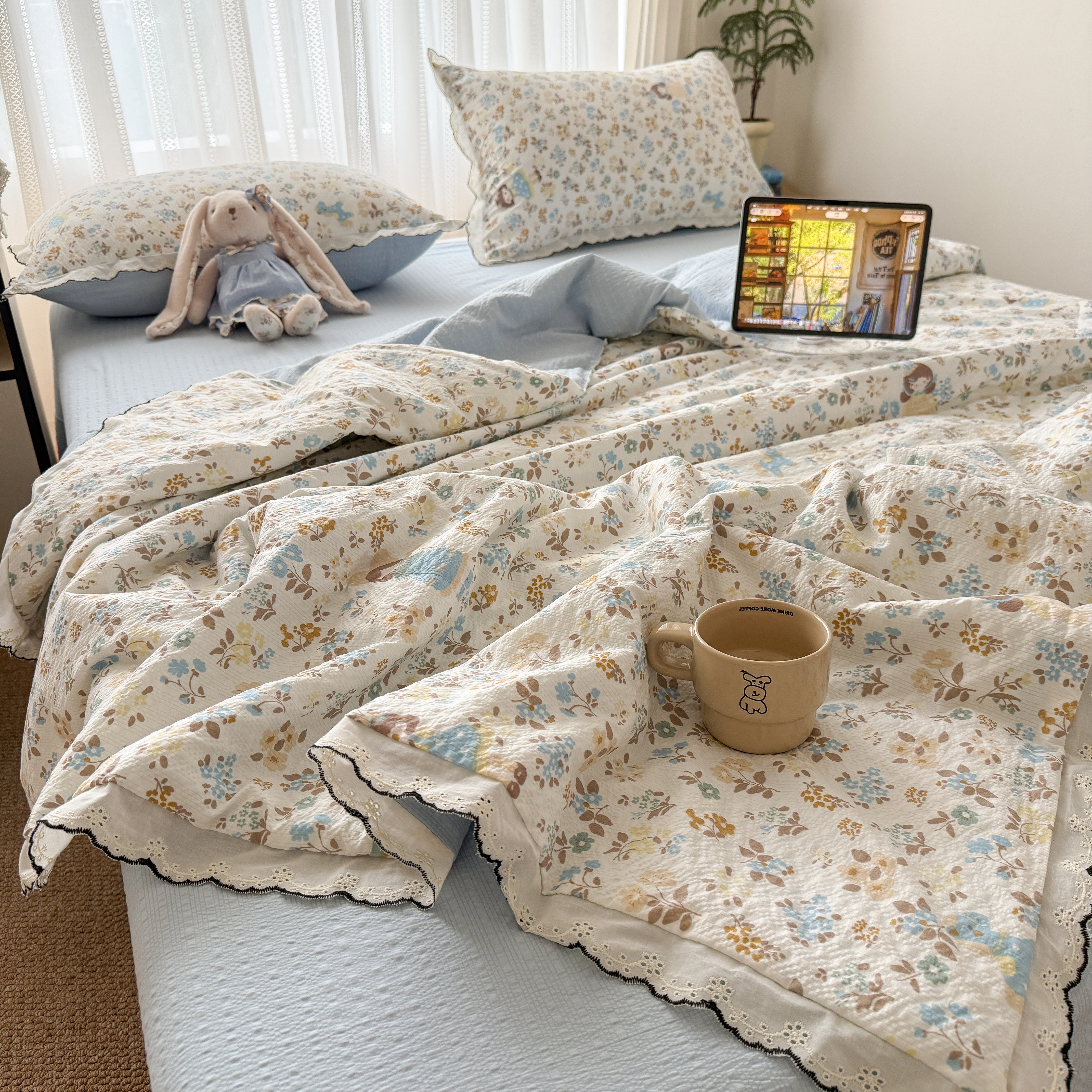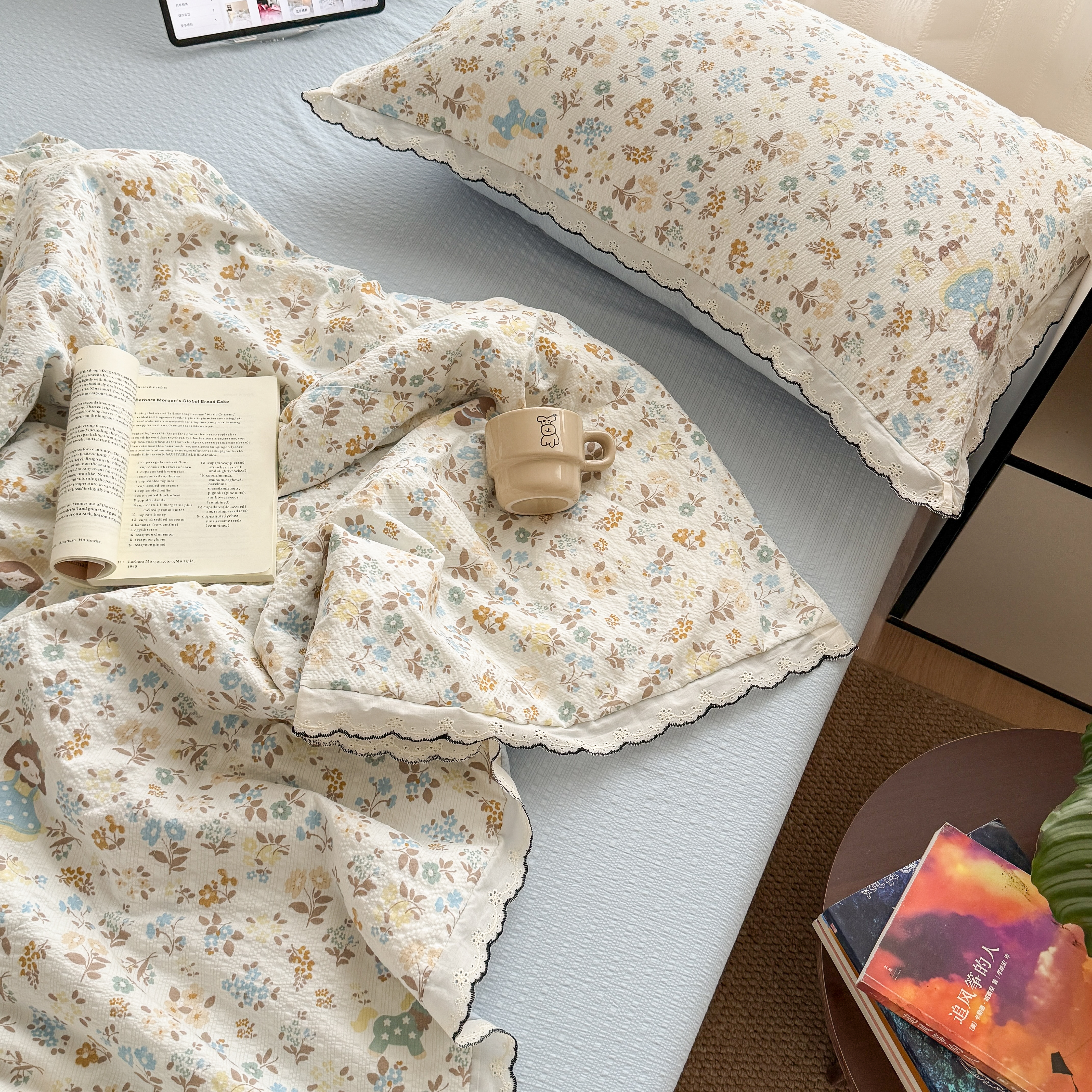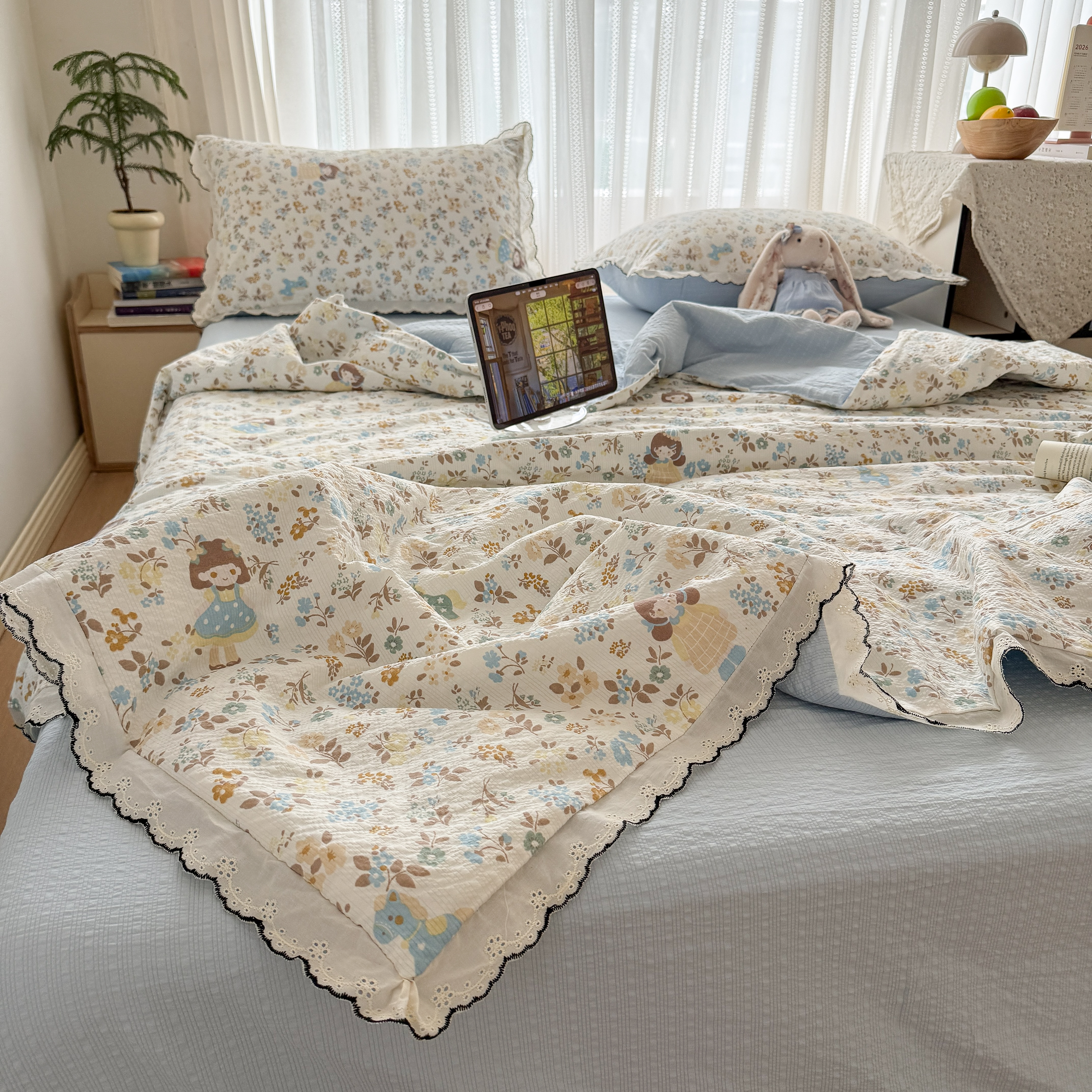 欧尚 2026新款蕾丝花边夏被款四件套 花镜人偶黄