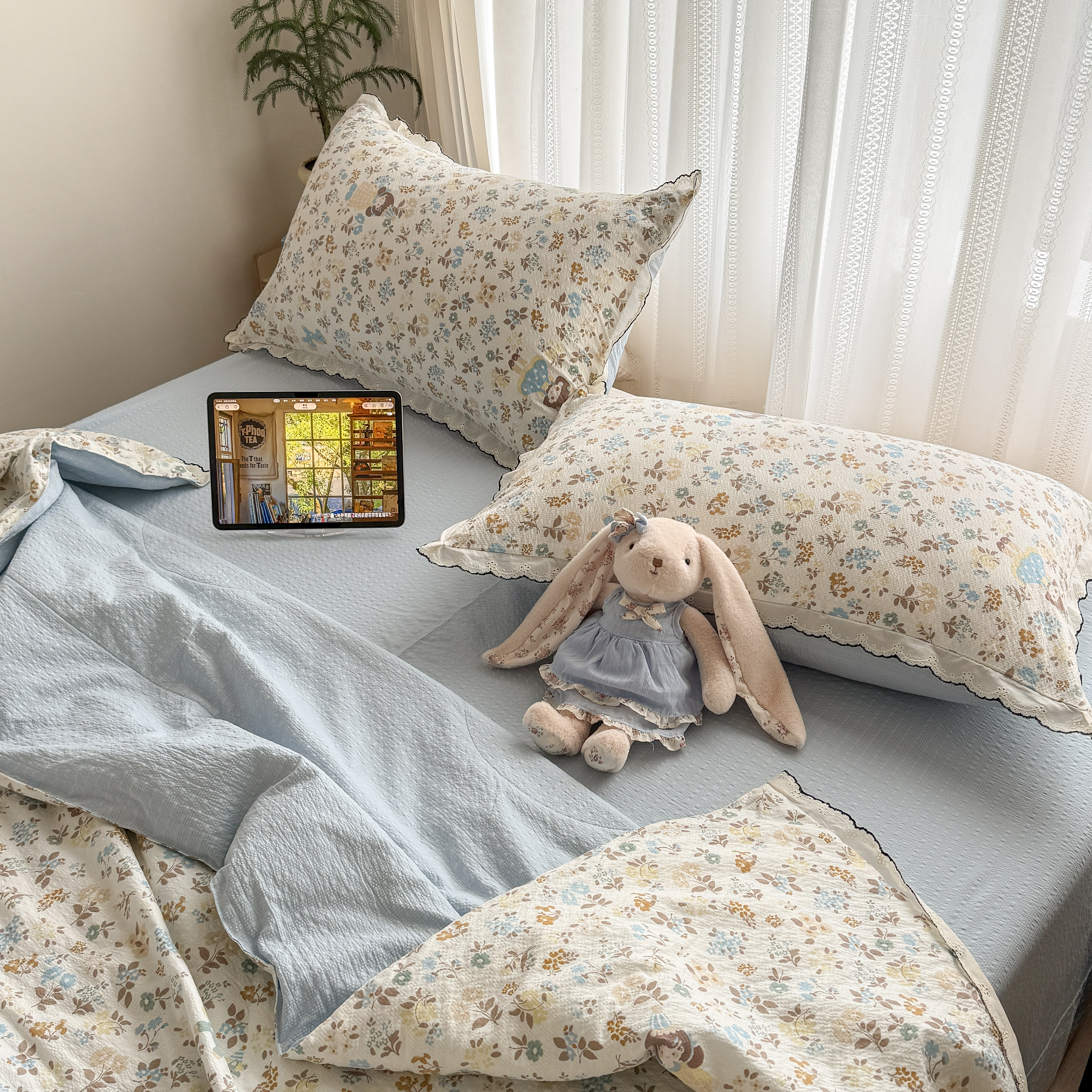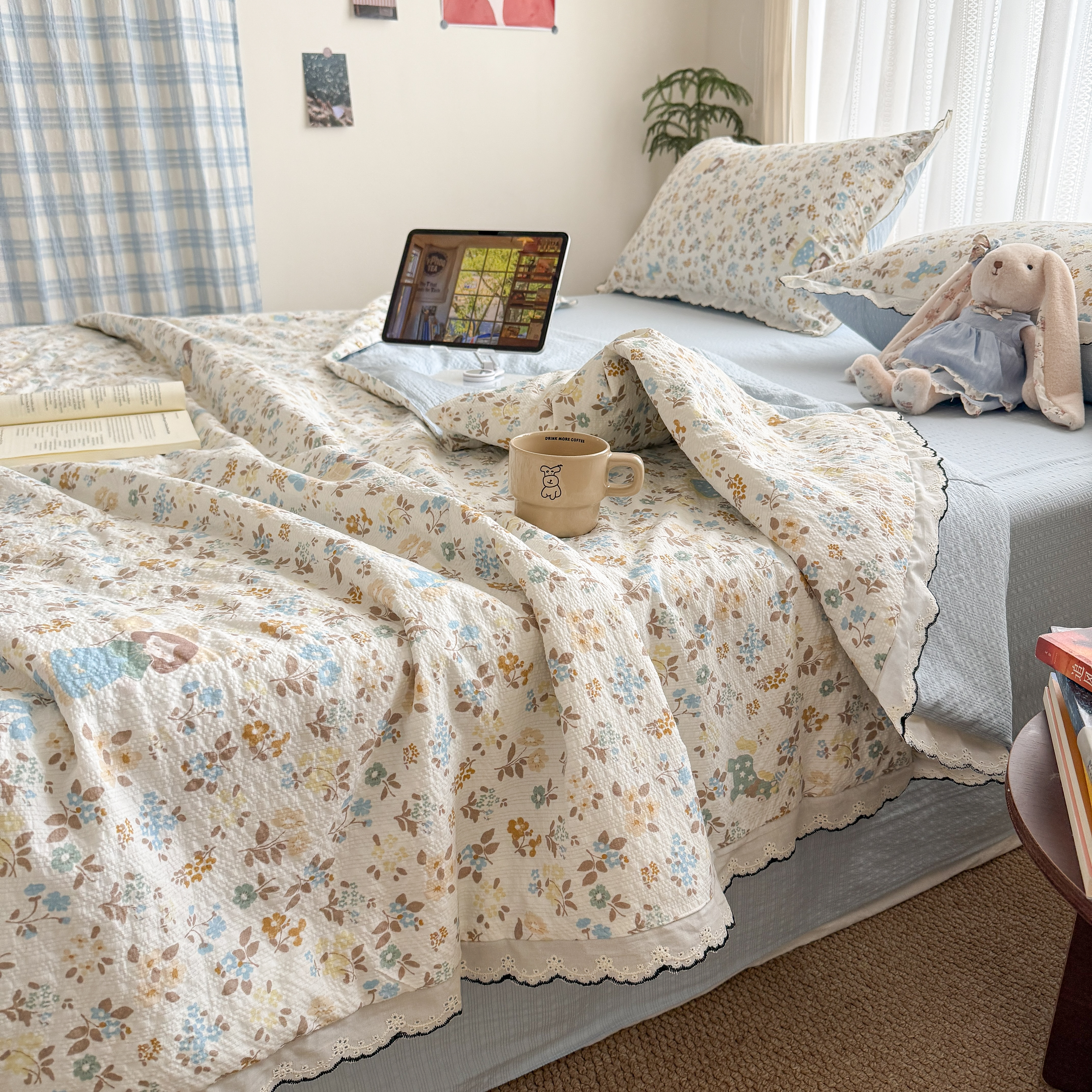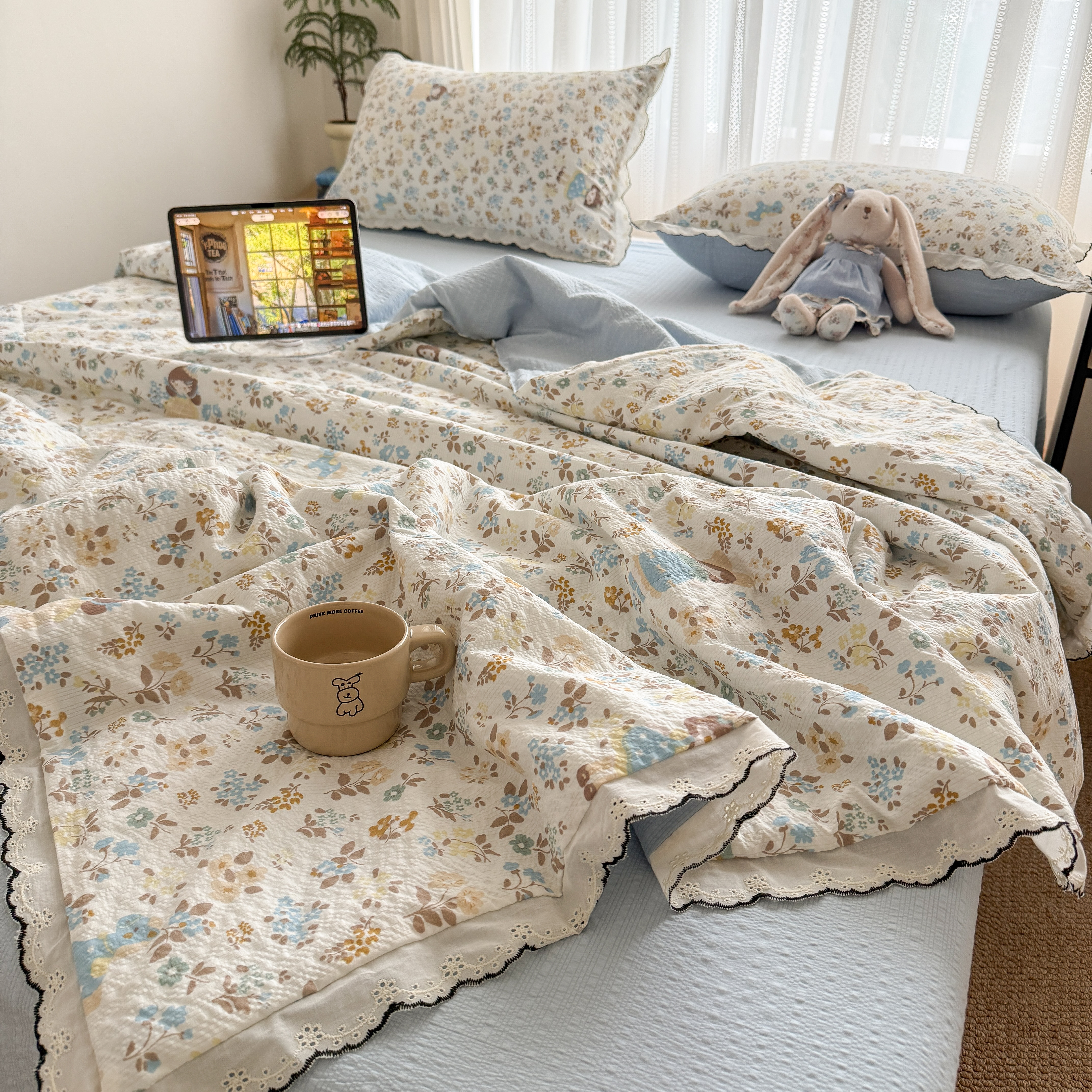 (总)欧尚 2026新款花边云感棉夏被床盖四件套,春辰绿,朵真,绯常,利莲,密朵,南朵,晴川木也