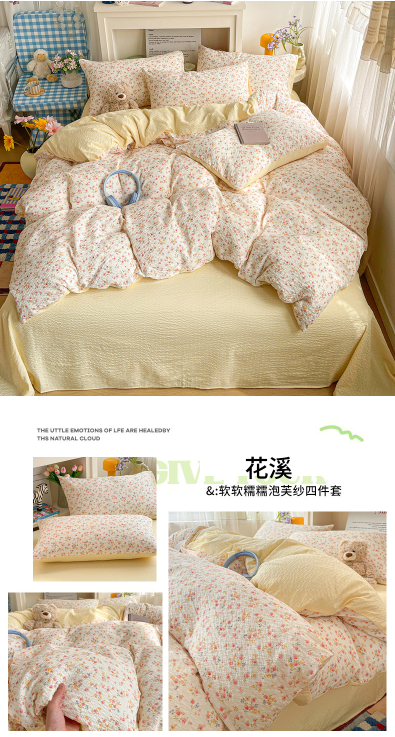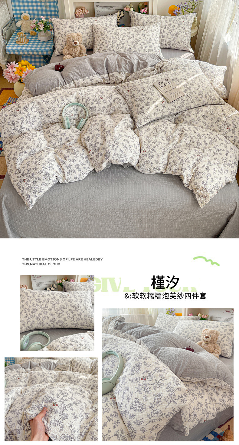 当前位置: 91家纺网 > 商品网购 > 床品套件 > 四件套 > 其它四件套 > N先生+V 13814689556 发大图/买家秀 2026新款A类软糯糯泡芙纱四件套 紫梦花语