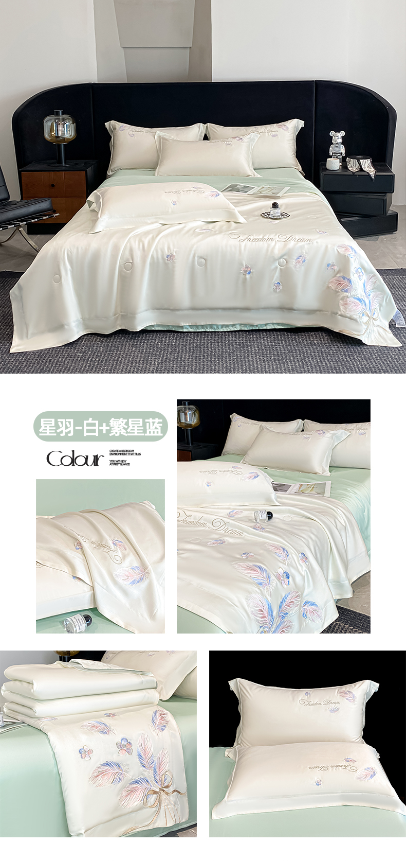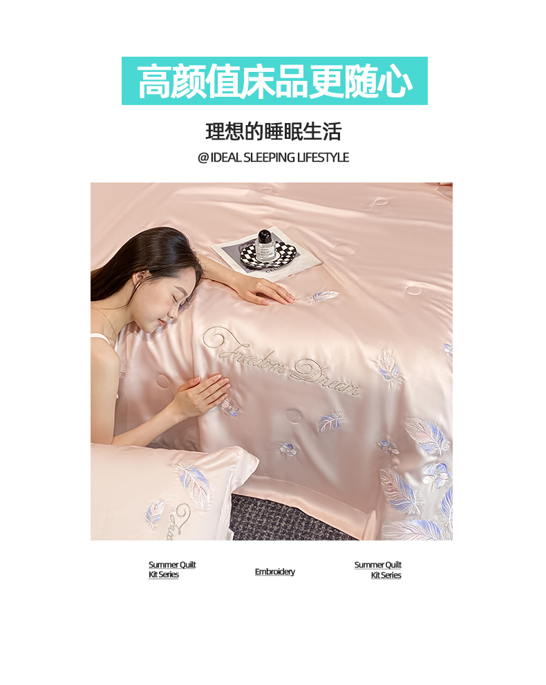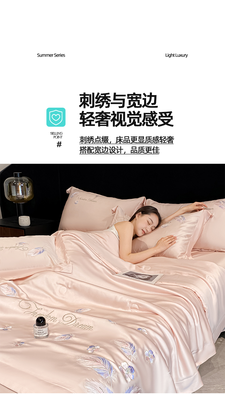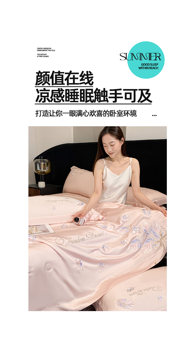 当前位置: 91家纺网 > 商品网购 > 床品套件 > 四件套 > 夏被四件套 > 置顶家纺 2026新款星羽-水洗天丝夏被刺绣樱桃夏凉被空调被刺绣四件套 星羽-粉色