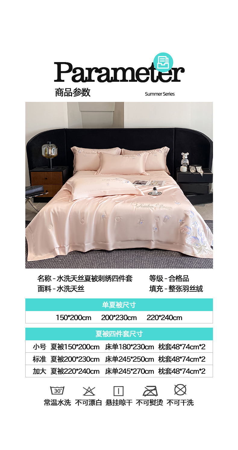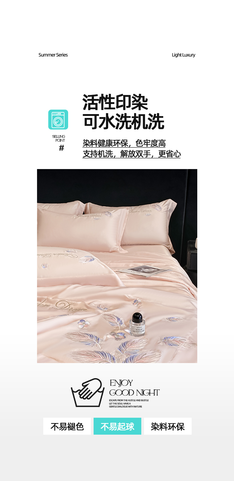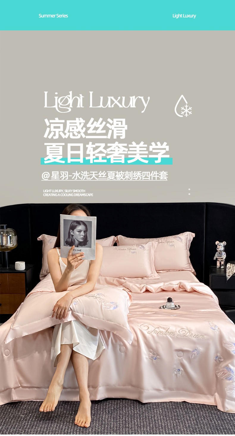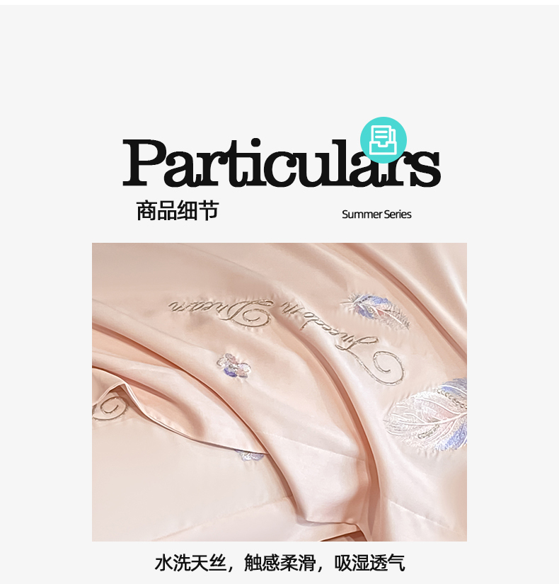 当前位置: 91家纺网 > 商品网购 > 床品套件 > 四件套 > 夏被四件套 > 置顶家纺 2026新款星羽-水洗天丝夏被刺绣樱桃夏凉被空调被刺绣四件套 星羽-粉色