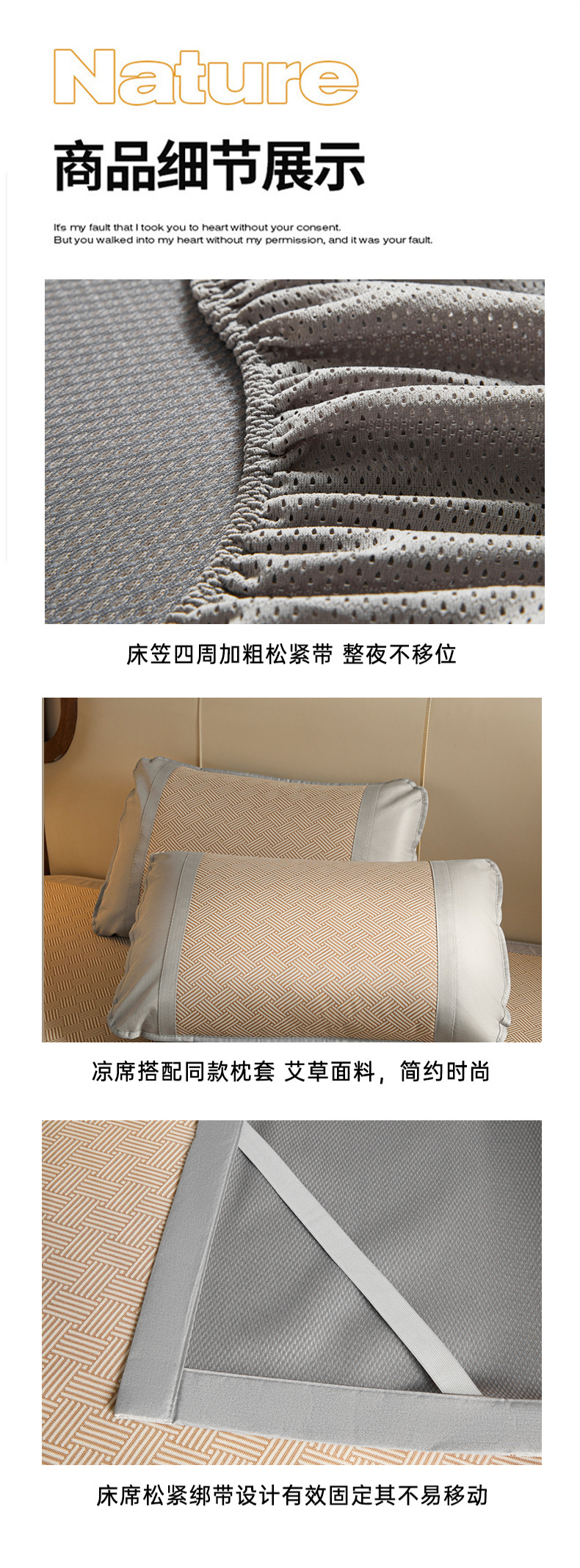• 91家纺网 家纺一手货源 找家纺 航途席业 2025新款凉席三明治刺绣可水洗碳光冰丝席宽包边艾香系列 艾香千鸟格床笠款咖色