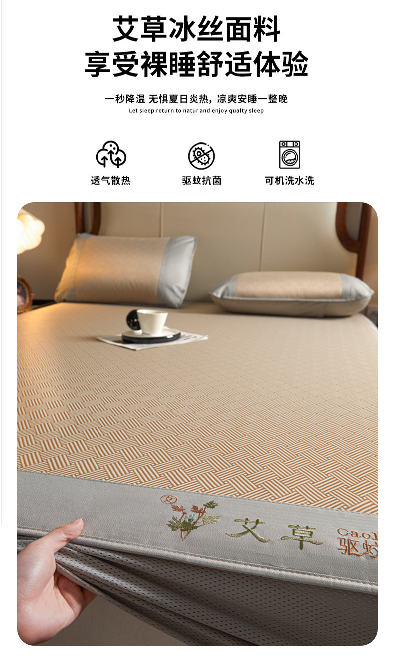 • 91家纺网 家纺一手货源 找家纺 航途席业 2025新款凉席三明治刺绣可水洗碳光冰丝席宽包边艾香系列 艾香冰丝席饼干-咖
