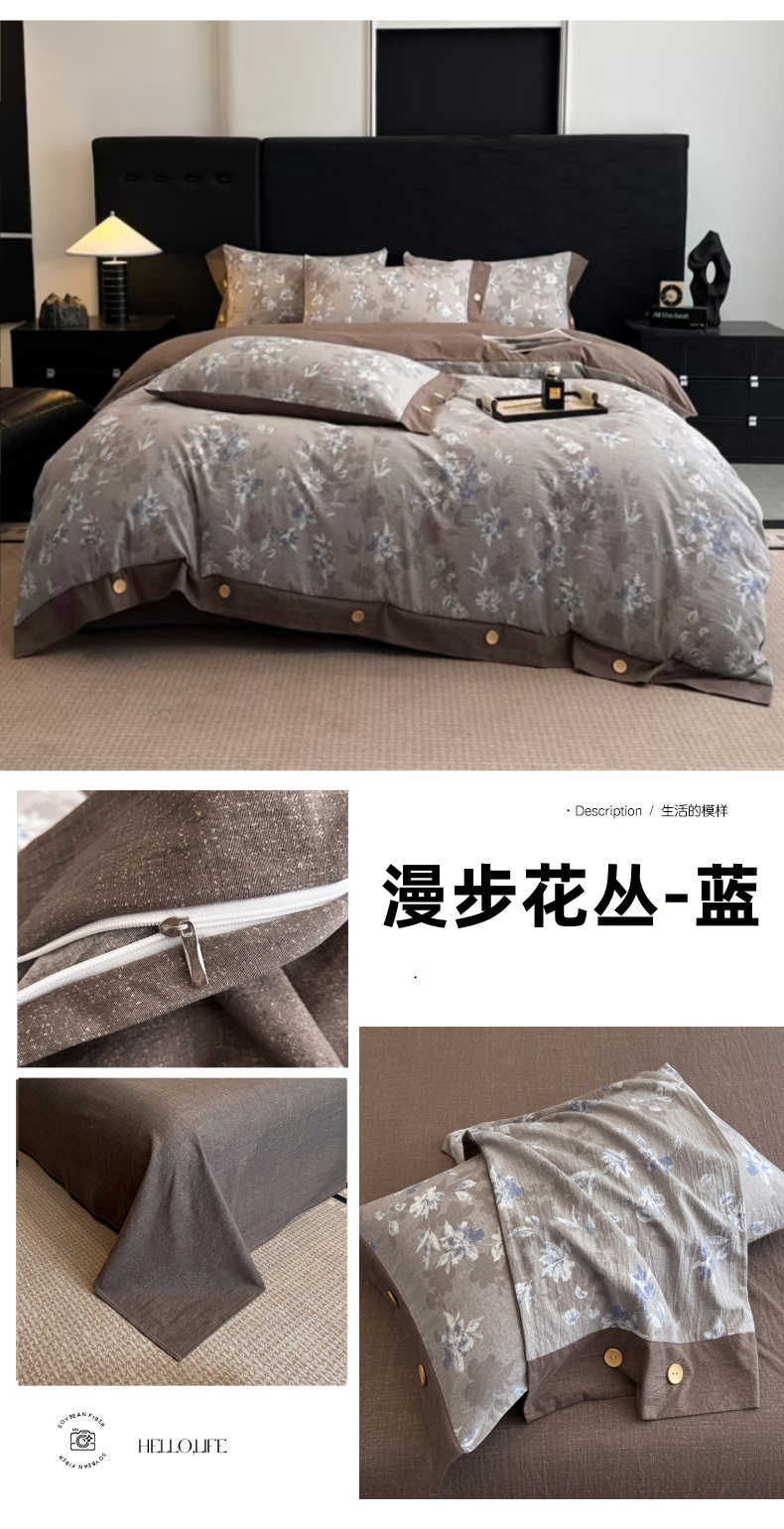 当前位置: 91家纺网 > 商品网购 > 床品套件 > 四件套 > 其它四件套 > 梦舒羽 2026春夏新款A类原麻纽扣四件套加厚被套床单宿舍双人床仿亚麻套件-最新款 漫步花丛-蓝