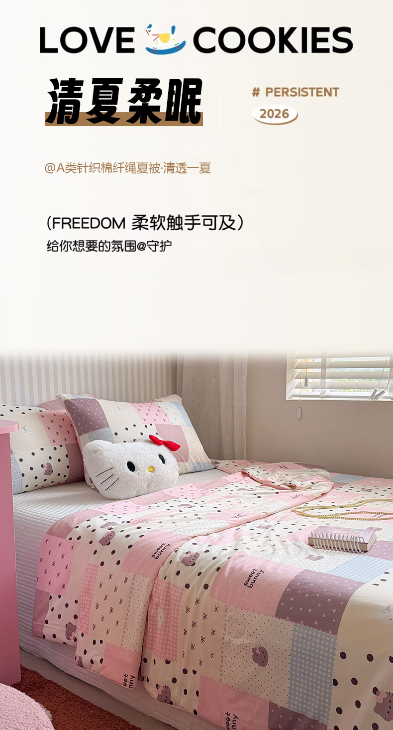 • 91家纺网 家纺一手货源 找家纺 (总)桃子家居 2026新款A类三丽鸥高品质可组合凉感丝乳胶席牛奶丝针织棉软糯夏被四件套,三丽鸥夏凉-爱心美少女KT,三丽鸥夏凉-粉粉美乐蒂,三丽鸥夏凉-粉粉甜筒KT,三丽鸥夏凉-粉格甜品KT,三丽鸥夏凉-蓝格甜品KT,三丽鸥夏凉-美美甜心,三丽鸥夏凉-奶油蓝点大耳狗,三丽鸥夏凉-气球美美KT,三丽鸥夏凉-甜甜KT,组合图
