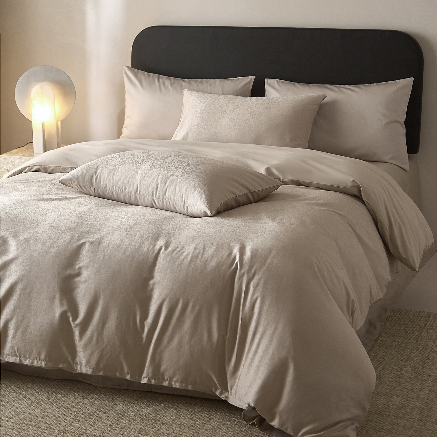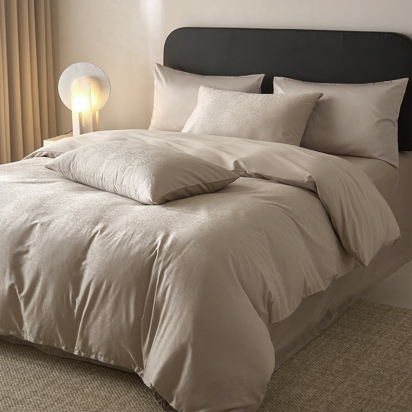 (总)ONE TWO ONE 121 2026新款50支长绒棉提花四件套系列-微风知韵-轻咖,微风知韵-轻咖