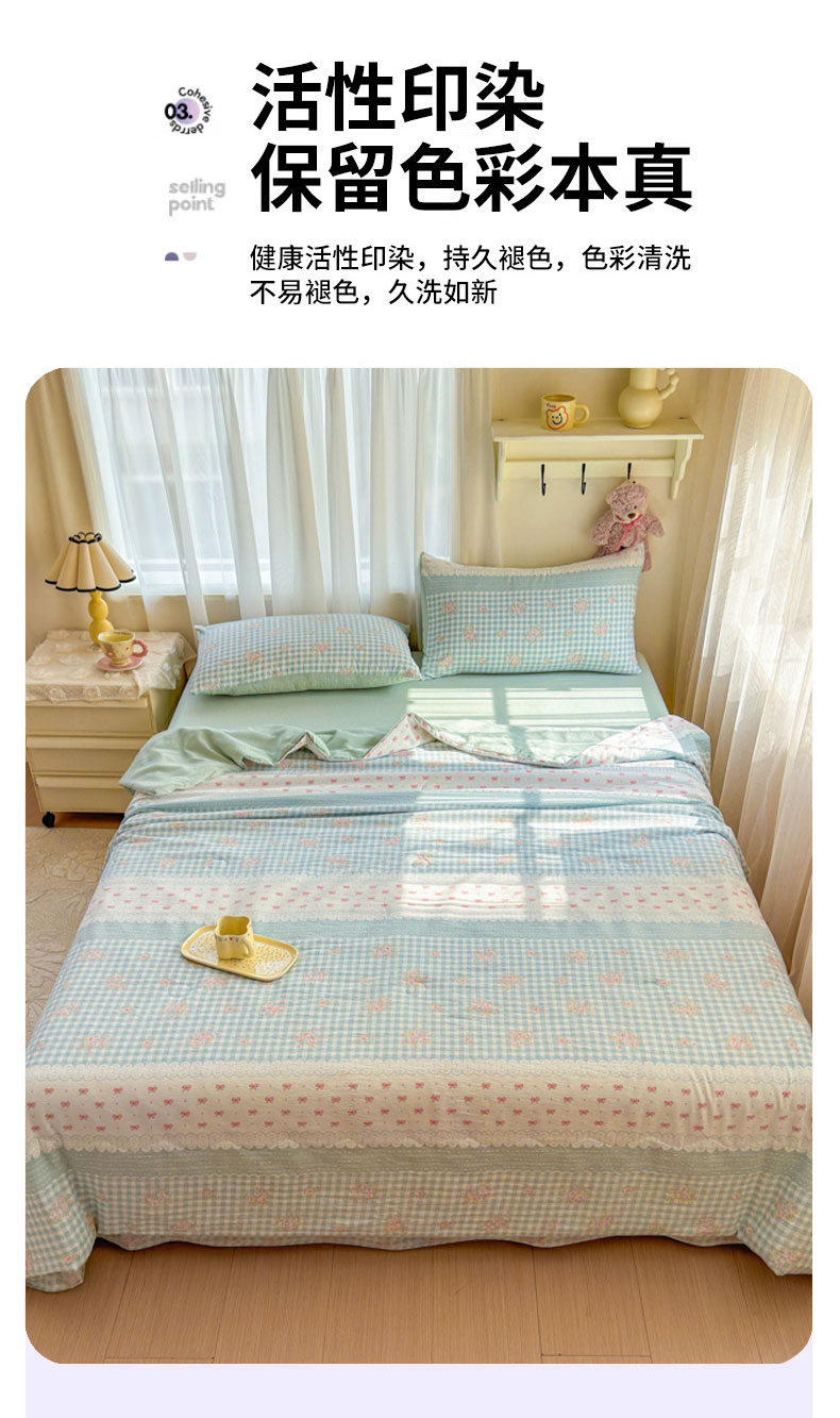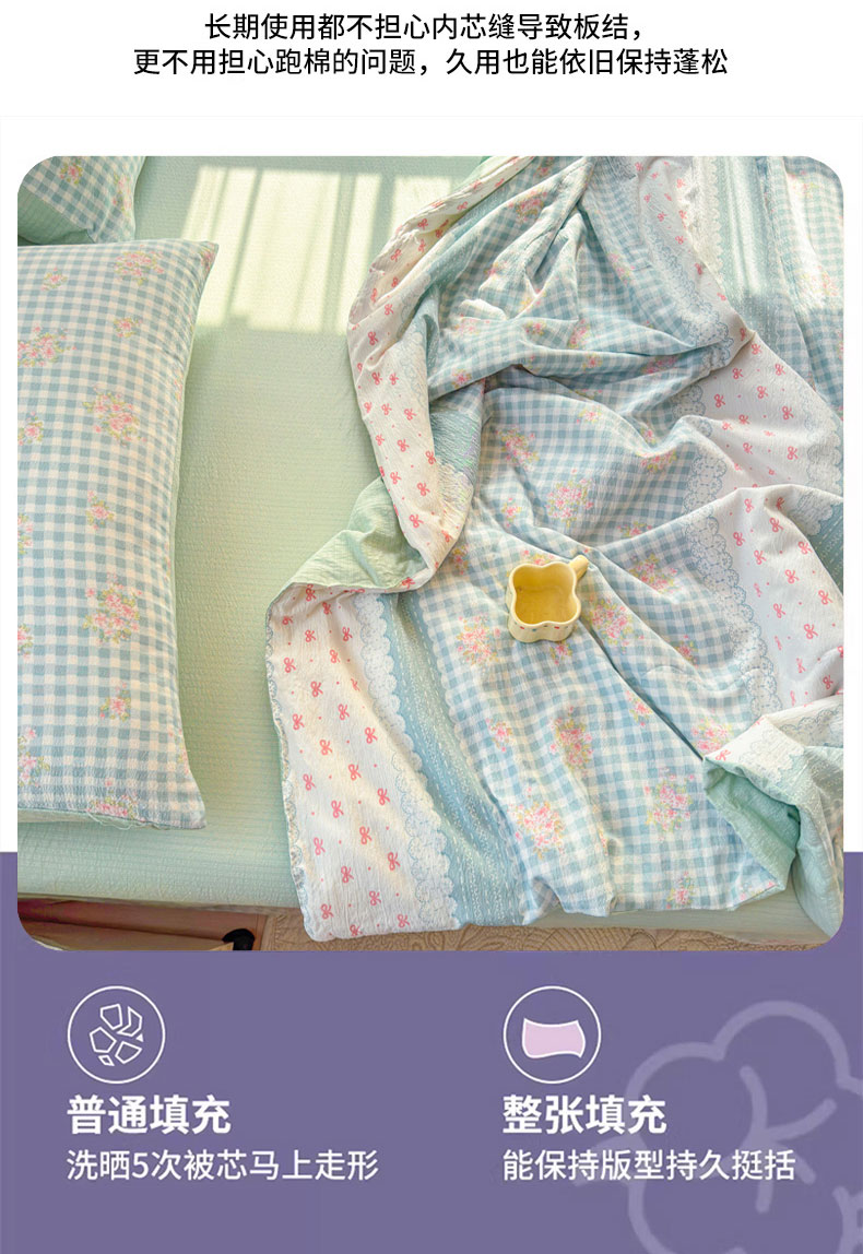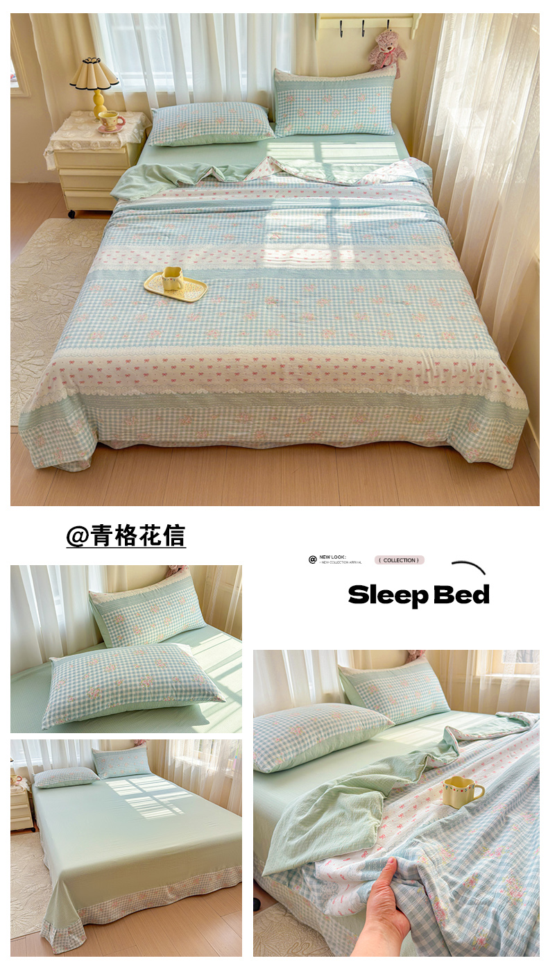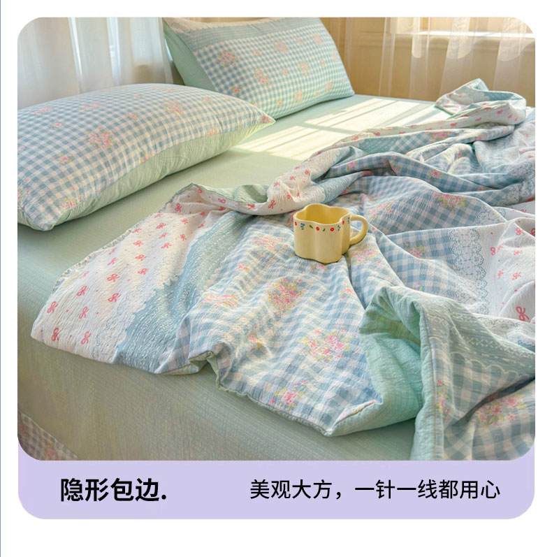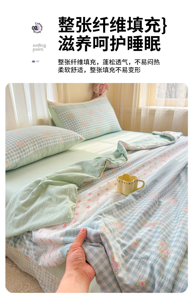 当前位置: 91家纺网 > 商品网购 > 床品套件 > 四件套 > 夏被四件套 > 梵希雅 2026新款A类木棉皱皱纱夏被 青格花信