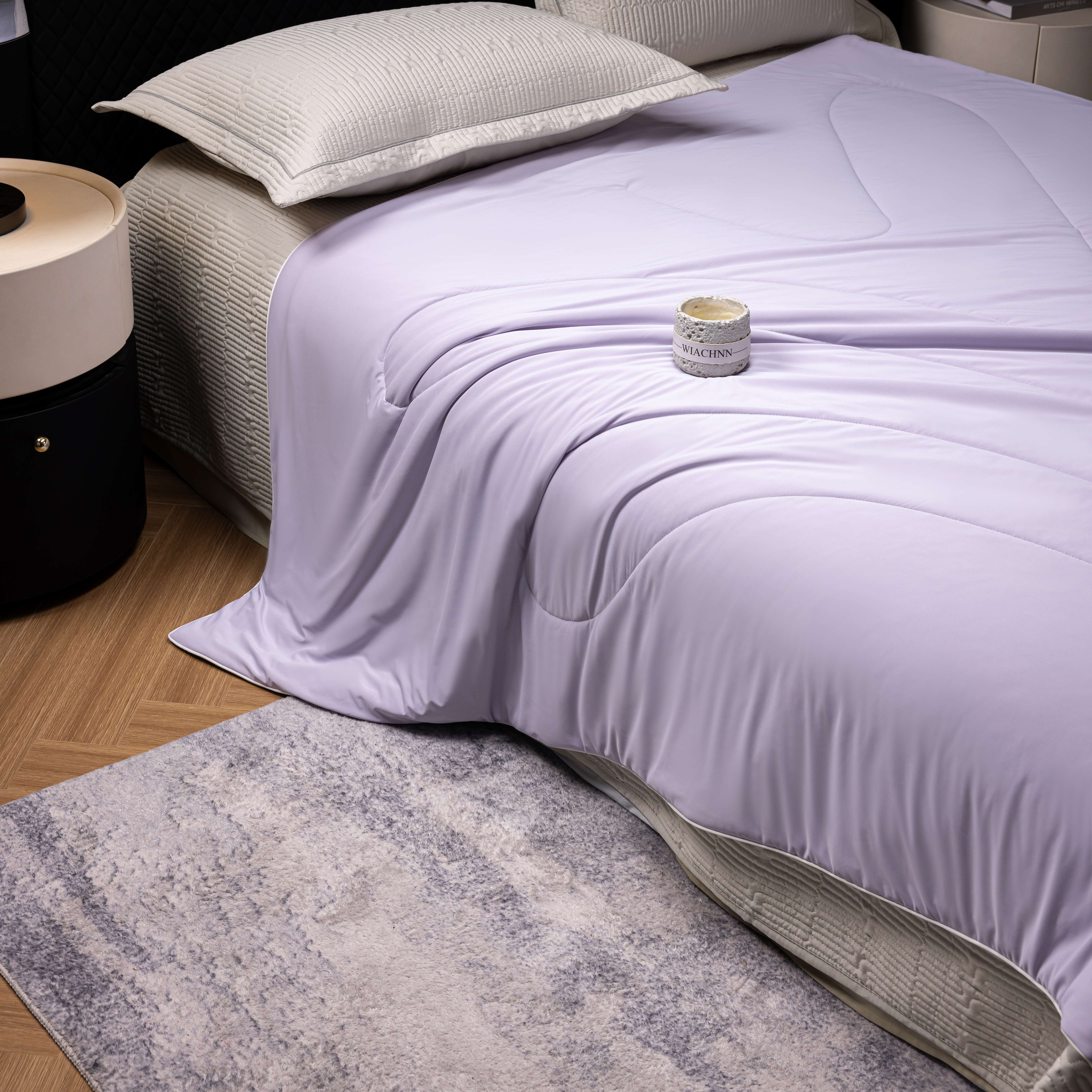 (总)丽卡家纺2026新款冰丽丝锦氨凉感夏被子被芯,淡雅紫+天空蓝,青草绿+浅银灰,珊瑚橘+浅银灰