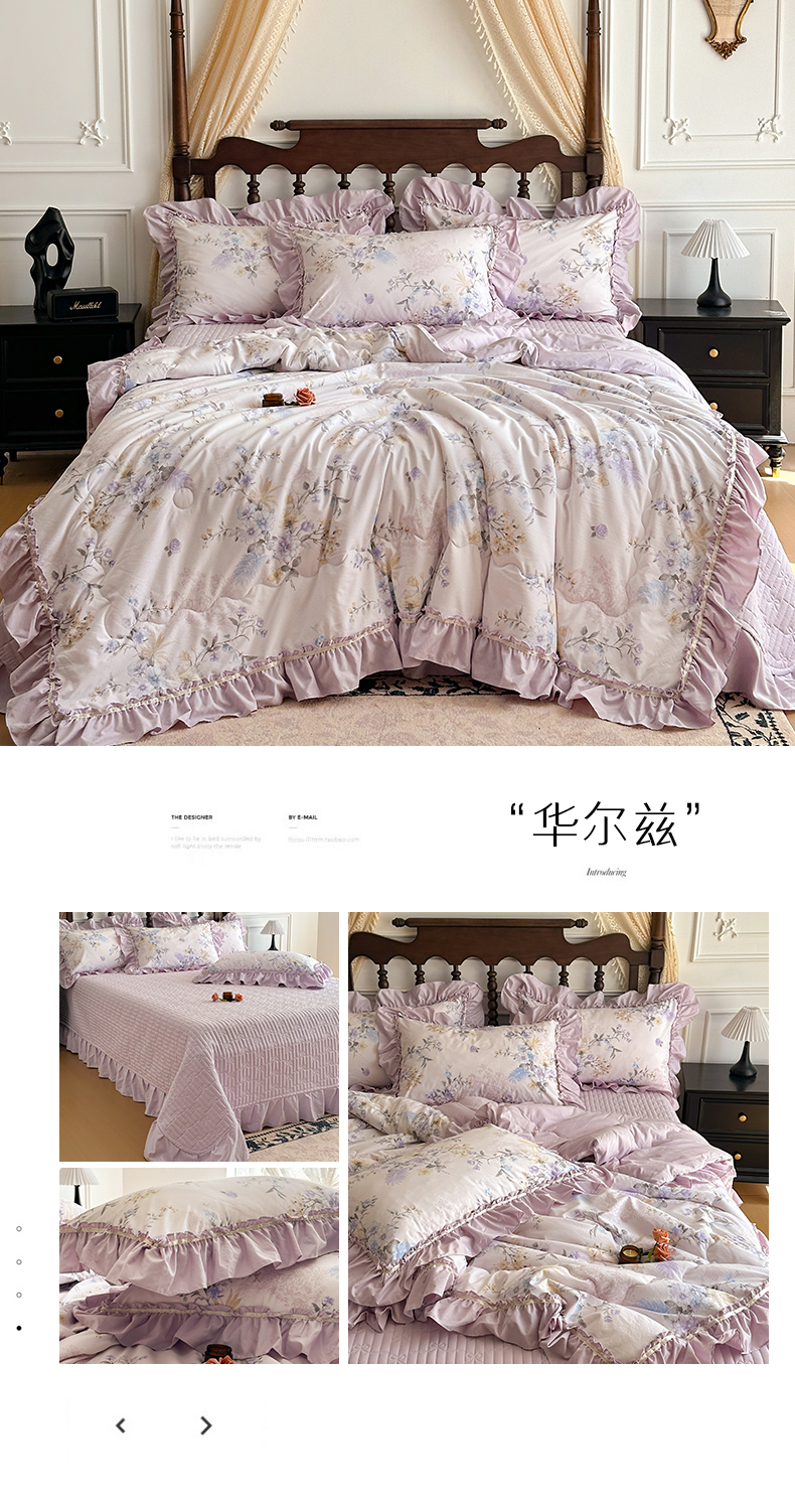 (总)星光耀 2026新款A类高克重斜纹云柔棉床盖四件套,茶礼·远山紫,茶礼·梅子红,边庭,禅弥,花棠,岚语